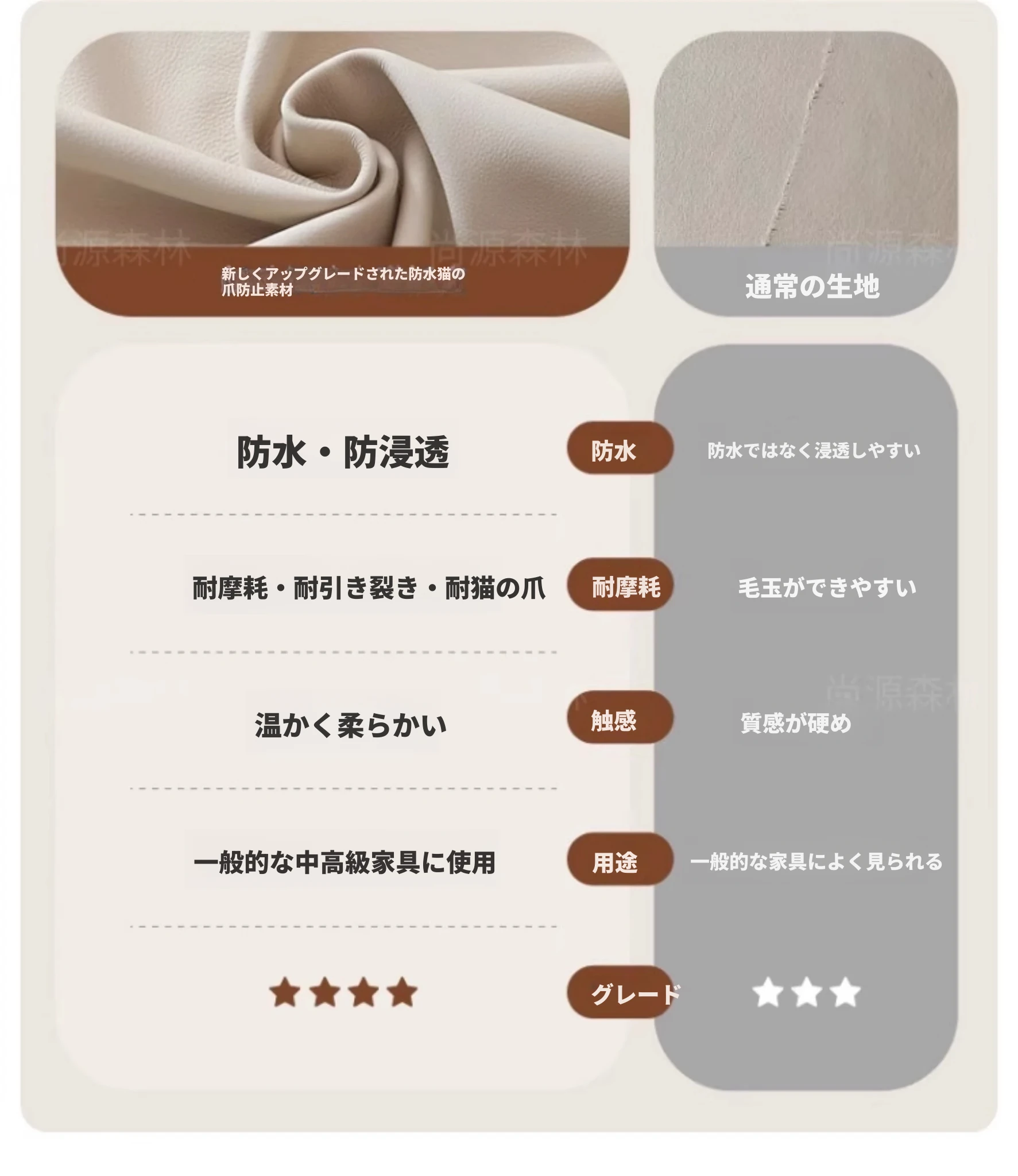 4人用ソファ(猫の爪が引っかからない皮・夕暮れオレンジ)+アームレストクッション*2