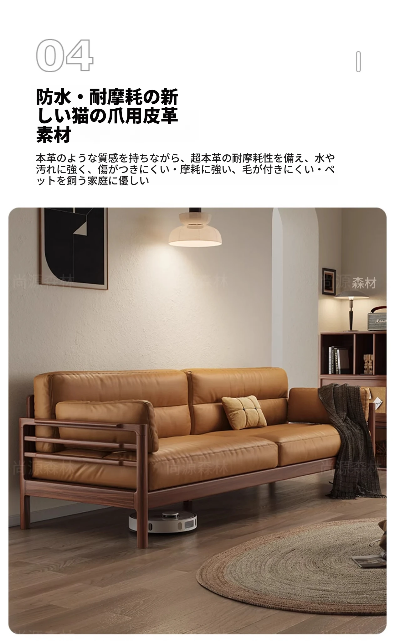 【ブラックウォールナット】1人用ソファ(猫の爪が引っかからない皮・夕暮れオレンジ)
