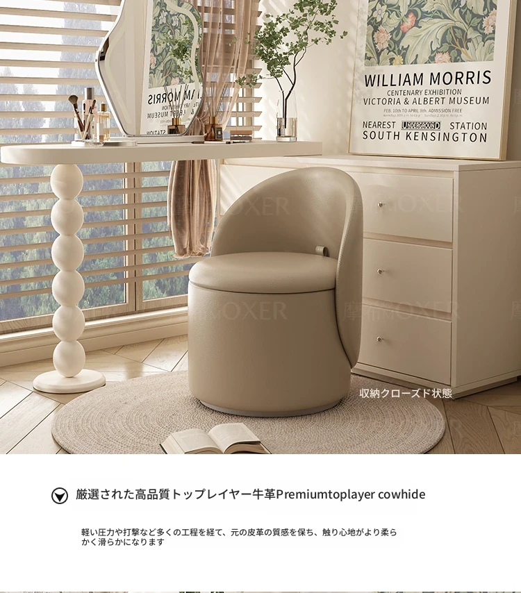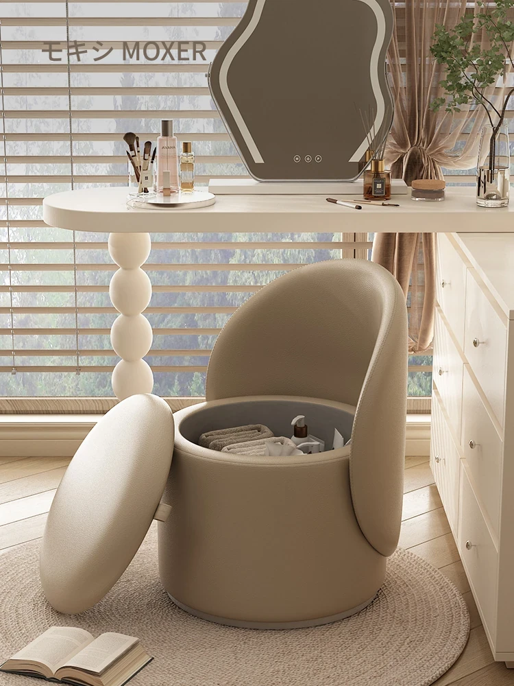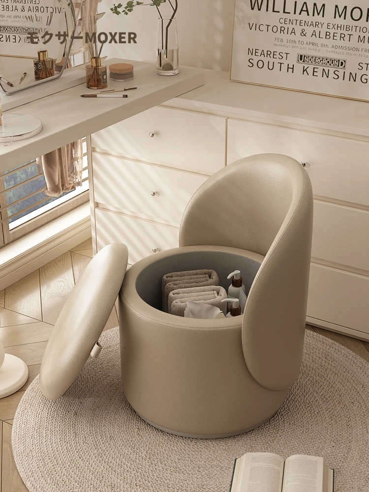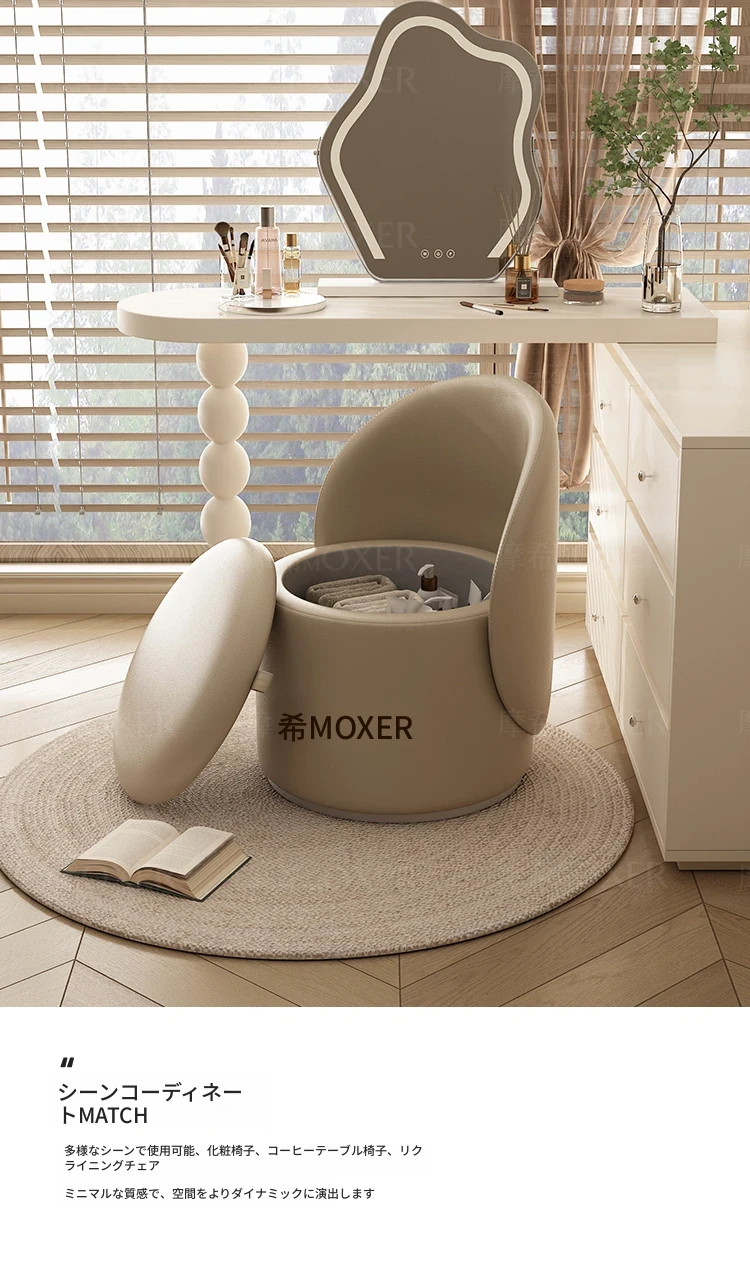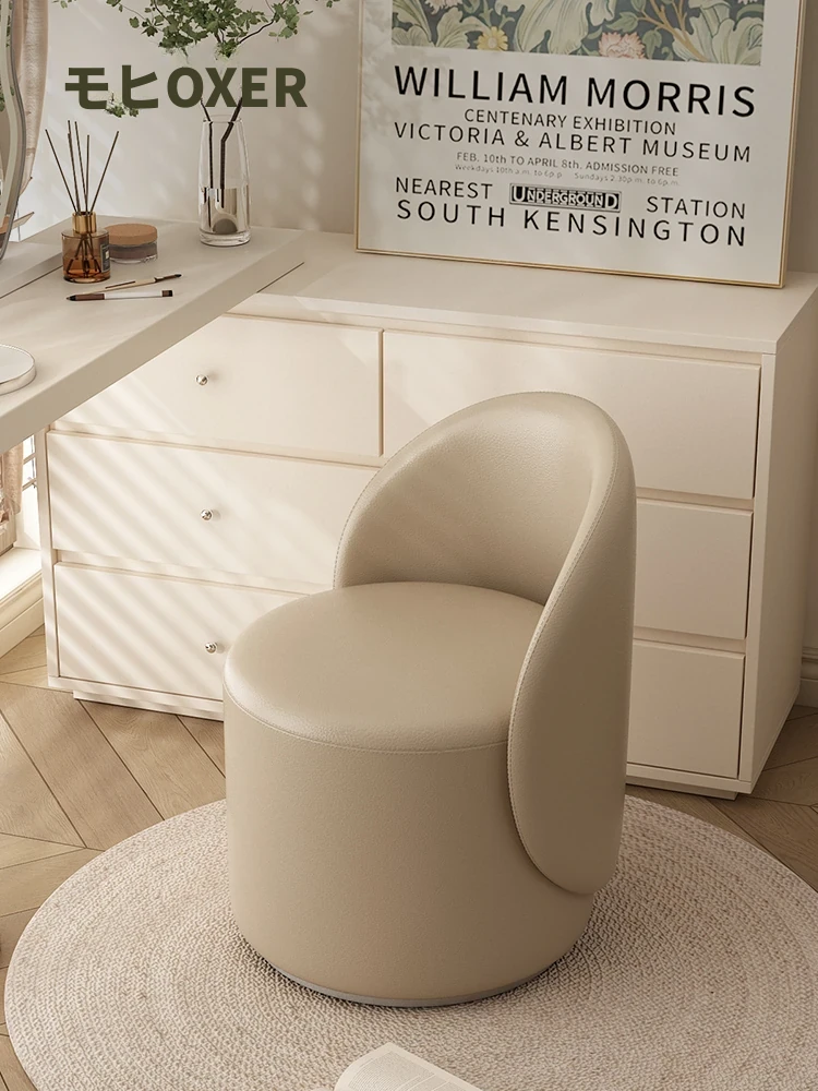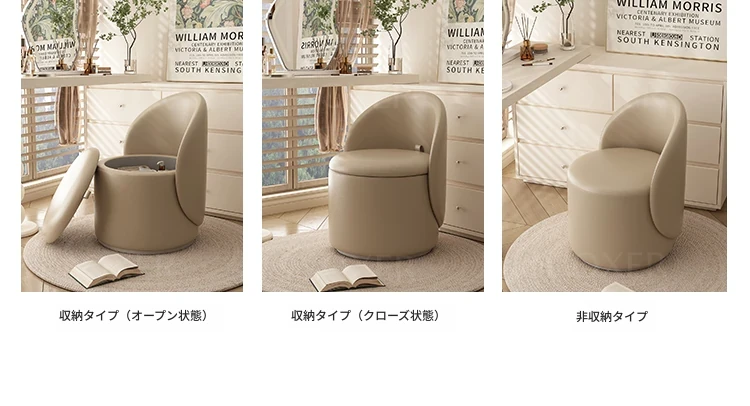モヒ真皮化粧スツール - 回転式収納付き、背もたれ付きメイク椅子!デザイナーズ寝室にぴったりのティーテーブルスツール・ローソファ。快適さとスタイルを兼ね備えた理想のアイテムです!