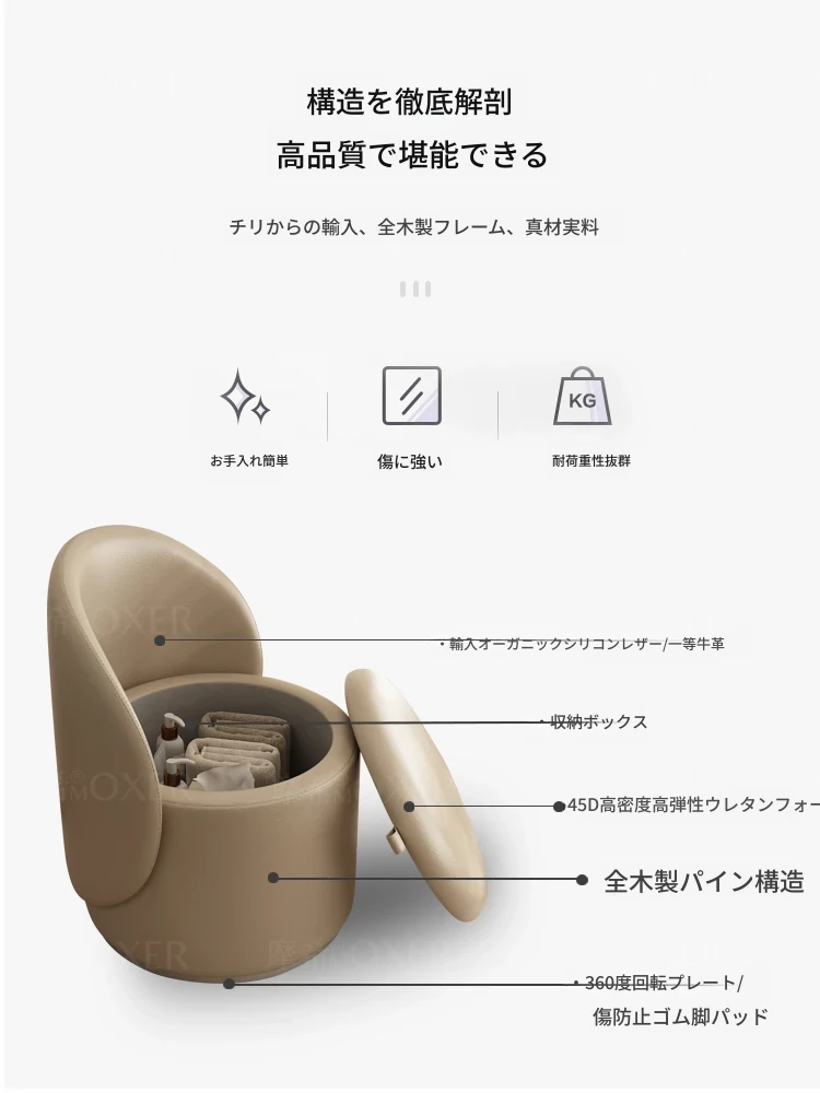 ミルクコーヒーカラー(輸入本革シート+収納+360°回転)