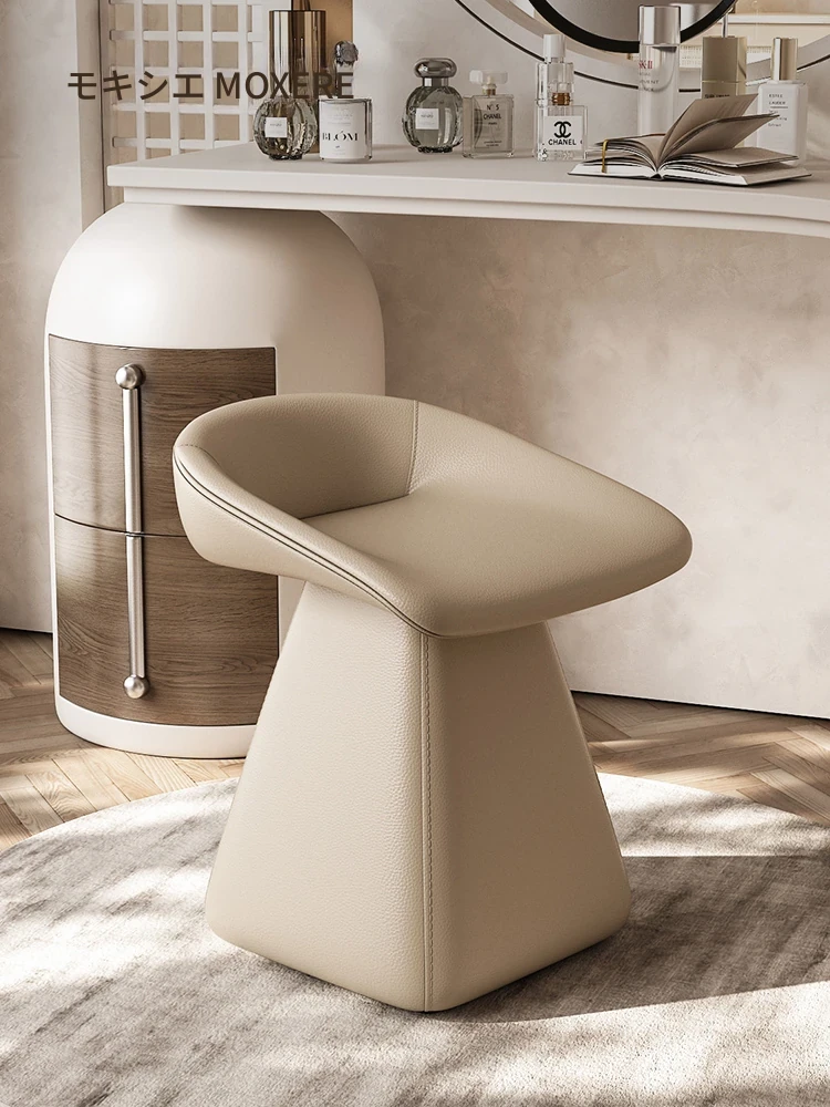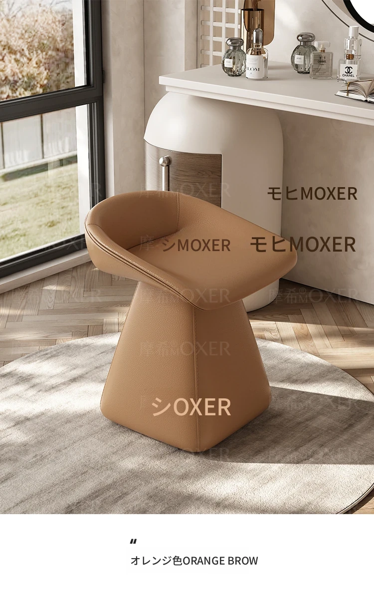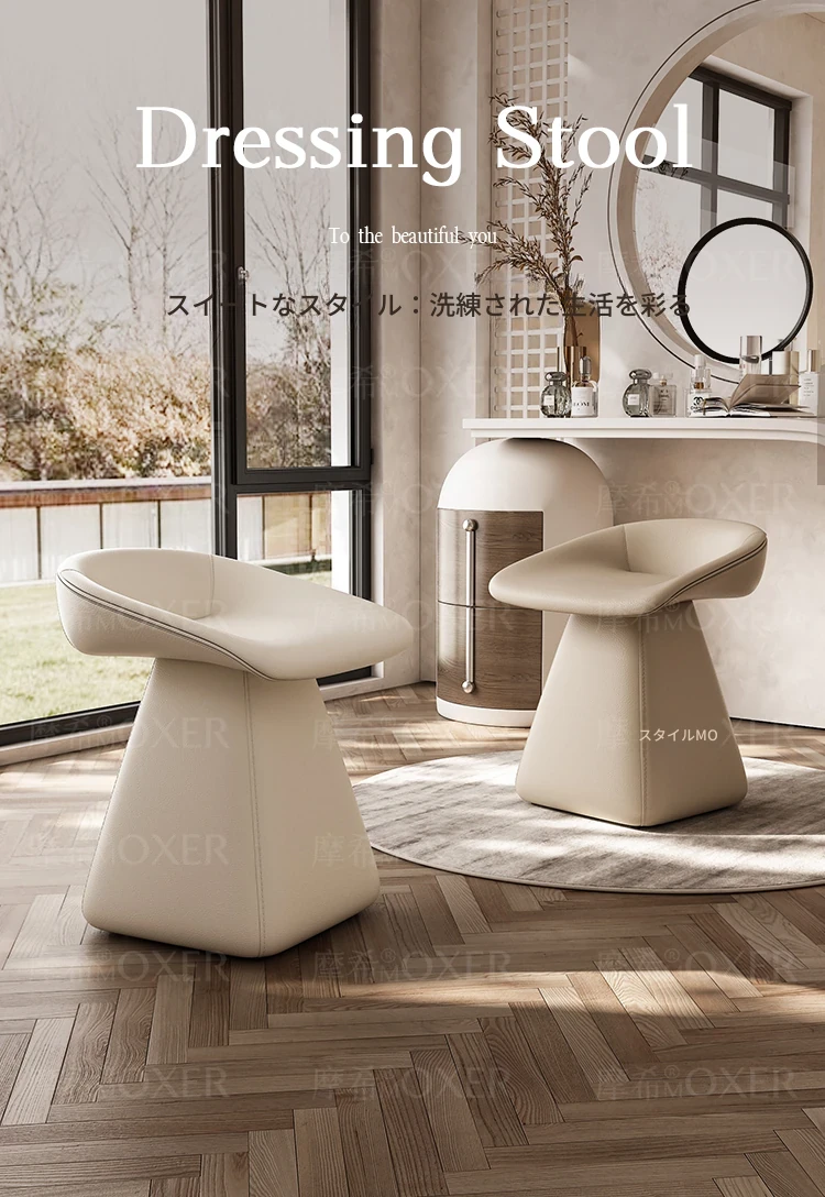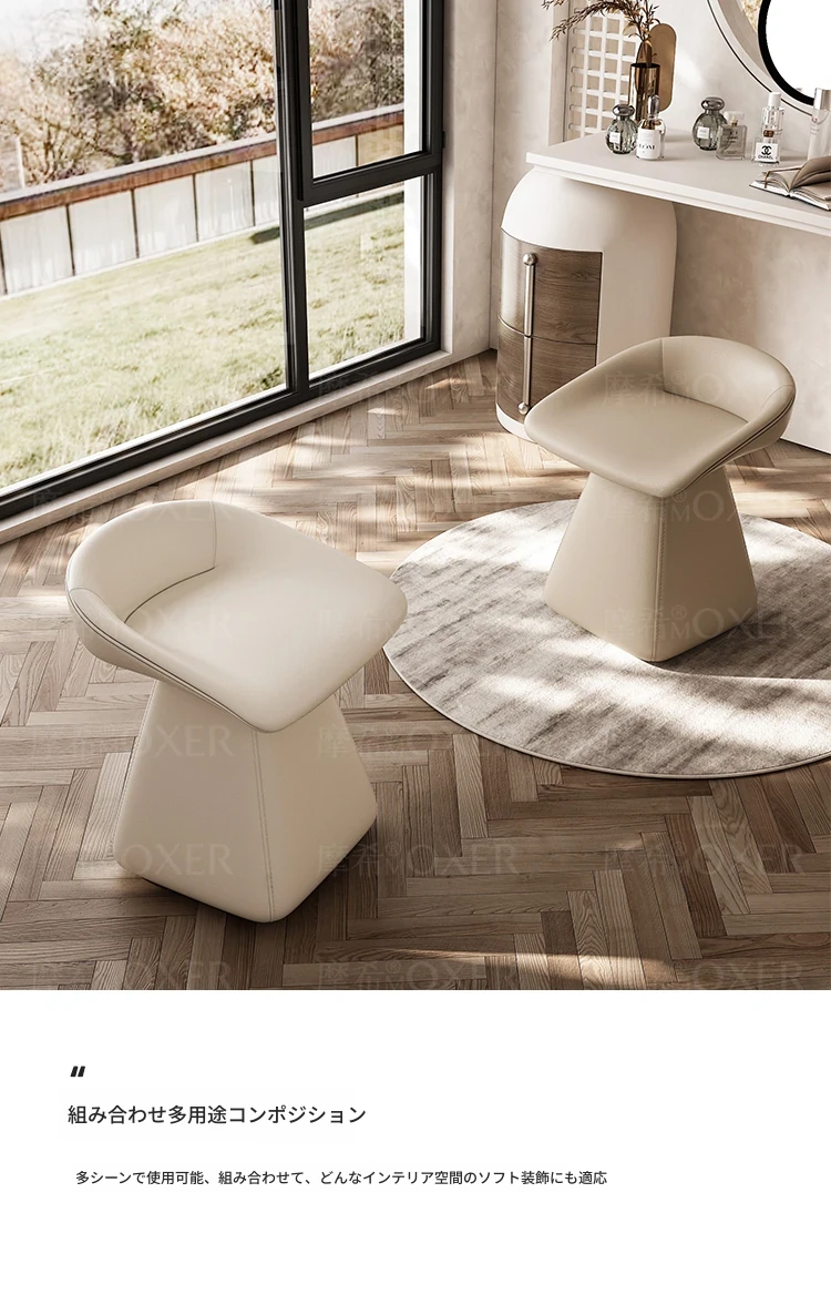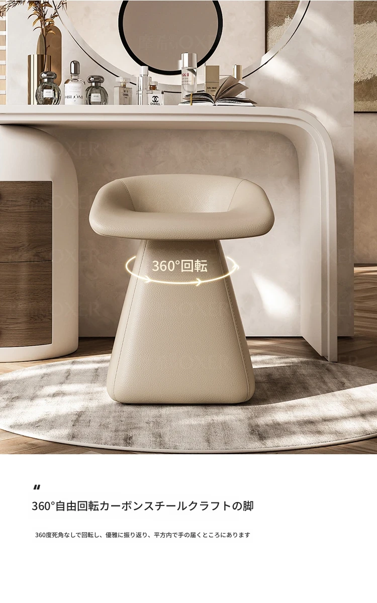 モヒ・インフルエンサー風メイクアップスツール|回転式天然木製ドレッサーチェア|リビングにもぴったりなスタイリッシュな低めのスツール|高級感あふれる家庭用ネイルチェア