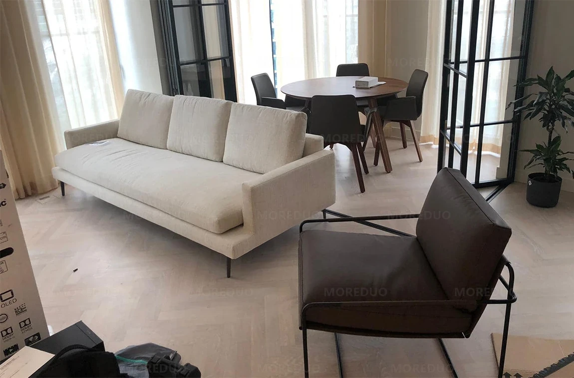 MOREDUO イタリアンモダンリビングルームソファチェア 布製リラックスチェア リビエラアームチェア 寝室用シングルチェアで、スタイリッシュな空間を演出!快適さとデザイン性を兼ね備えた一品。