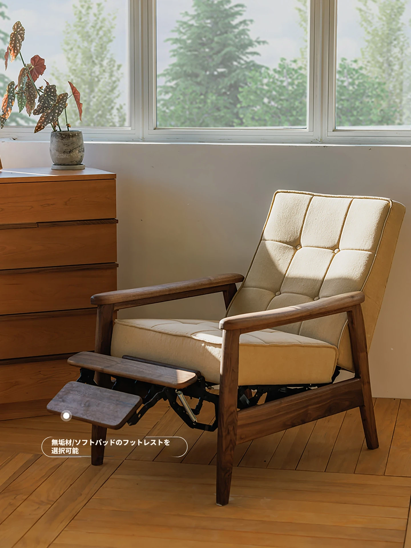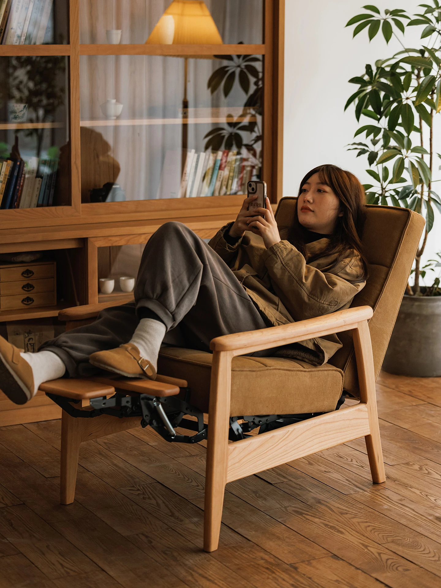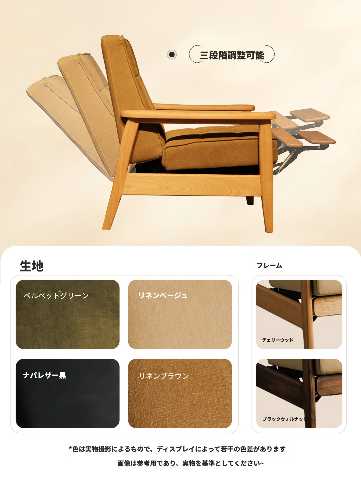 山の自由機能性シングルチェア - 日本風さくらんぼ材のリラックスチェア!アームレスト付きで、快適な背もたれがあなたのくつろぎの時間をサポートします。おしゃれなデザインで、どんなインテリアにもぴったり!