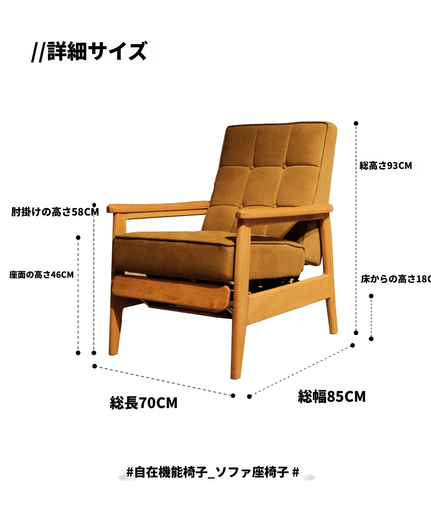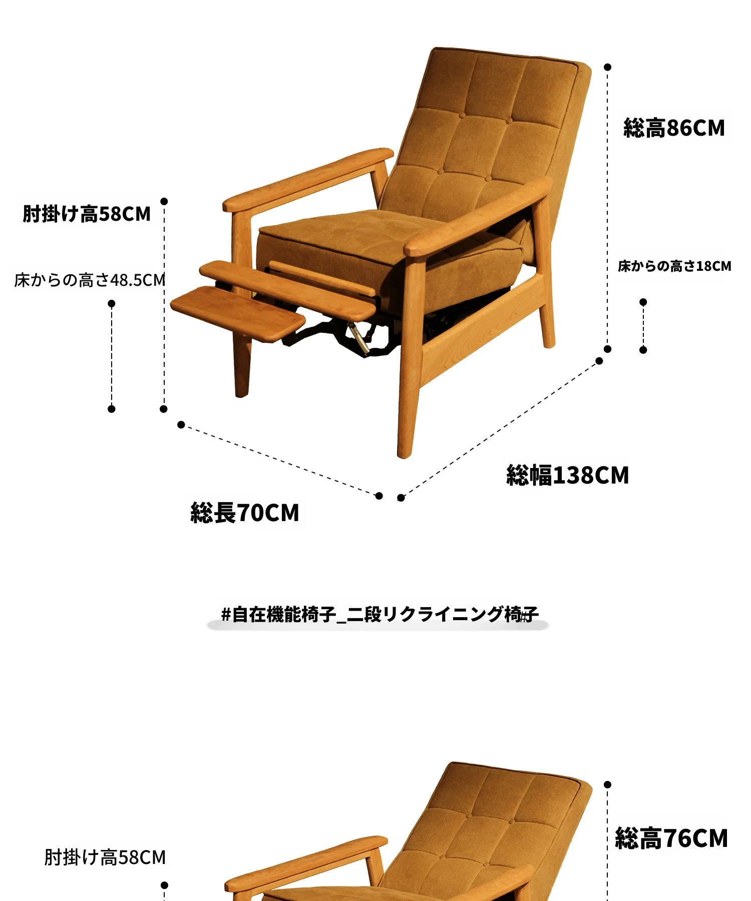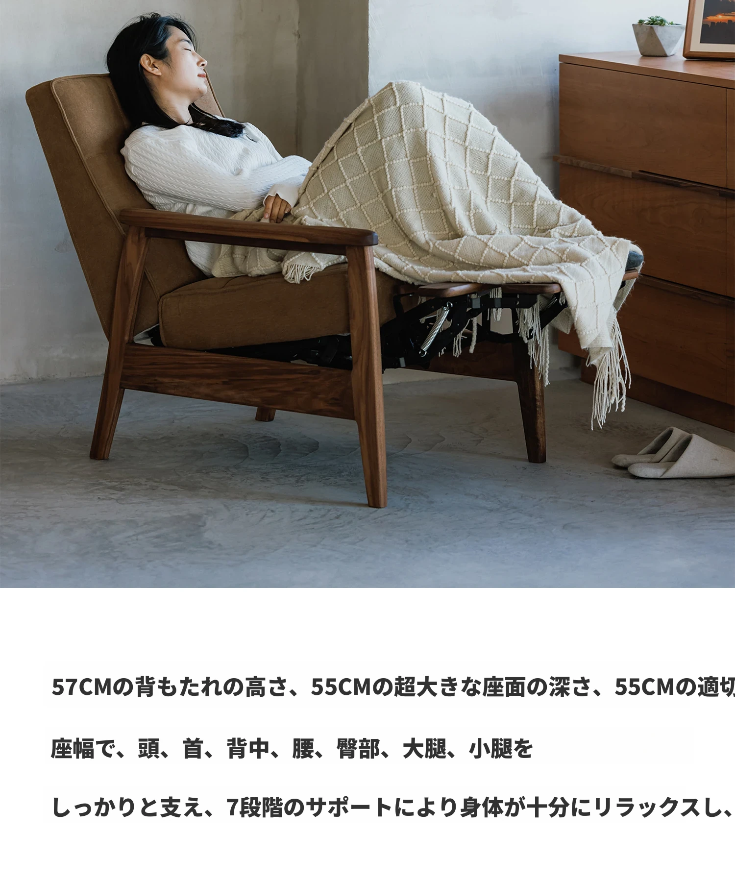 山の自由機能性シングルチェア - 日本風さくらんぼ材のリラックスチェア!アームレスト付きで、快適な背もたれがあなたのくつろぎの時間をサポートします。おしゃれなデザインで、どんなインテリアにもぴったり!