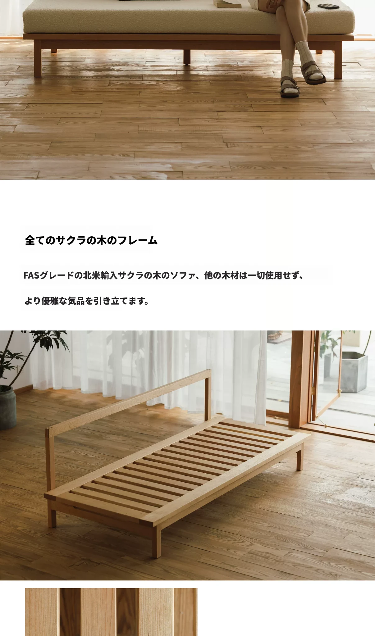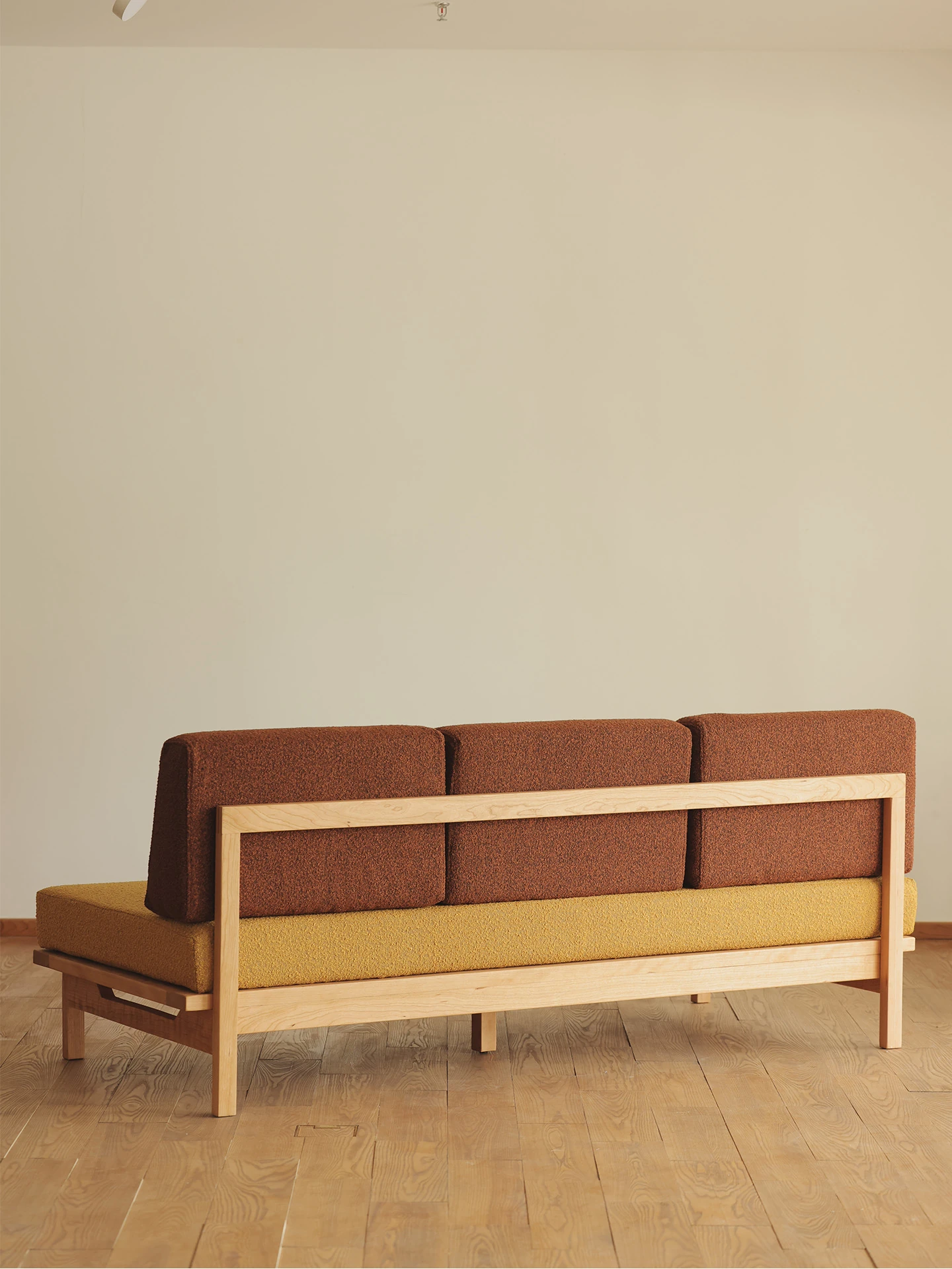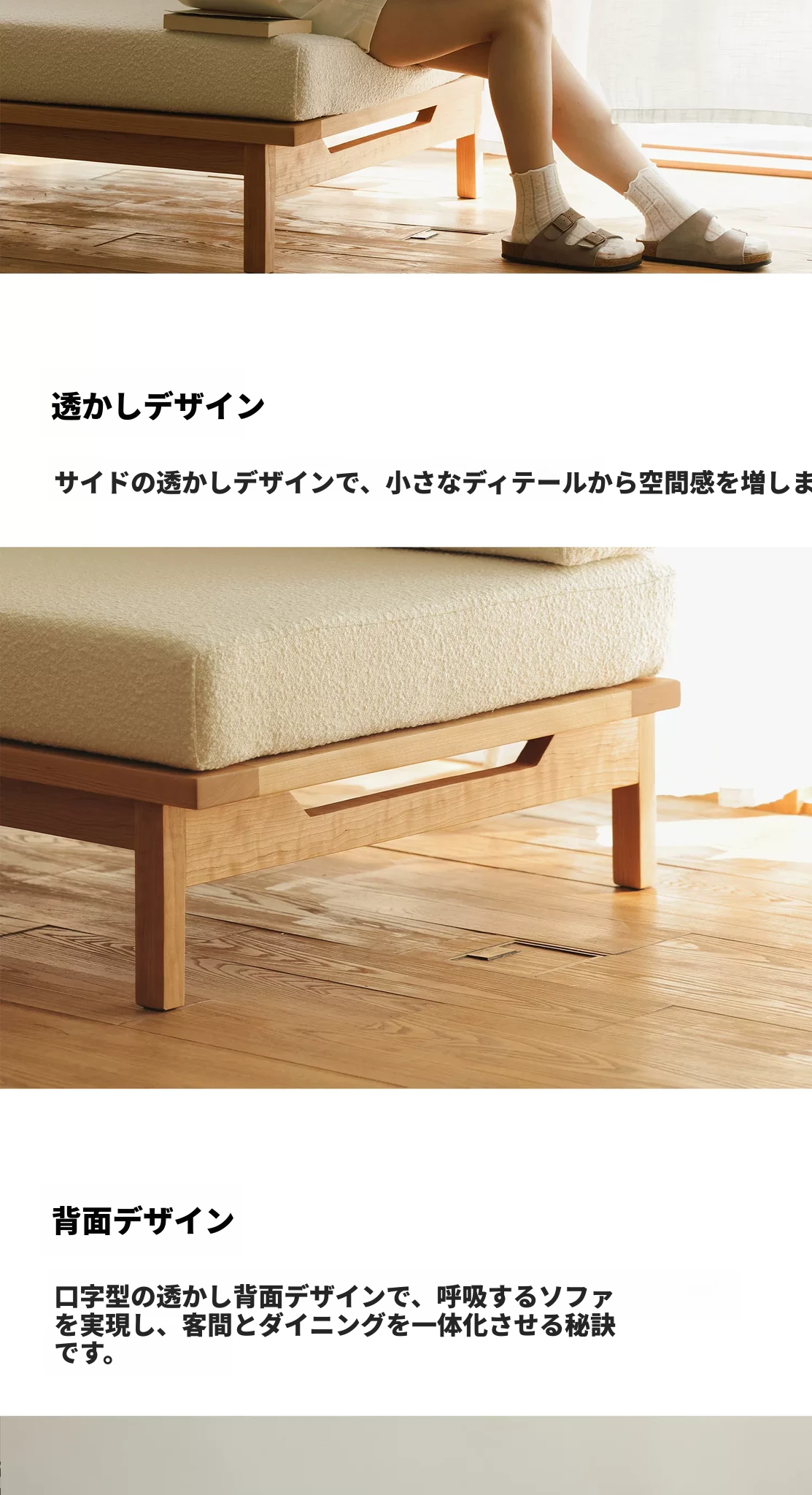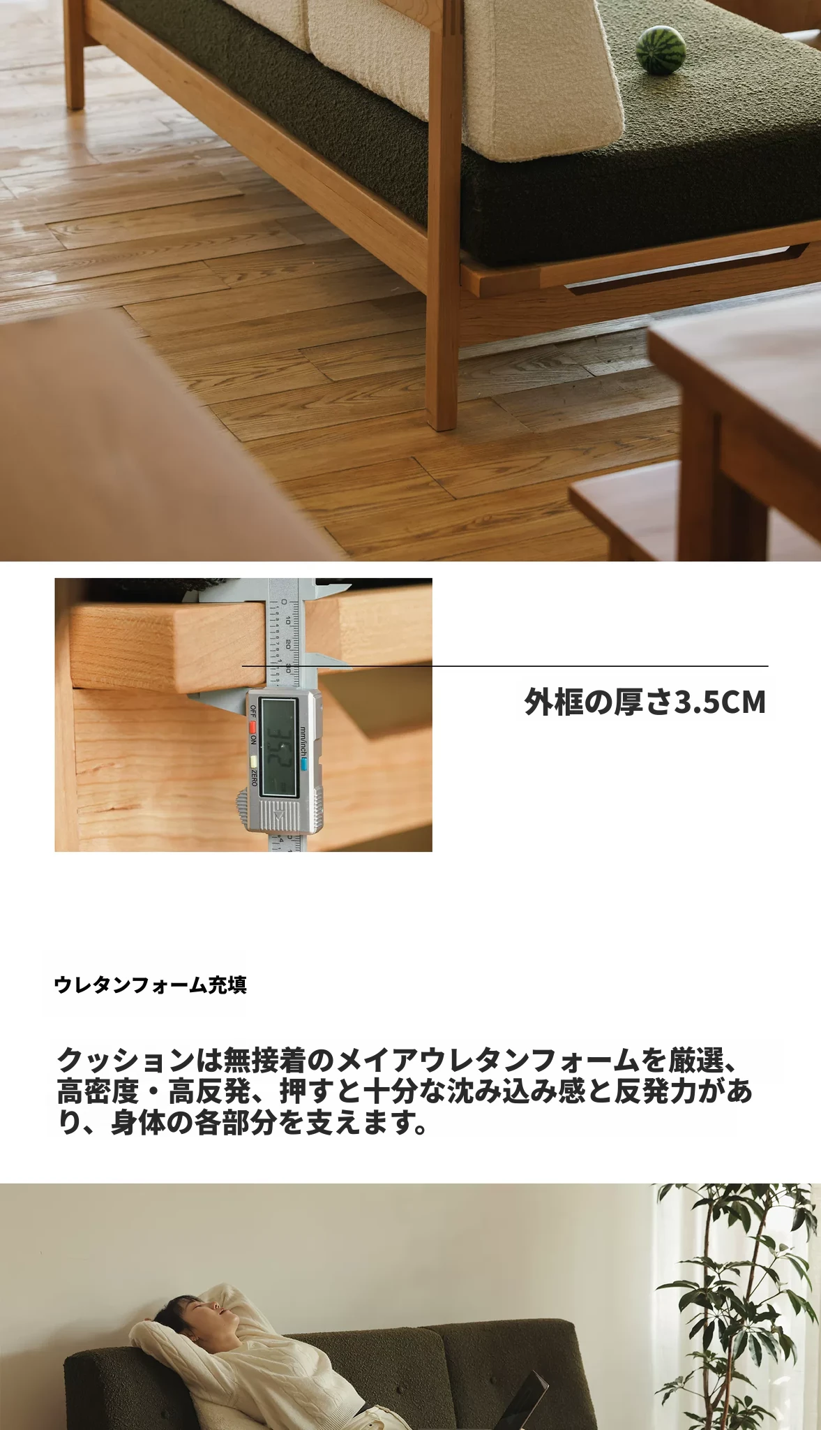 山の平原ソファー - 和風チェリーウッド無肘の天然木製ソファ、レトロスタイルのリビングルームにぴったりなファブリックコットンリネン素材。心地よいくつろぎを演出します!