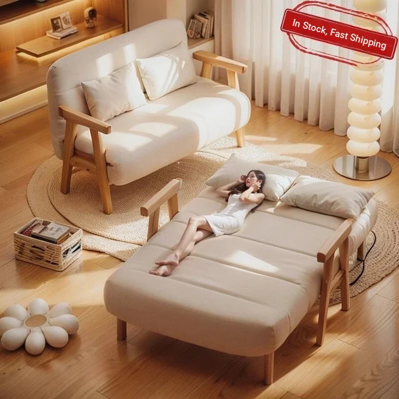 Multifunctional Folding Sofa Bed 205 - New Design Solid Wood Red for Small Spaces, Perfect for Single Rooms (Model SFC0022)