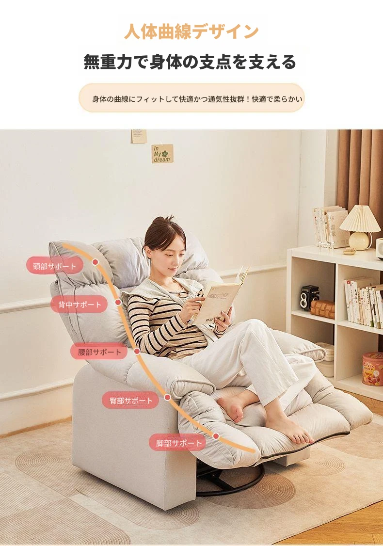 リラックスソファ 多機能 家庭用 寝転び可能なベッド兼用 おしゃれなデザインの回転椅子 宇宙のような快適さを実現したシングルソファ 様々なシーンにぴったり!