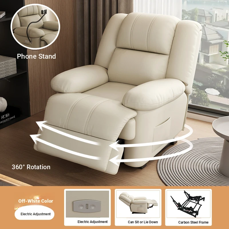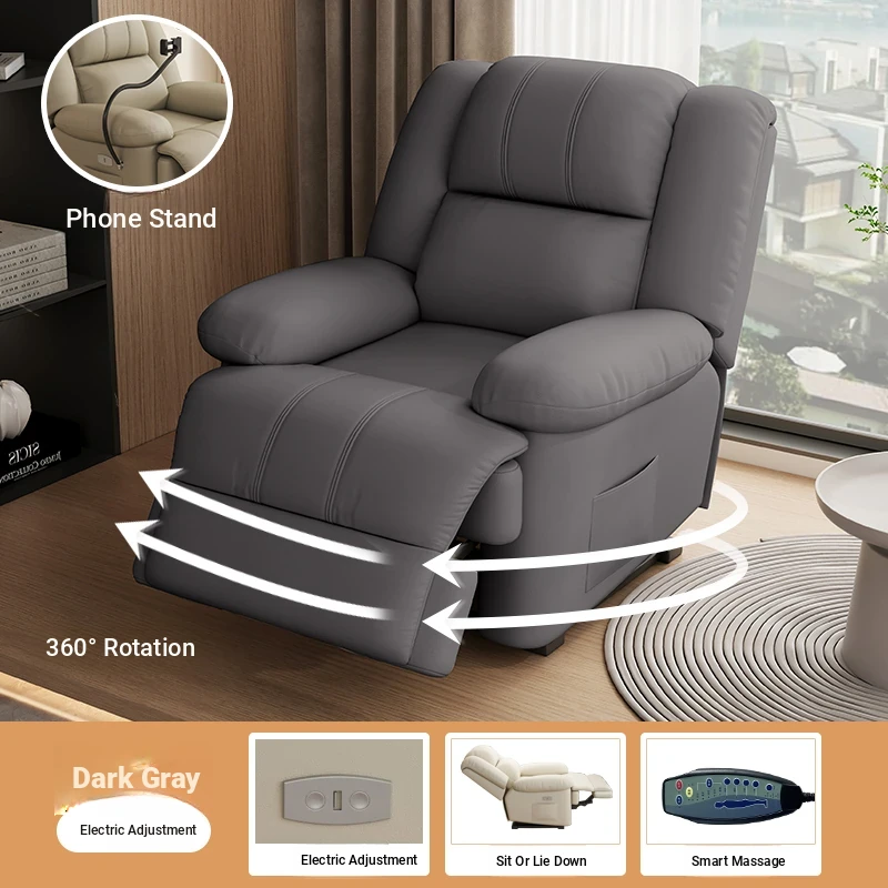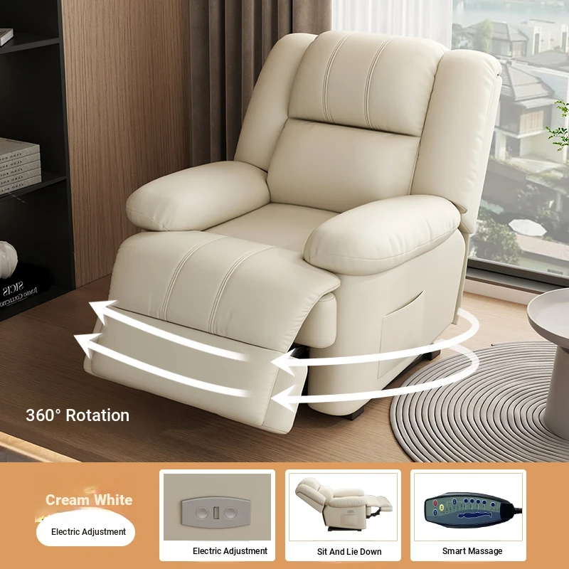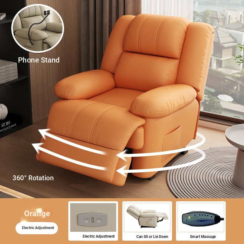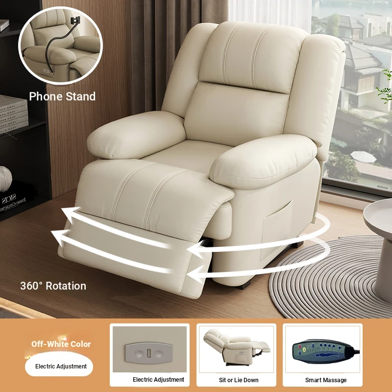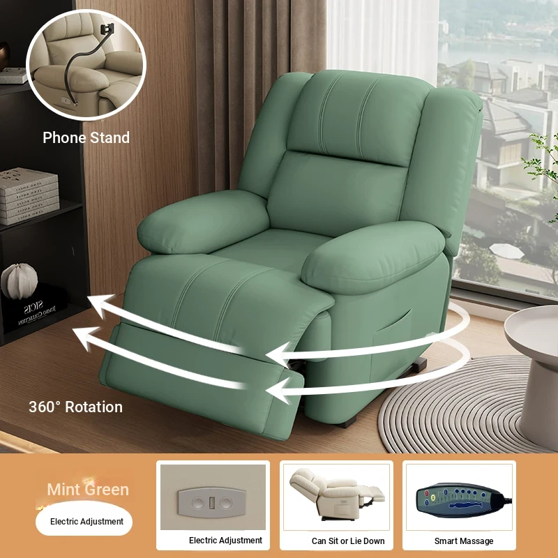 Multi-Functional Luxury Space Capsule Sofa - Electric Massage Rotating Single Recliner with Cat Scratch Resistant Leather for Living Room & Beauty Salons