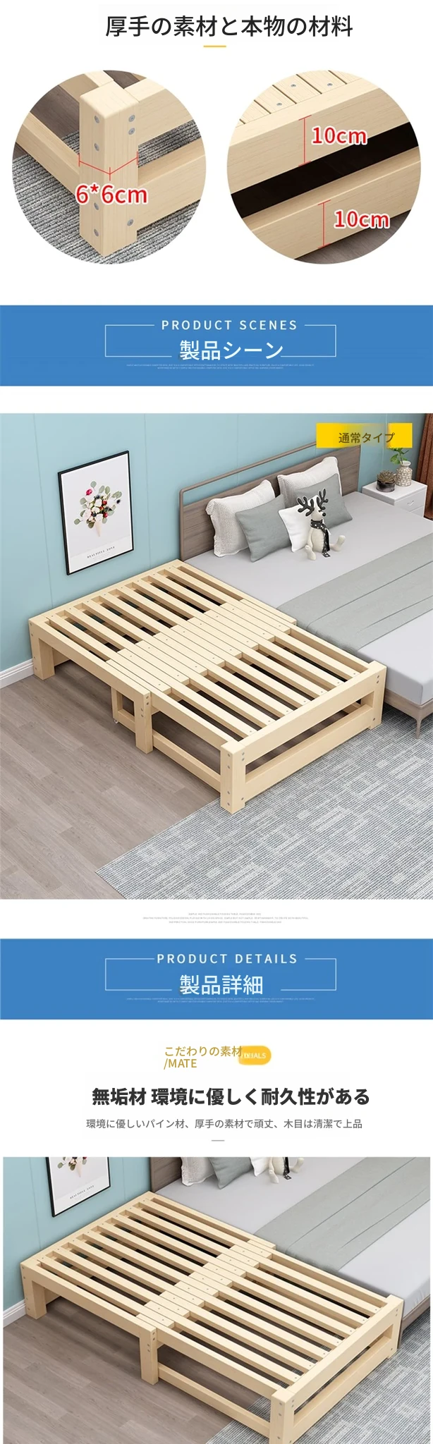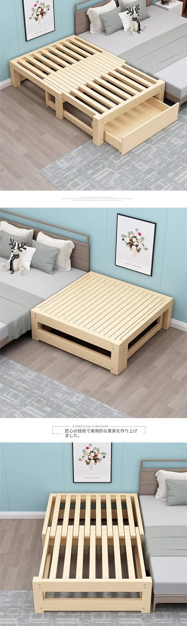 折りたたみ式の実木ソファベッド - 多機能タタミ伸縮ベッド!バルコニーや寝室にぴったりのコンパクトデザイン。スライド式で簡単に引き出せるので、小さなスペースでも快適な睡眠を提供します!