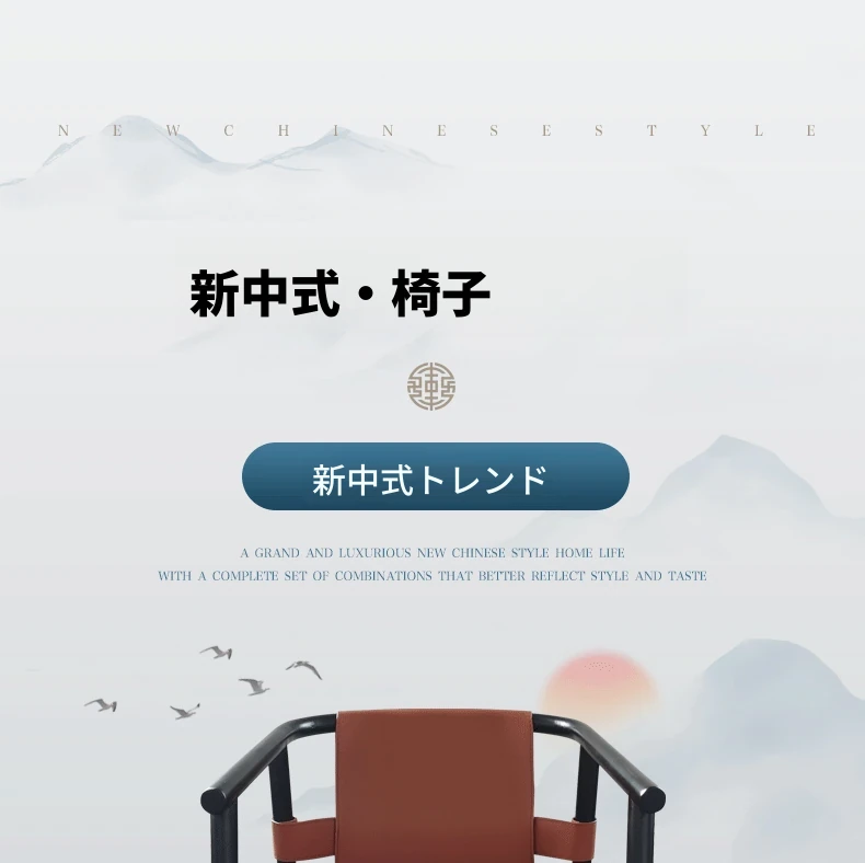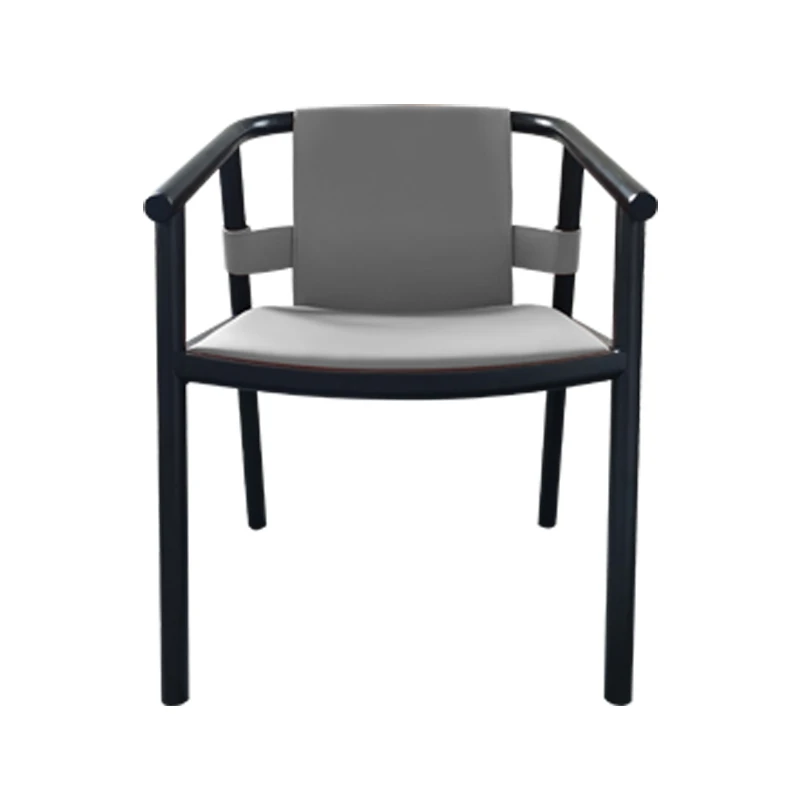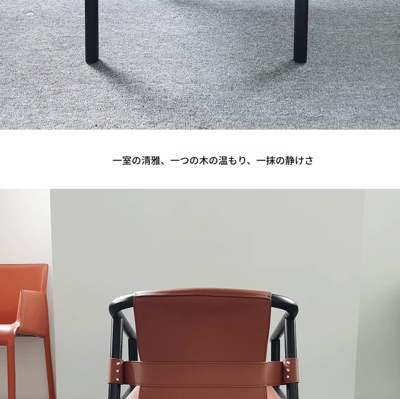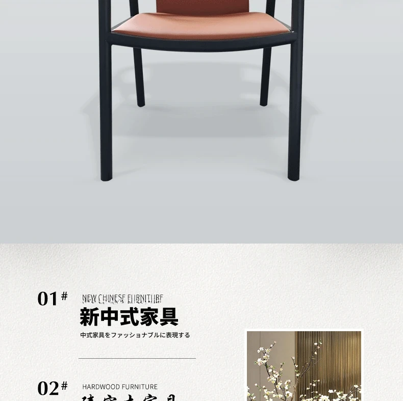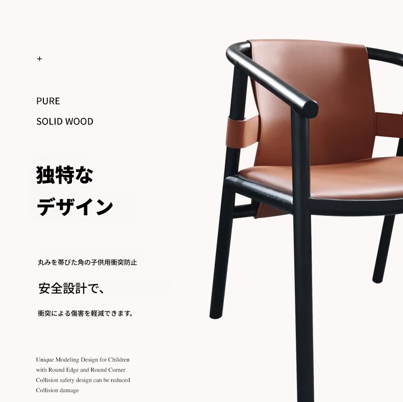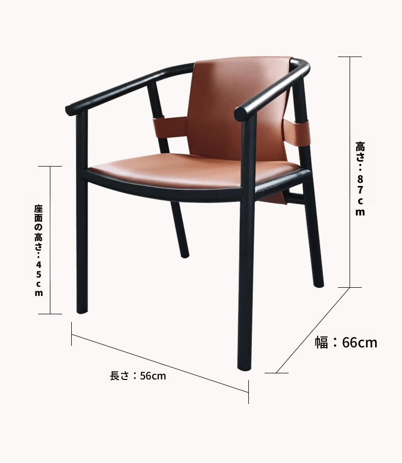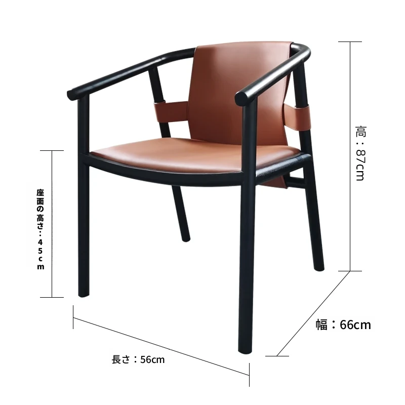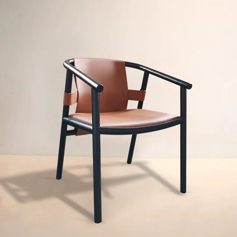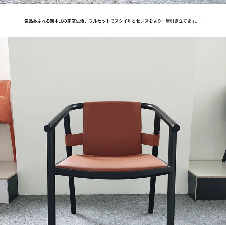 新中式デザインのダイニングチェア - 上質なサドルレザー製、茶室や民宿に最適!背もたれ付きで快適、会議や接客にもピッタリなサークルチェア。おしゃれで実用的な一品をお見逃しなく!