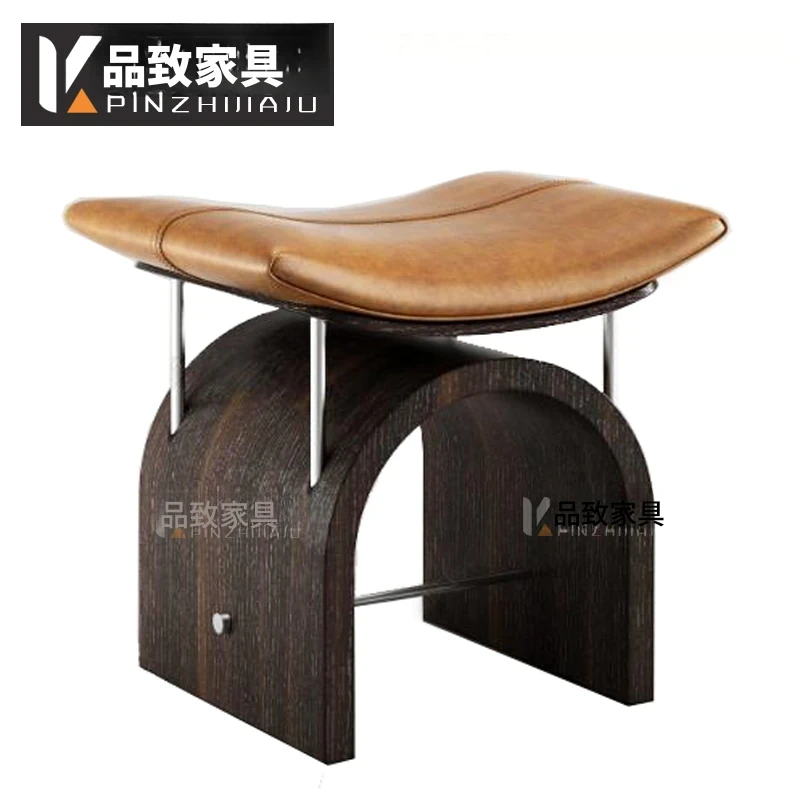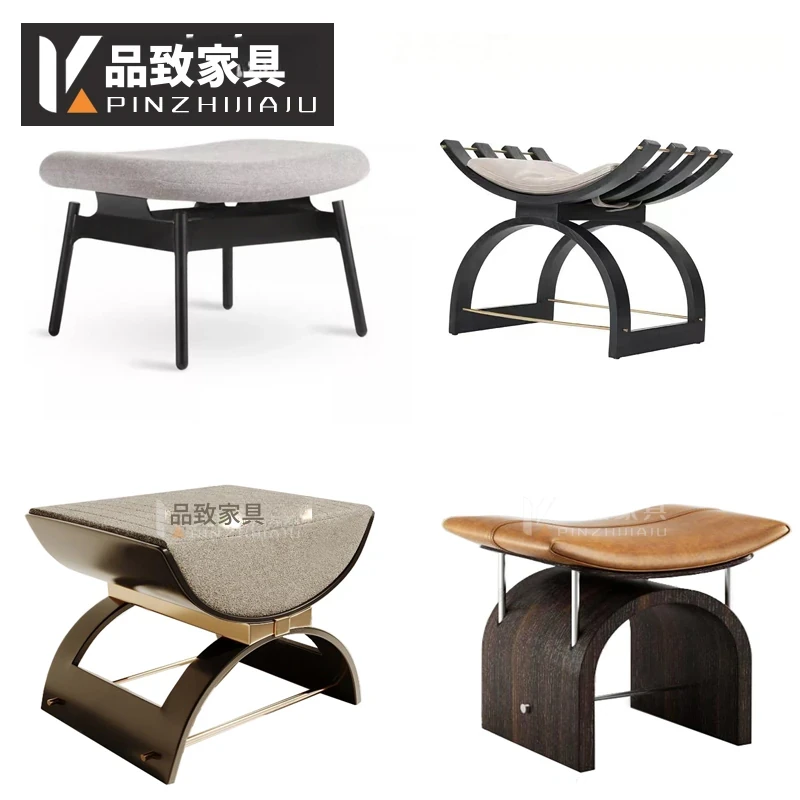 新中式軽奢実木製のロースツール - オフィスや茶室に最適!デザイナーによる円形スツールで、ドレッシングや靴を履く時、商談の場にもぴったり。洗練されたデザインで、空間を引き立てる一品です。