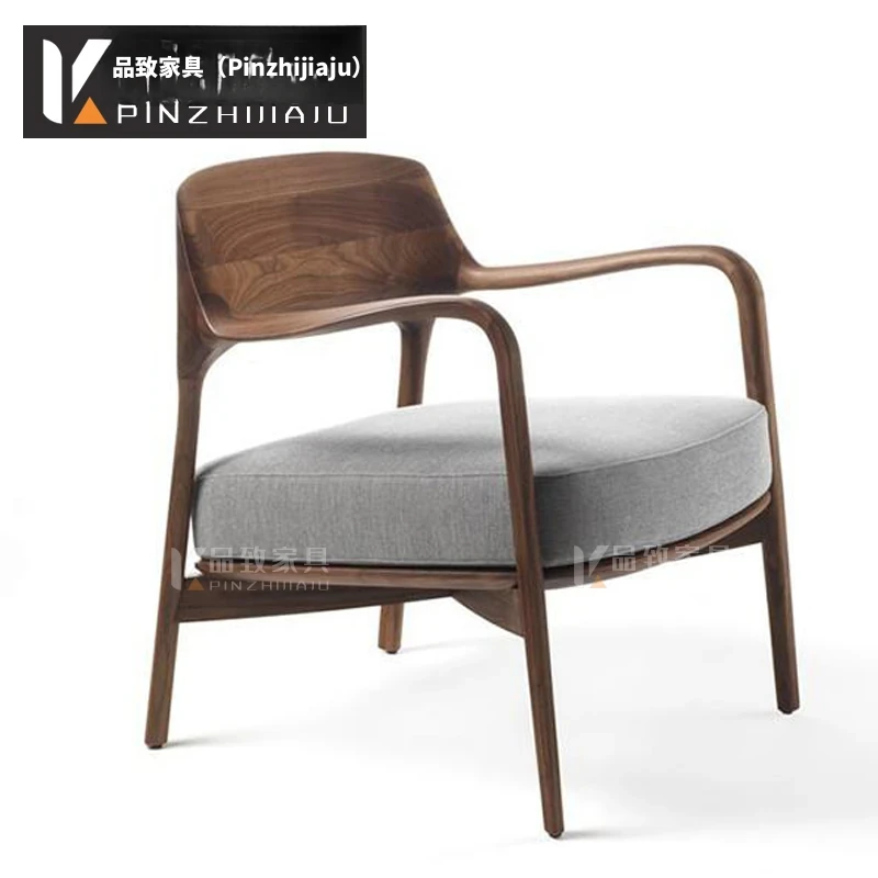 インドネシア輸入の無垢材ソファチェア - 北欧スタイルの家庭用布製リクライニングチェア!デザイナーによるホテル用のリラックスしたバルコニー椅子、居心地の良さを追求した一品です!