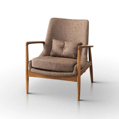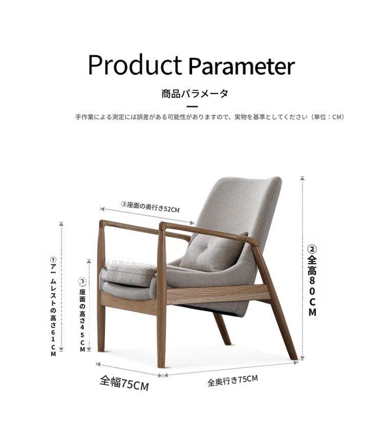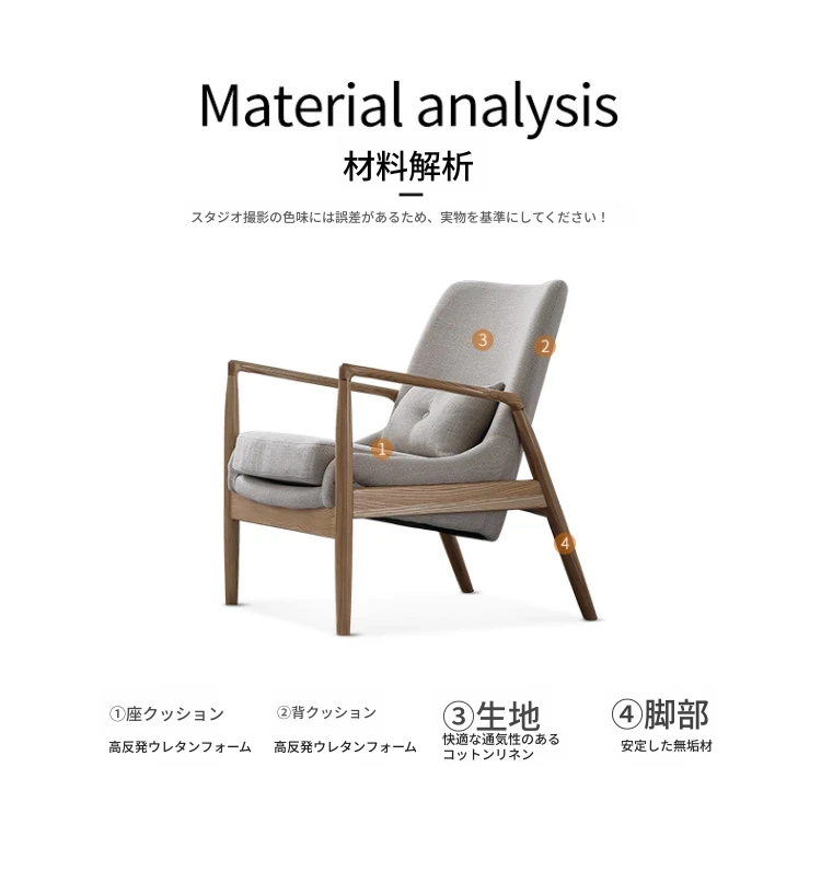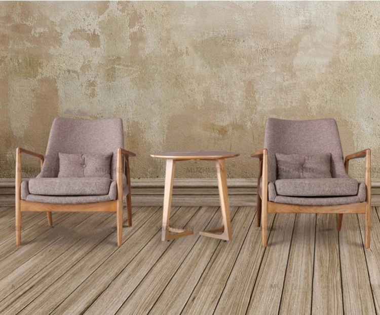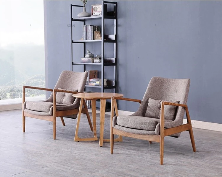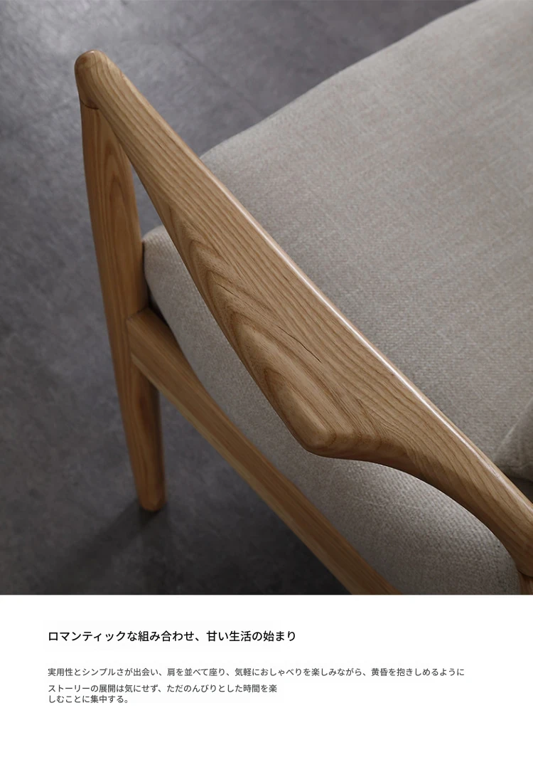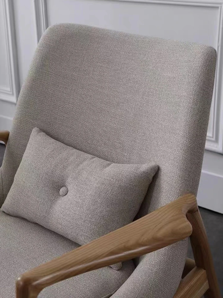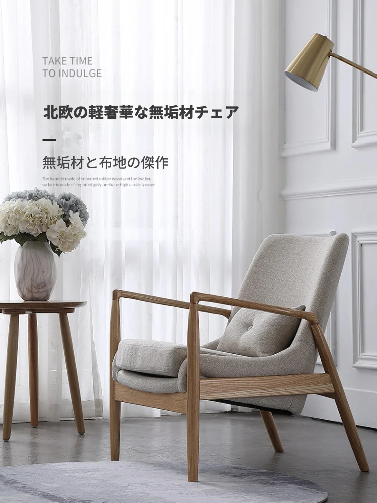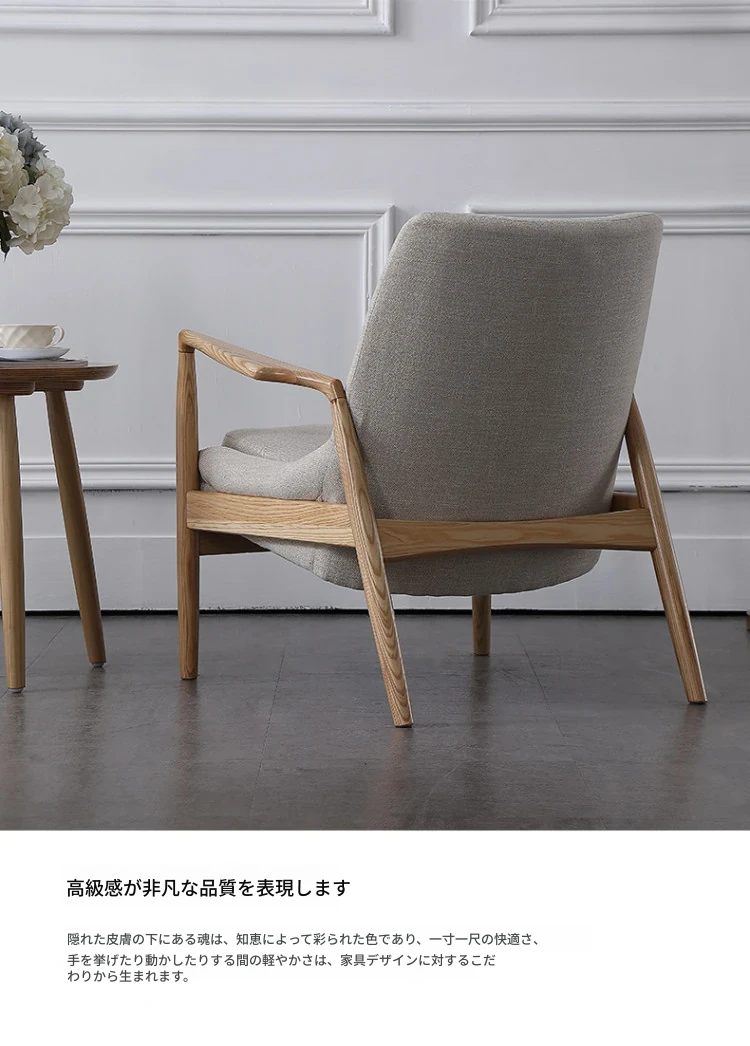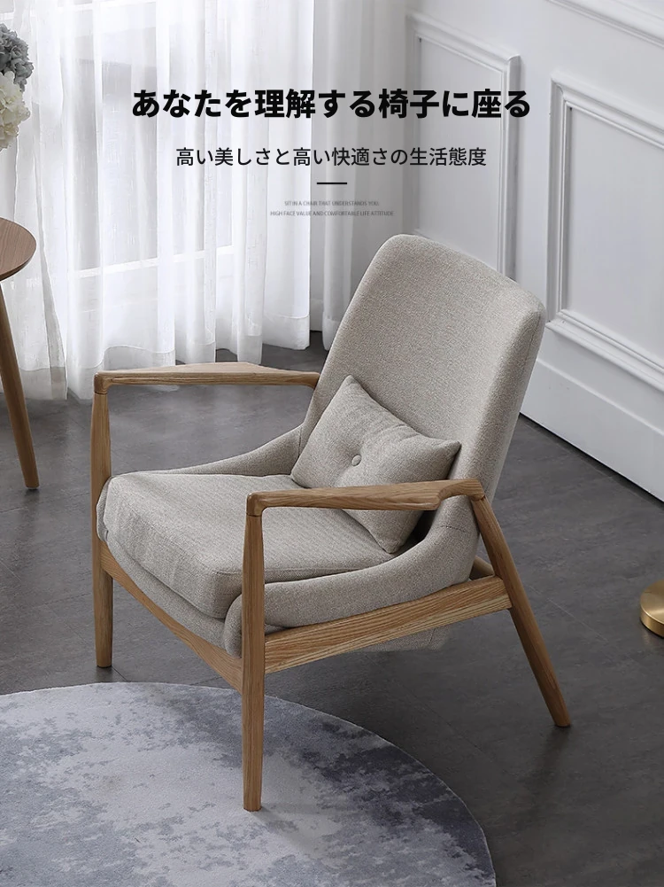 北欧スタイルのホワイトアッシュ無垢材シングルソファチェア - シンプルでおしゃれなデザイン、ホテルやカフェ、書斎、リビング、ティールームに最適なファブリックリラックスチェア!心地よいひとときを提供します。