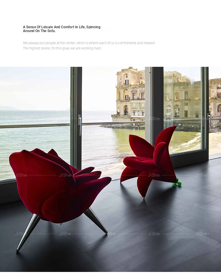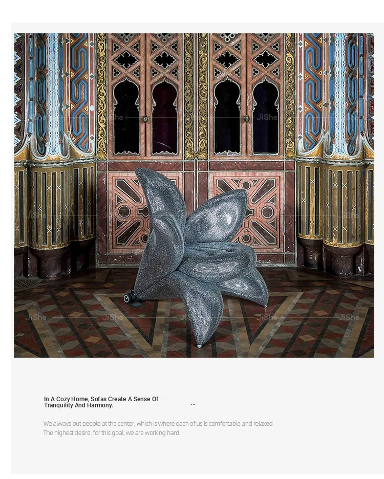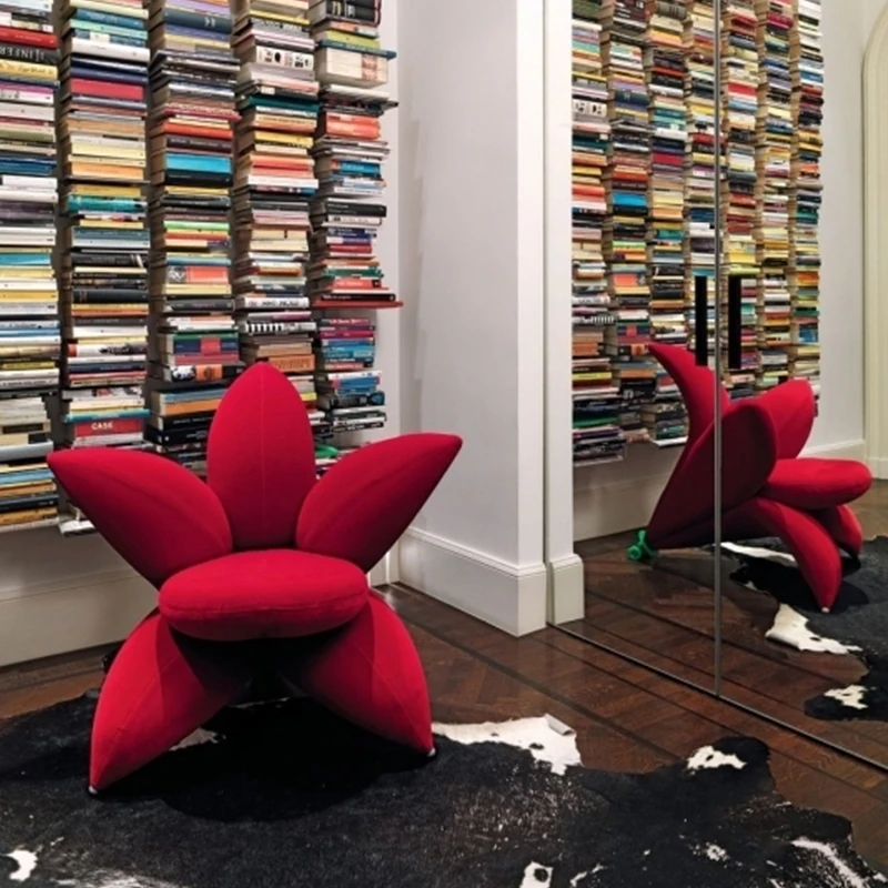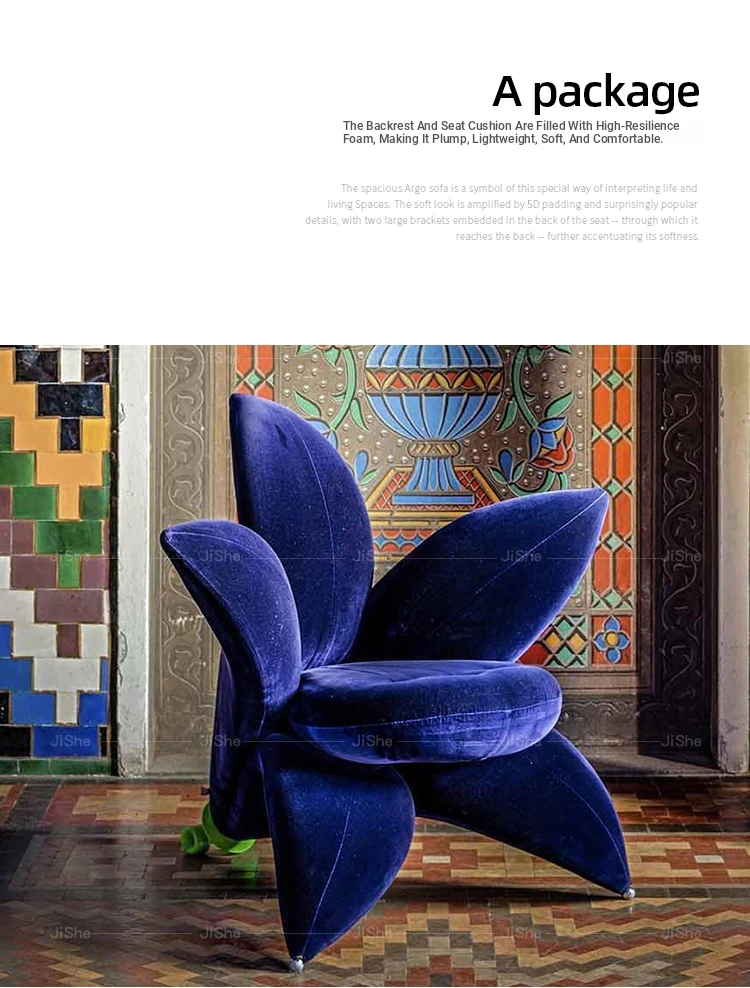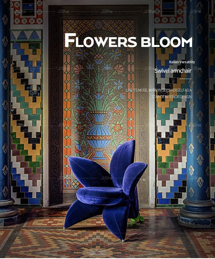 Nordic Chic Unique Shaped Floral Sofa Chair - Designer Leisure Chair with Lily Petal Fabric for Model Homes and Villas