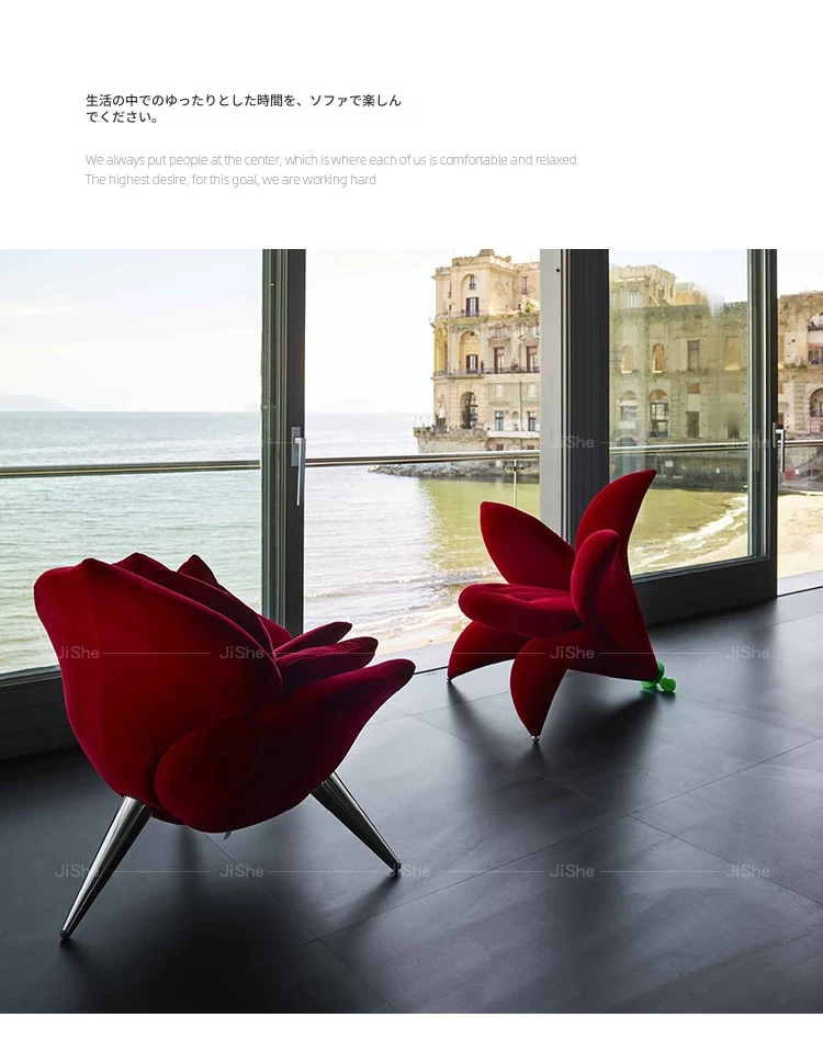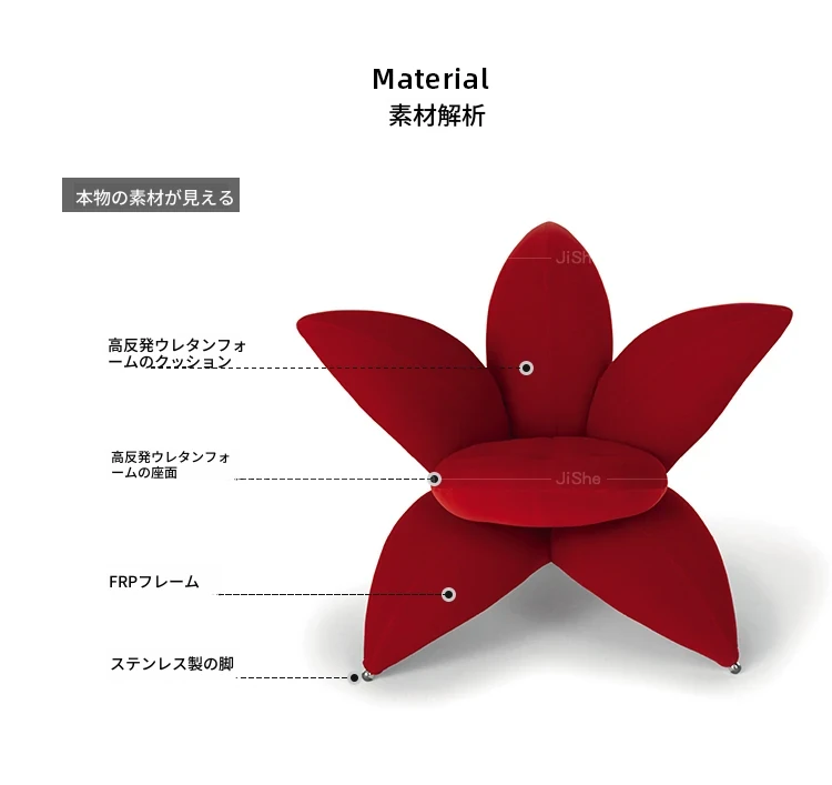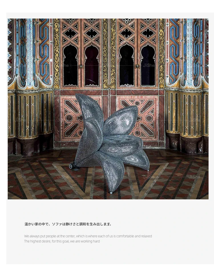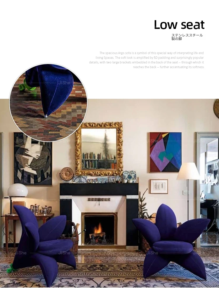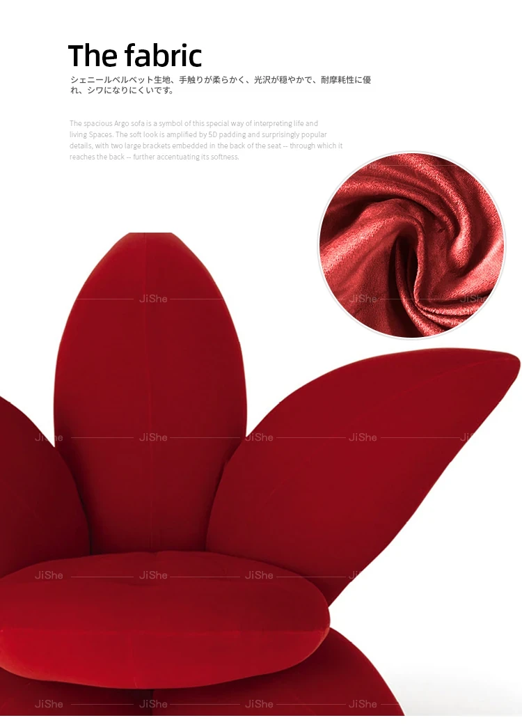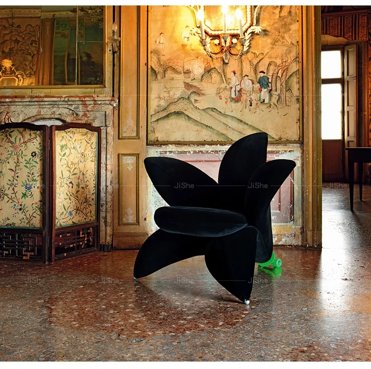 北欧のファッショナブルな個性的なユニークフラワーソファチェア - サンプルルーム、ヴィラデザインにぴったりなリリーペタル布製ラウンジチェア。おしゃれで快適な空間を演出します!