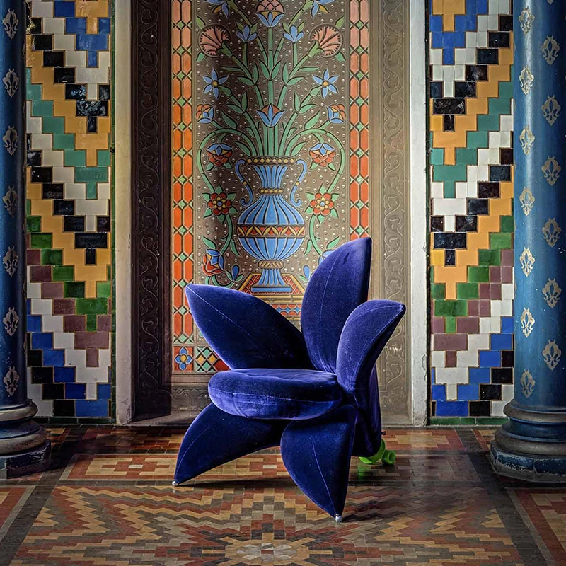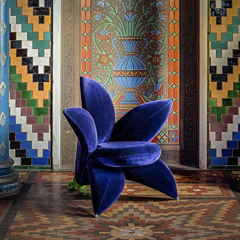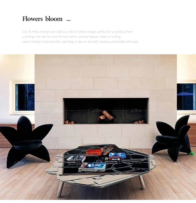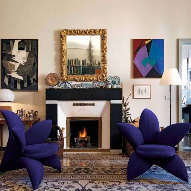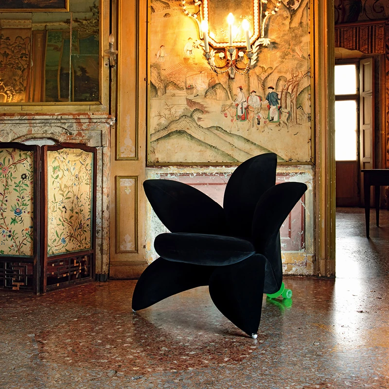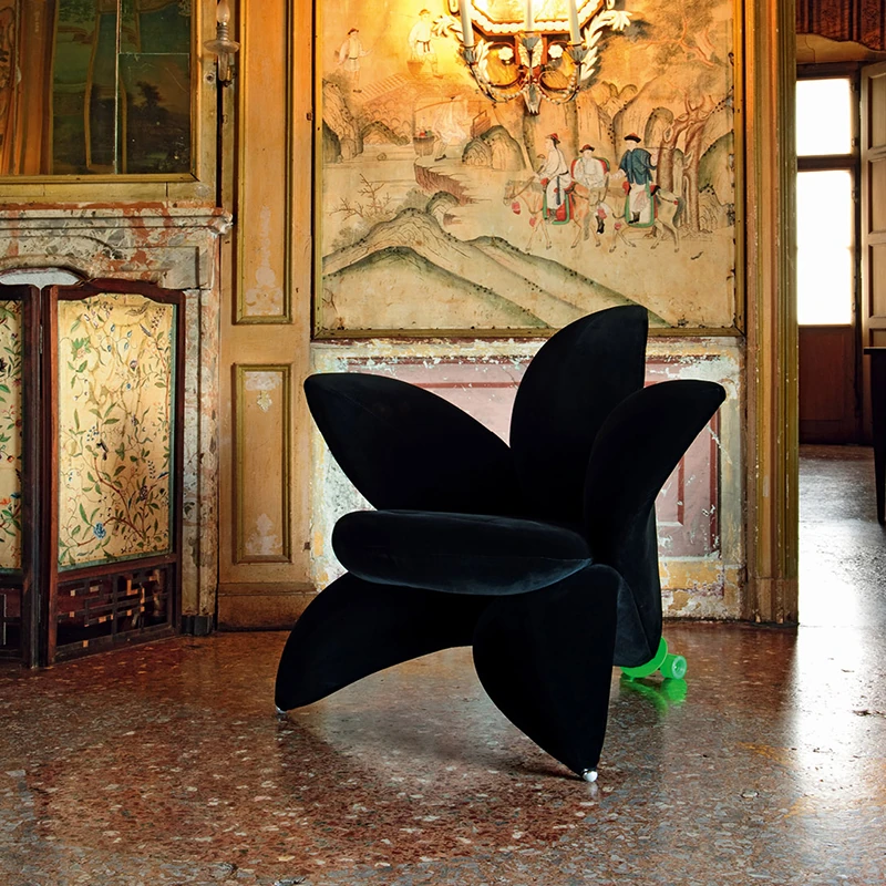 北欧のファッショナブルな個性的なユニークフラワーソファチェア - サンプルルーム、ヴィラデザインにぴったりなリリーペタル布製ラウンジチェア。おしゃれで快適な空間を演出します!