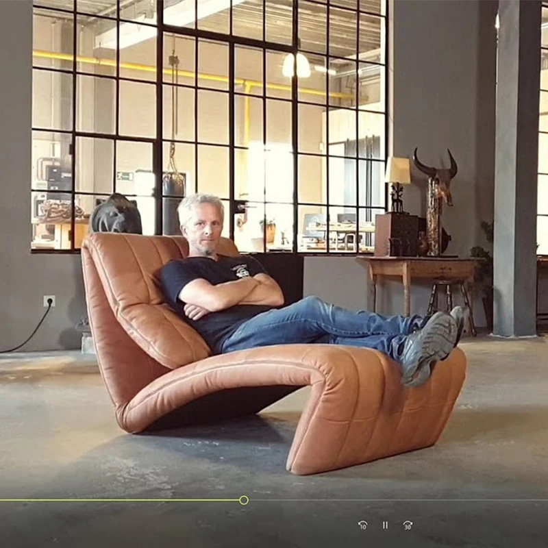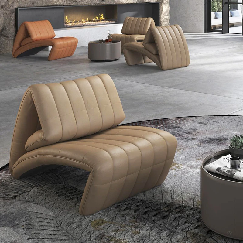 北欧デザインのラグジュアリー折りたたみリクライニングチェア - 創造的なバルコニー用、曲線美を持つラウンジチェア。モデルルームにぴったりなユニークな座席で、心地よいひとときを演出します!