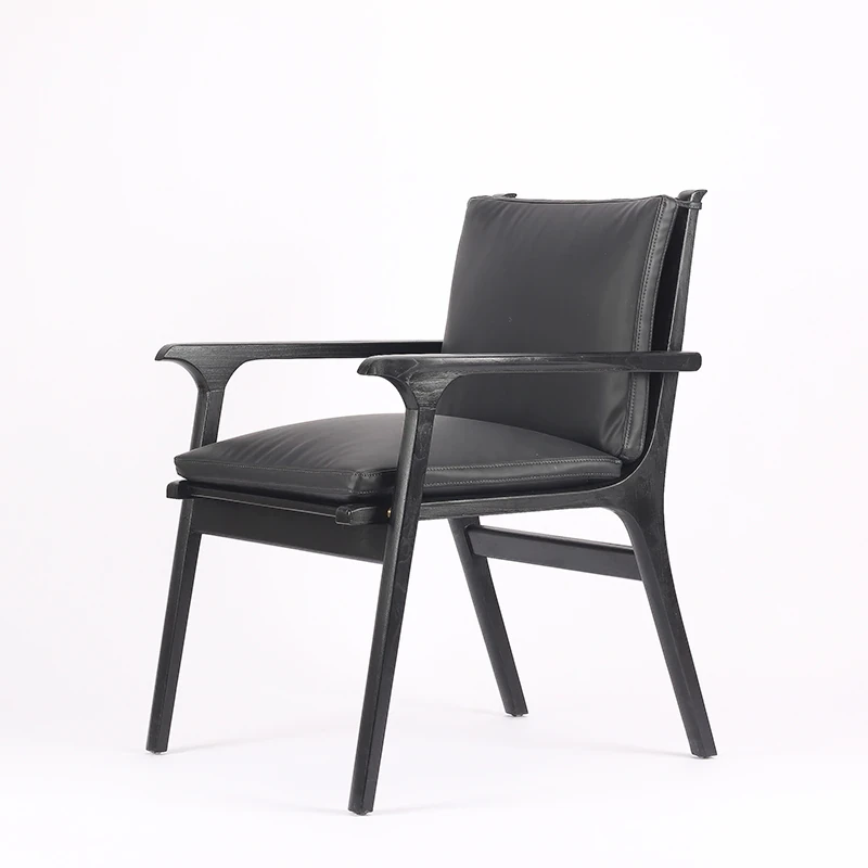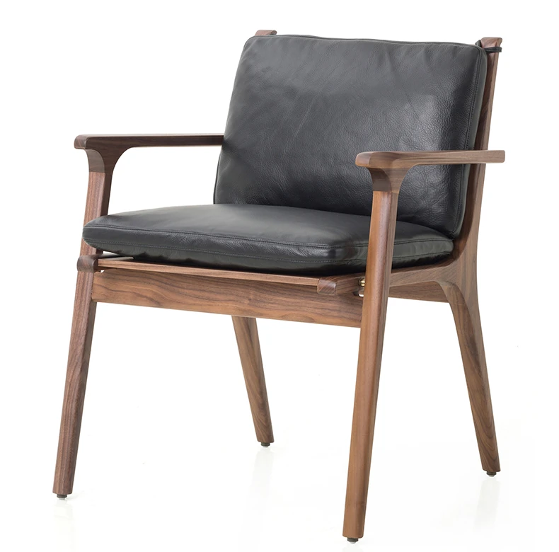 北欧スタイルのシンプルなデザイン!高品質な無垢材のクルミを使用した、布張り&レザーのダイニングチェア。書斎や展示にも最適なエレガントなアームチェア。快適さとスタイルを両立させた一品です!