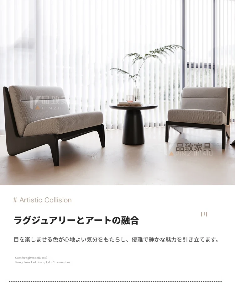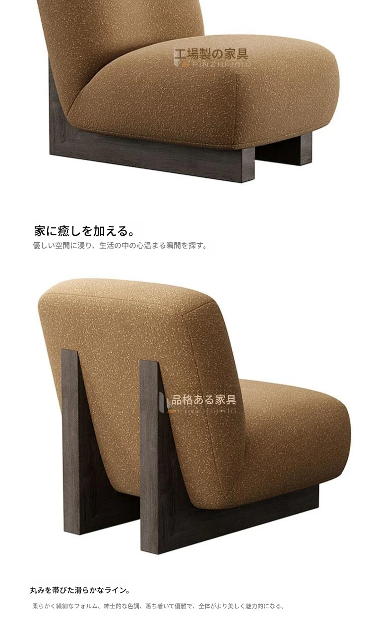 北欧モダンファブリックソファチェア - わびさび風のスタイルで、会所や不動産販売所、ホテルにぴったりなシンプルなリビングルーム用のリラックスチェア。おしゃれで居心地の良い空間を演出します!