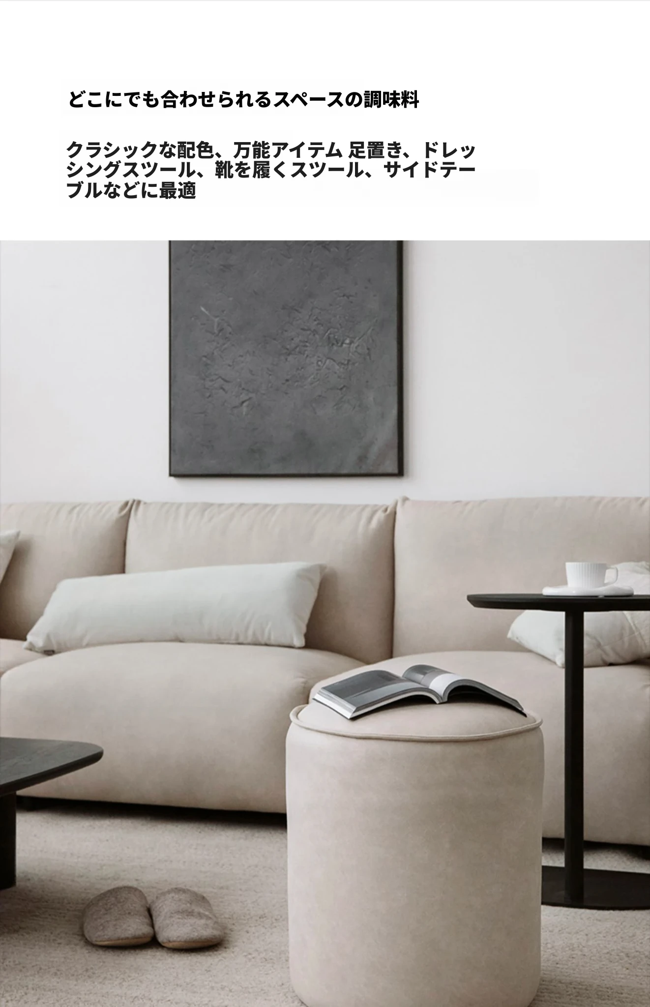 北欧スタイルのモダン化粧台スツール - くつろぎのリビングにぴったり!布製のソファスツールや足置き、天然木のショートスツールとして、玄関での靴の脱ぎ履きにも最適。おしゃれで機能的なデザイン!
