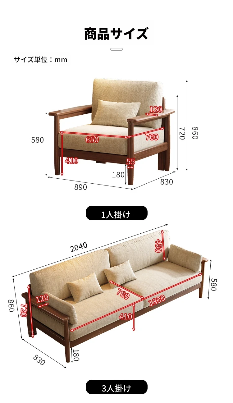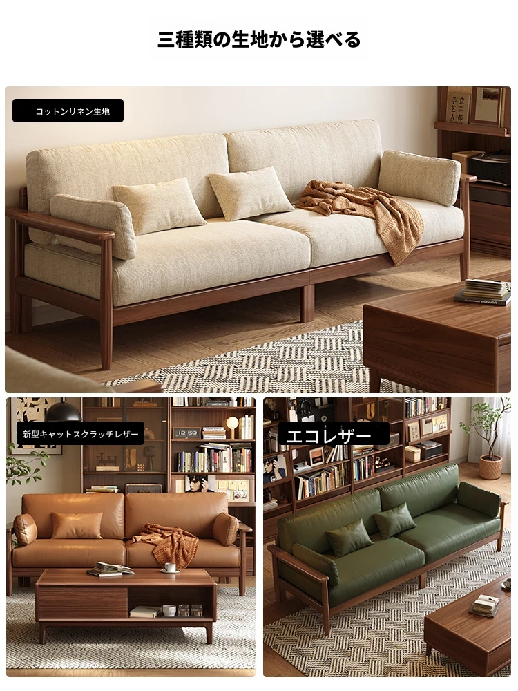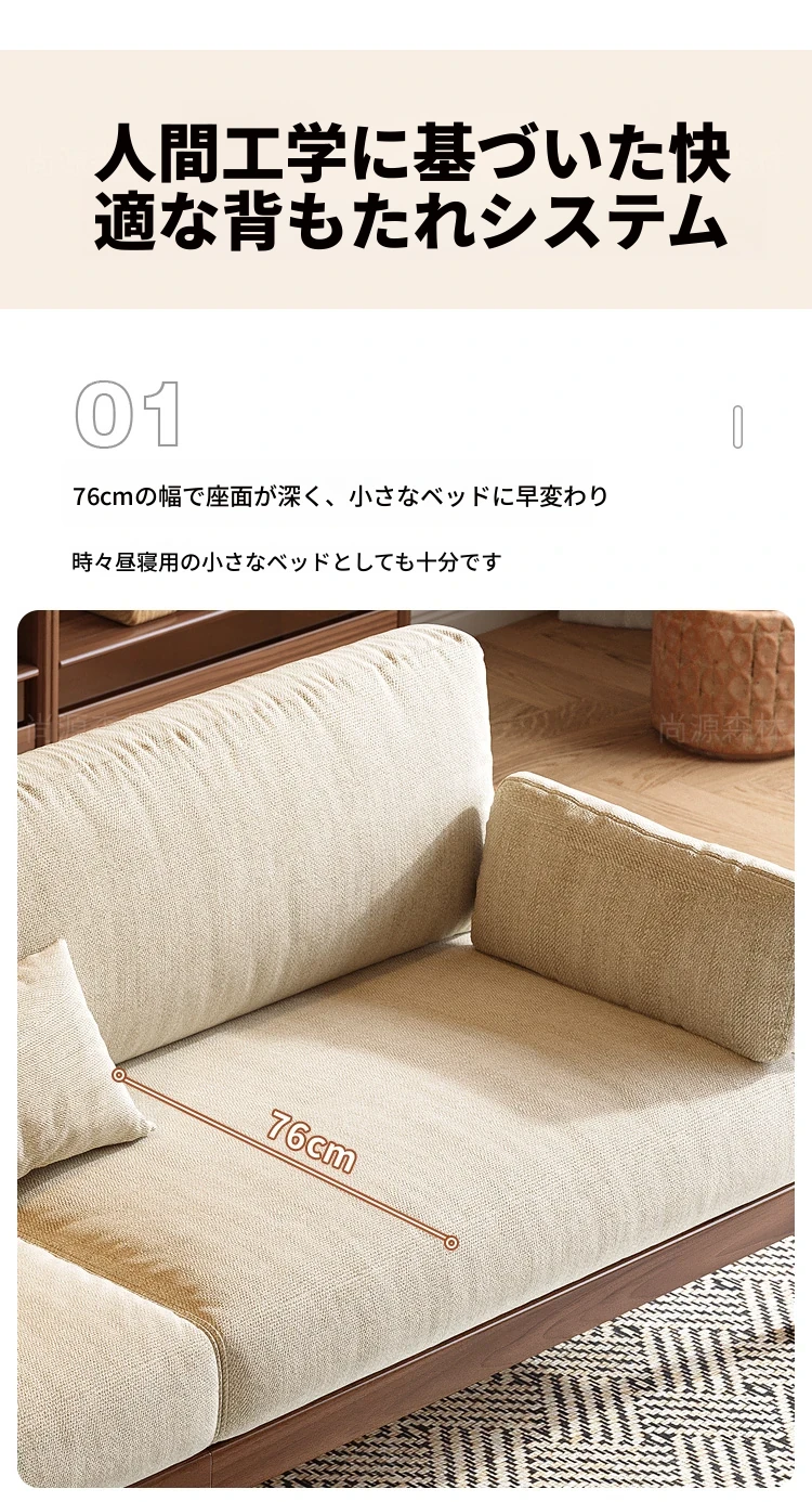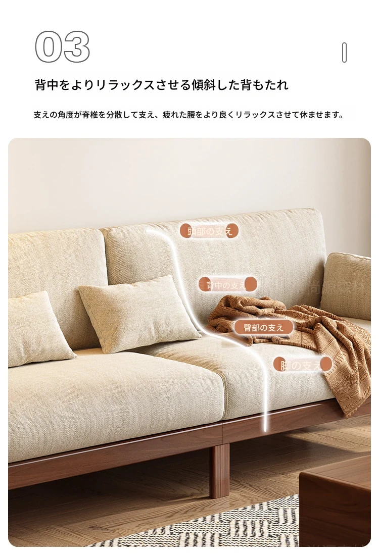 三人用(コットンリネン/アイボリー)+アームレストクッション*2+クッション*2
