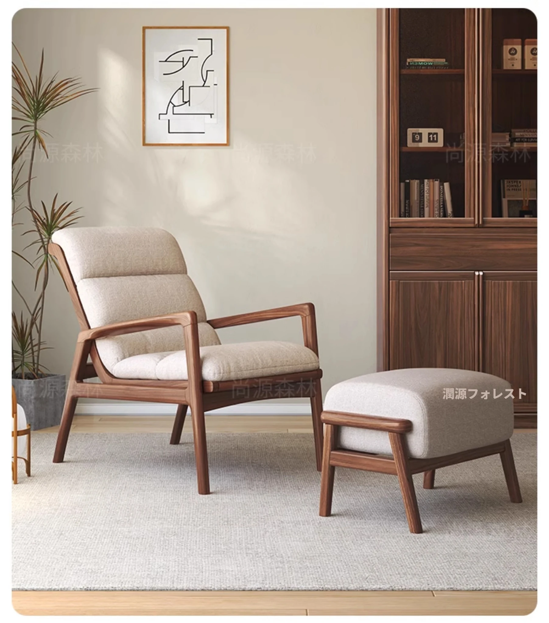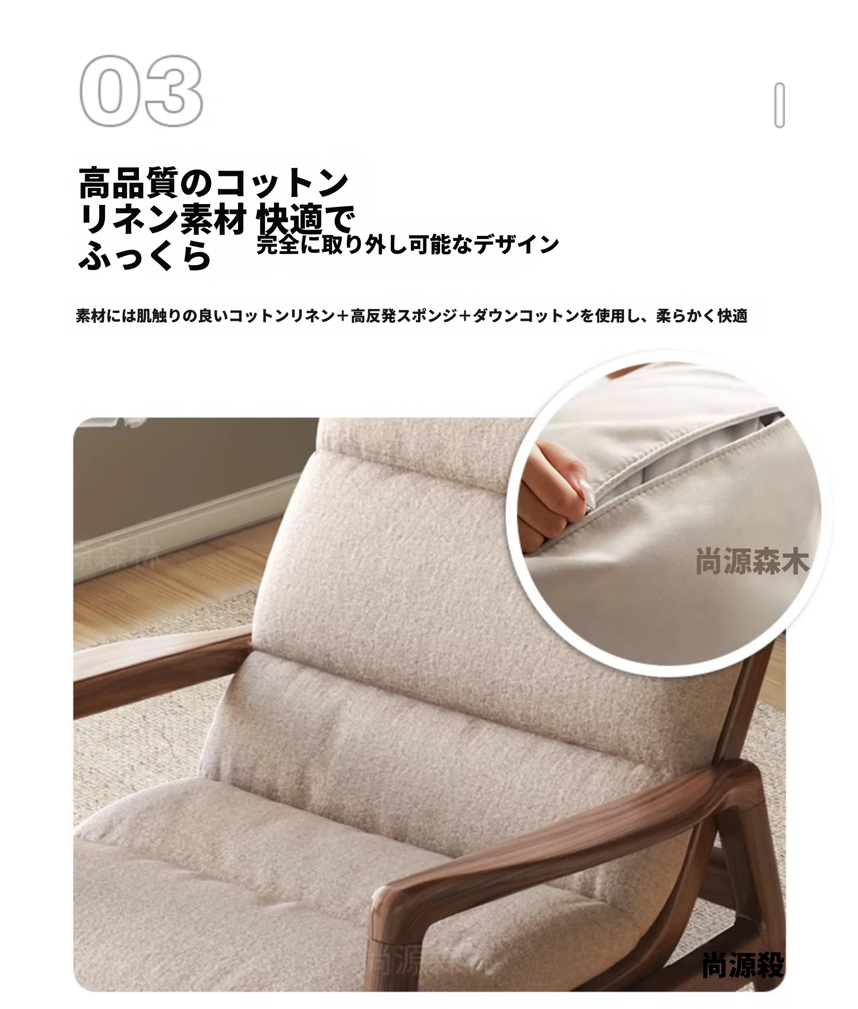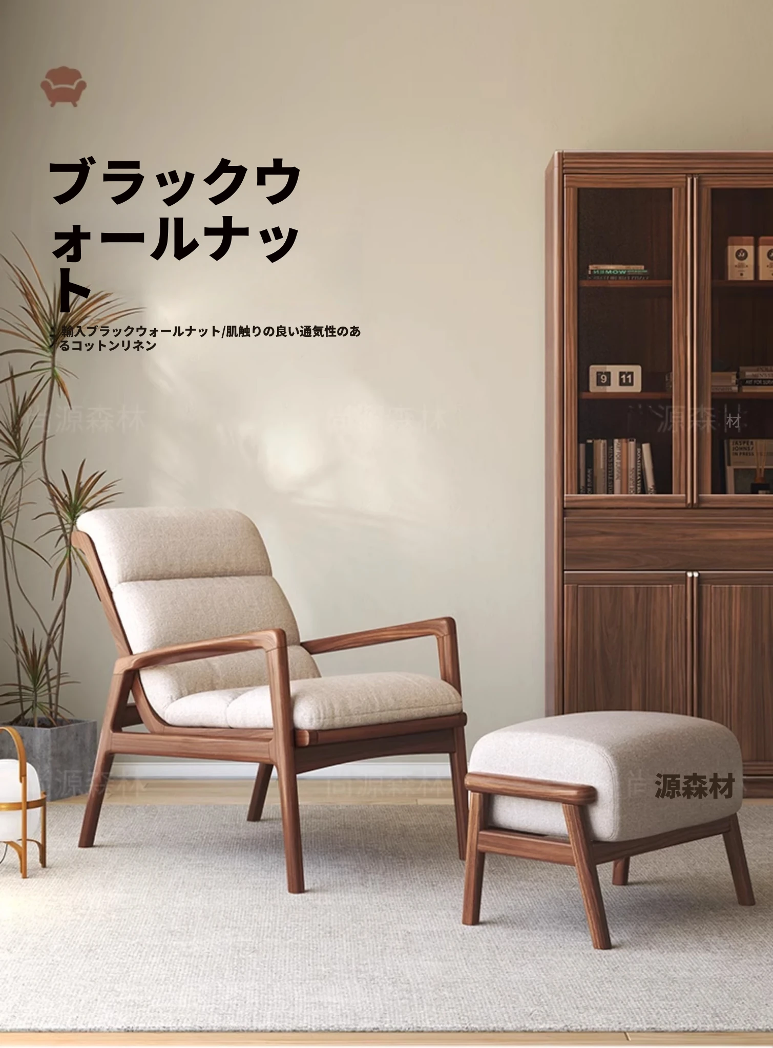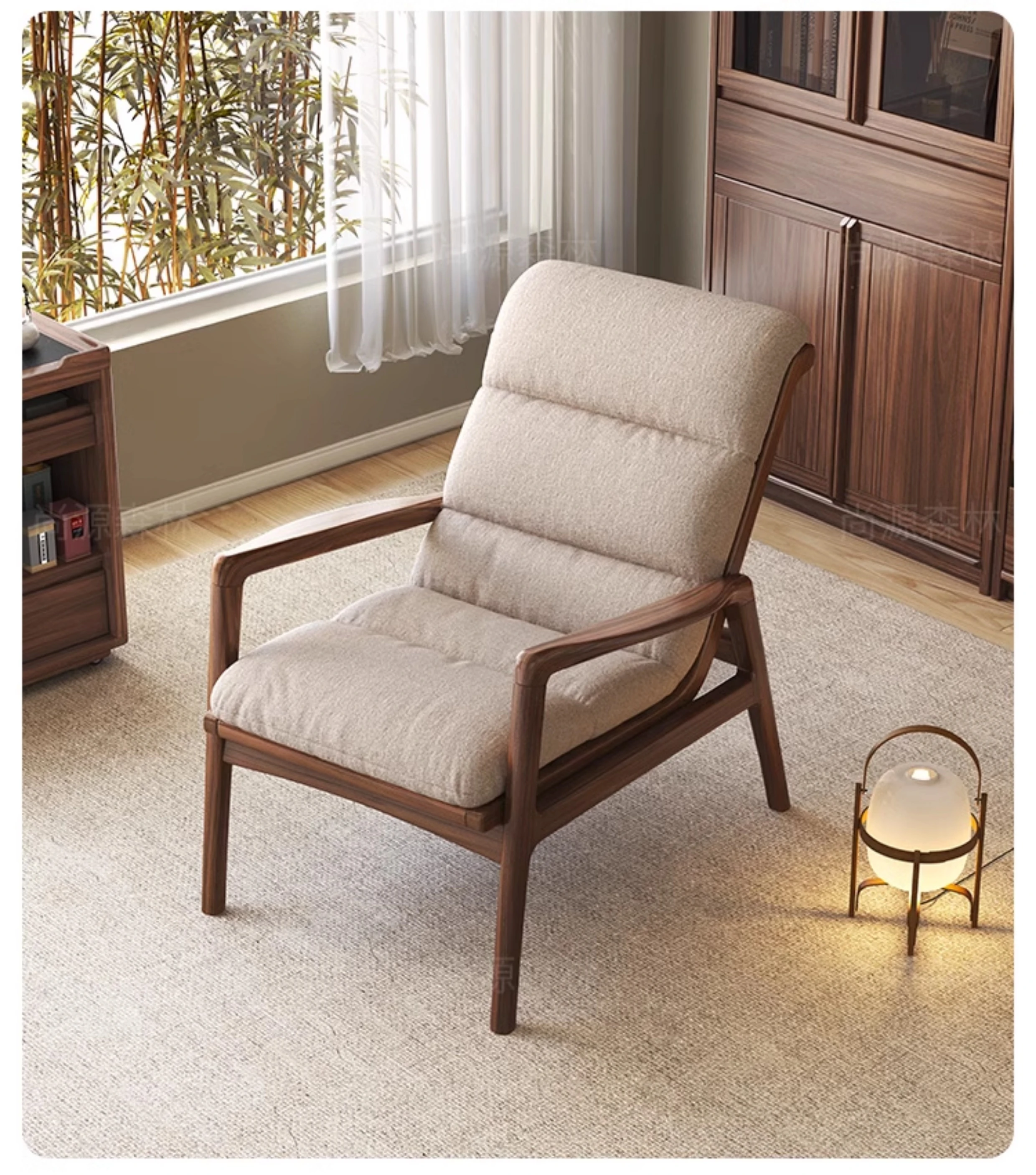 ブラックウォールナット北欧スタイルの無垢材リクライニングチェア|家庭用・お昼寝・バルコニーでのリラックス・リビングやオフィスに最適なソファチェア|快適なひとときを提供します!
