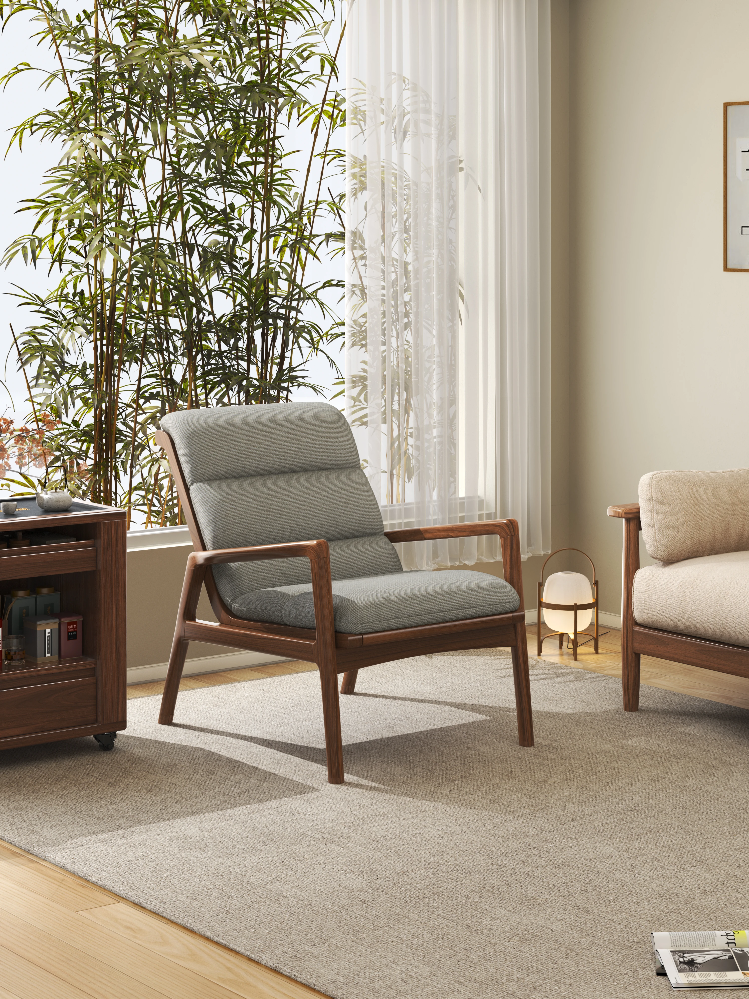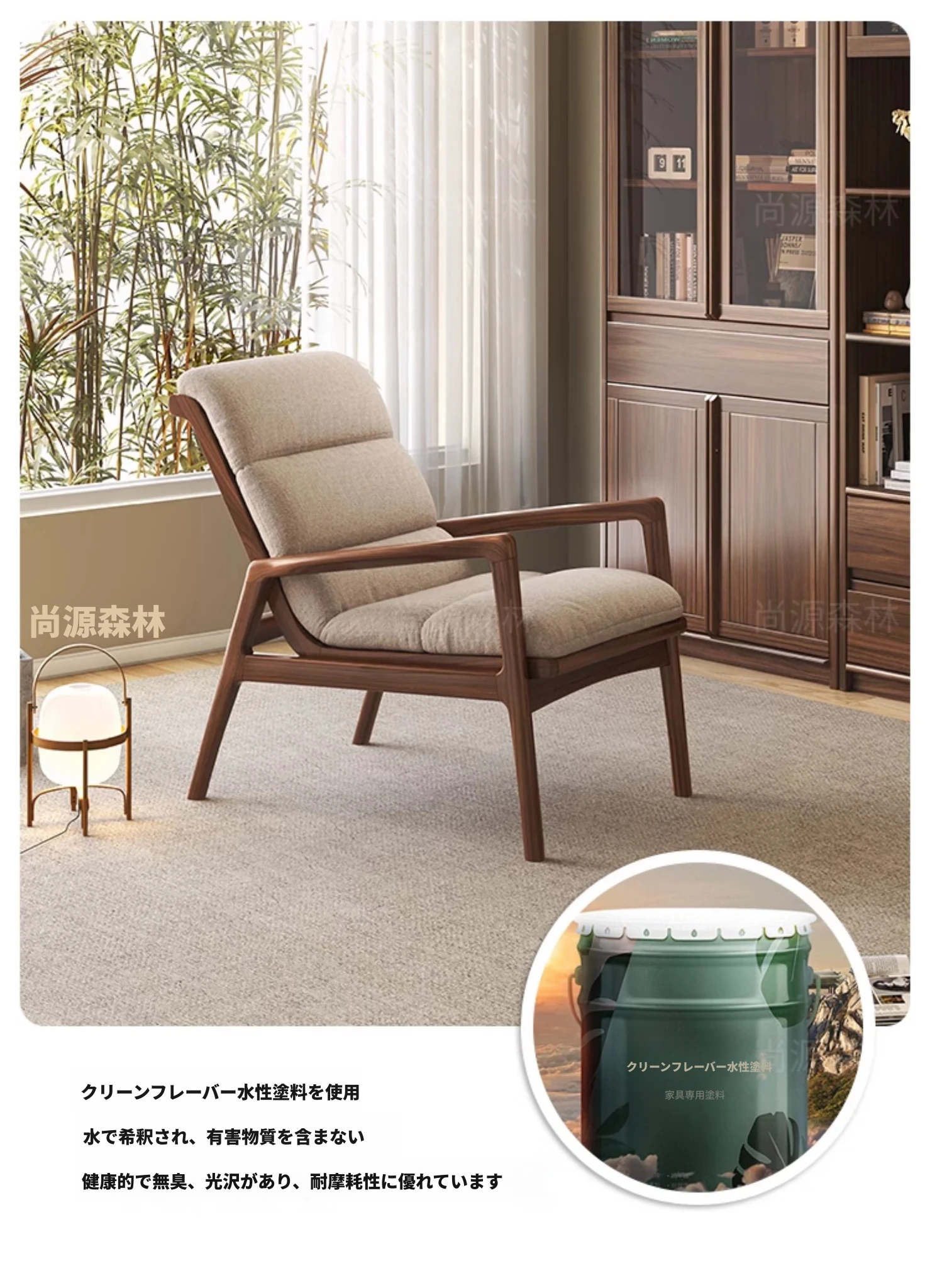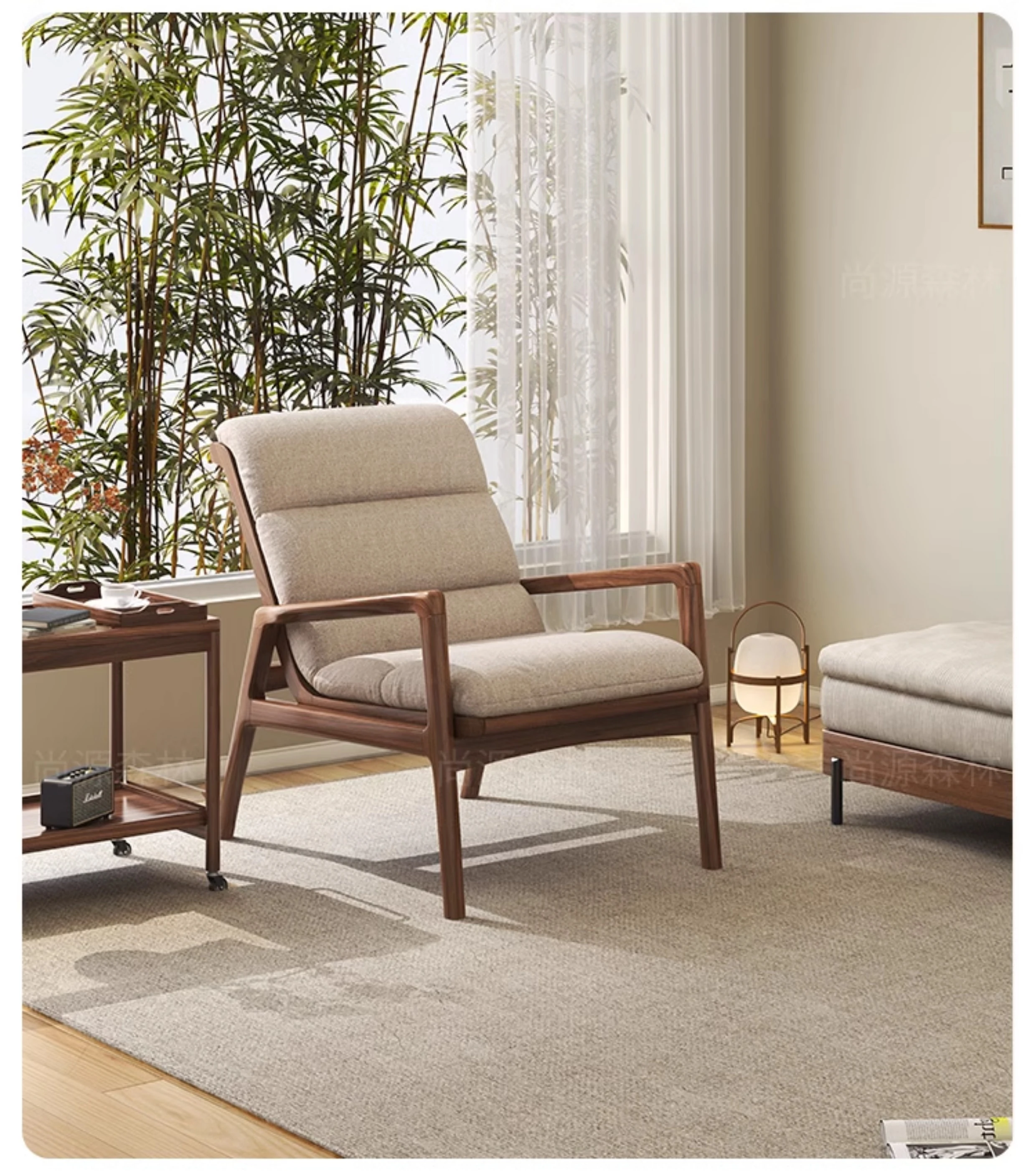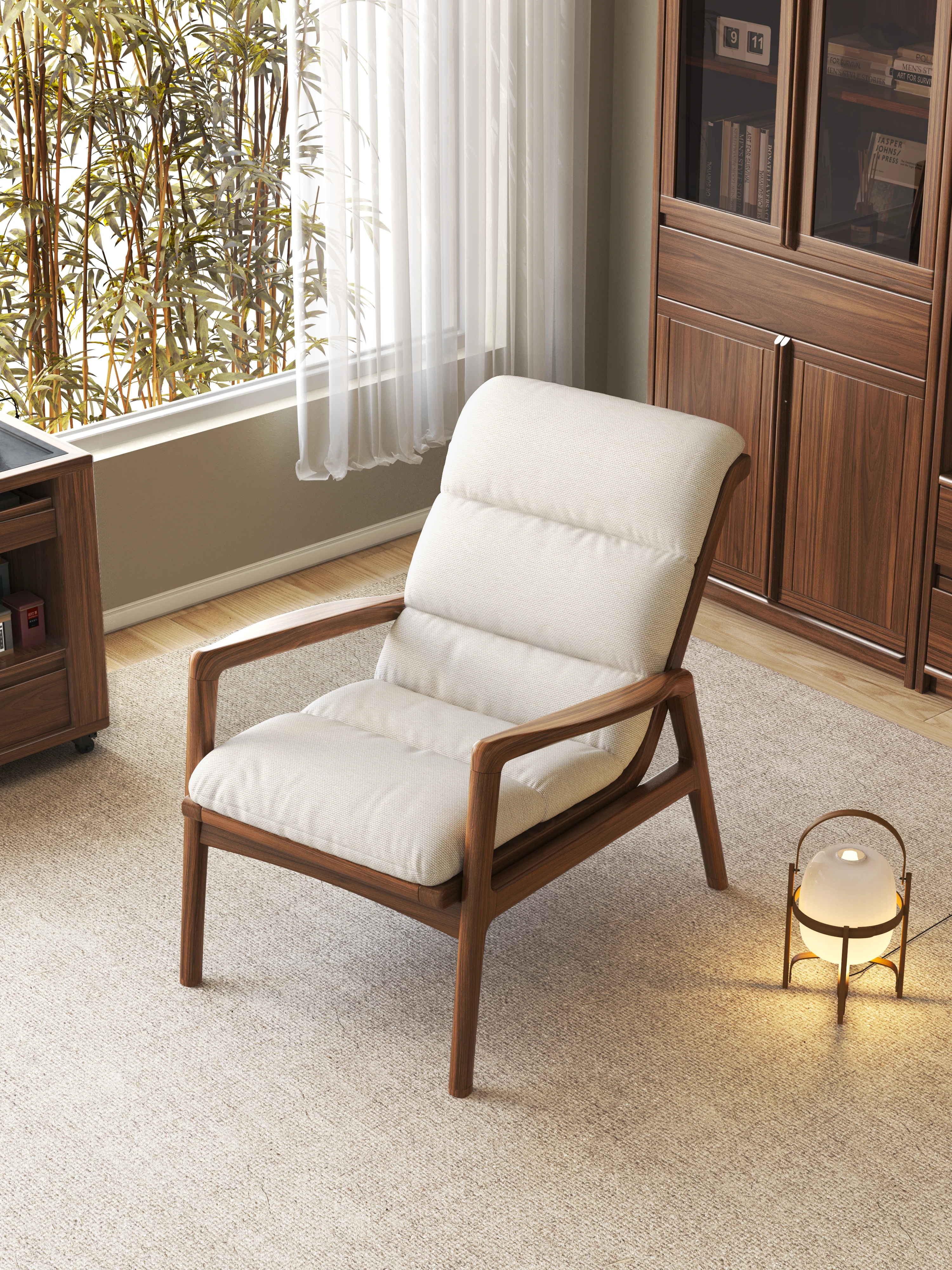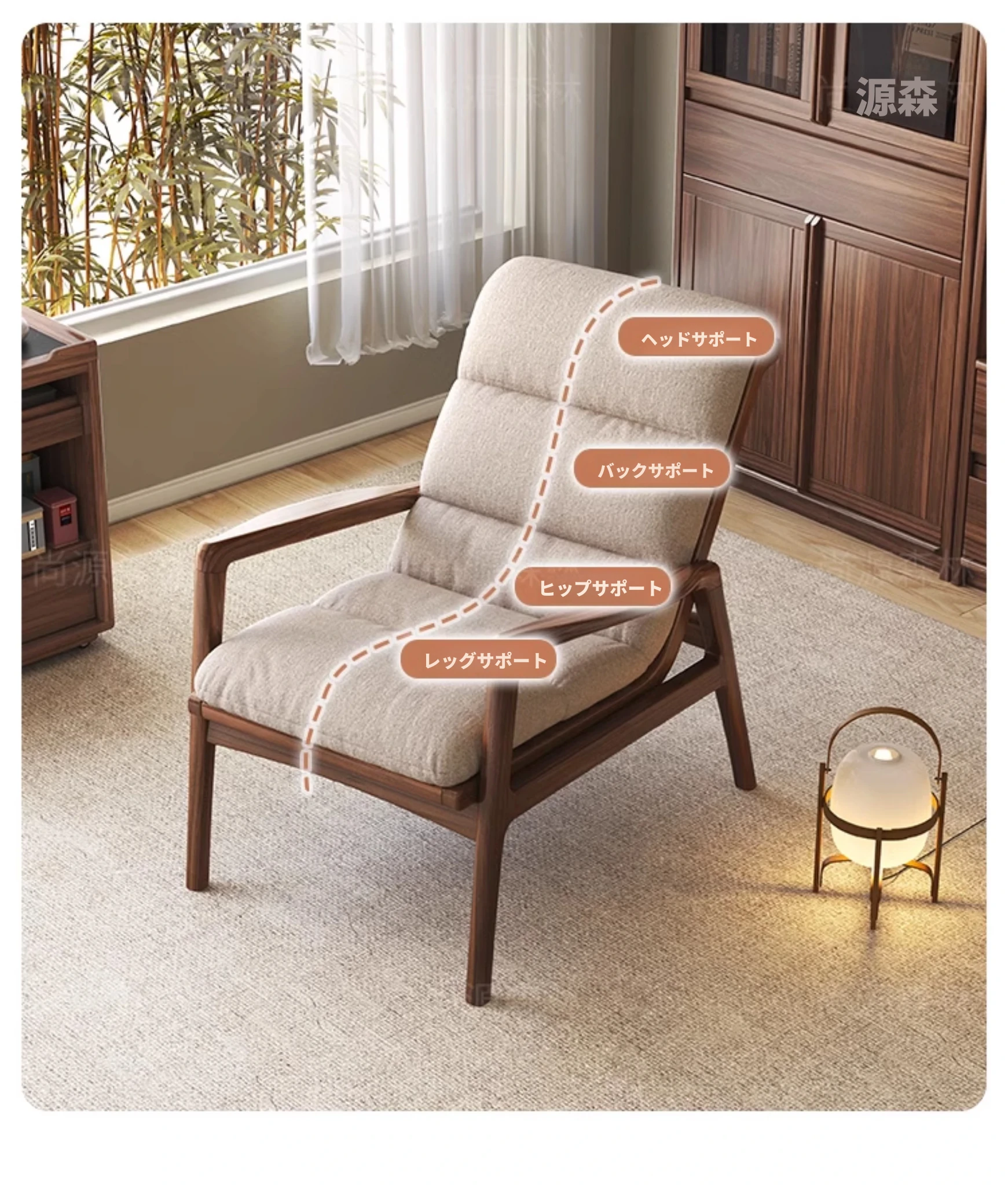 ブラックウォールナット北欧スタイルの無垢材リクライニングチェア|家庭用・お昼寝・バルコニーでのリラックス・リビングやオフィスに最適なソファチェア|快適なひとときを提供します!