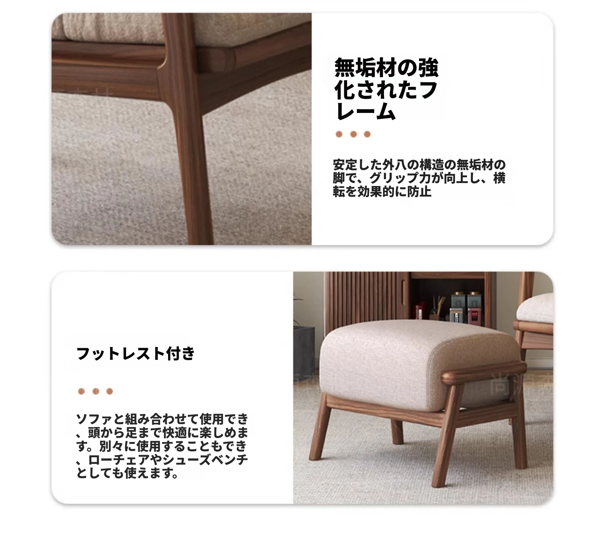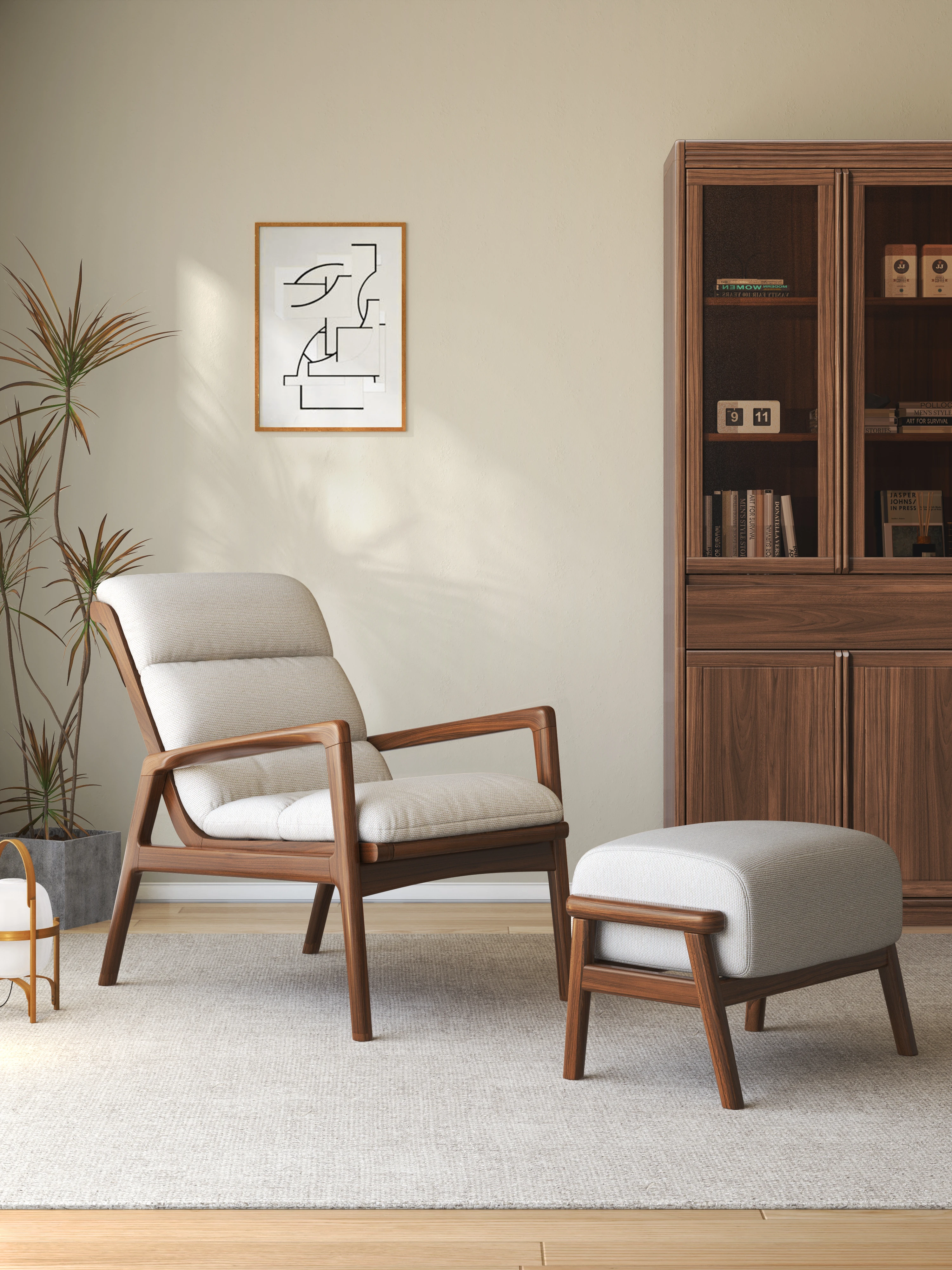 【ブラックウォールナット】リクライニングチェア+フットスツール コットンリネンクッション