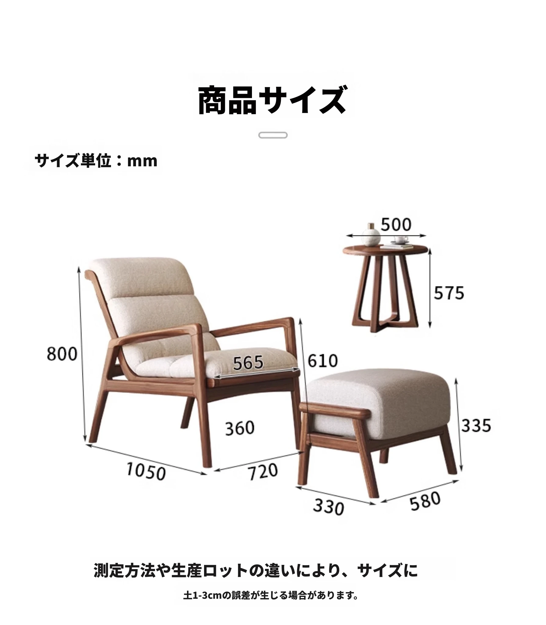 【ブラックウォールナット】リクライニングチェア+フットスツール+230214サイドテーブル コットンリネンクッション