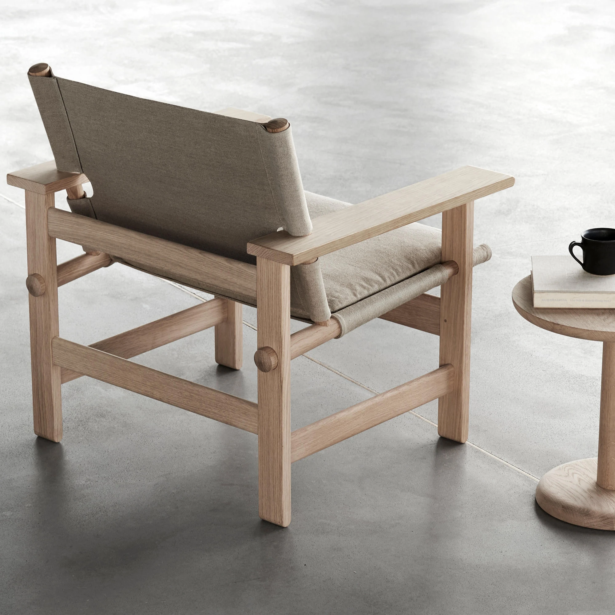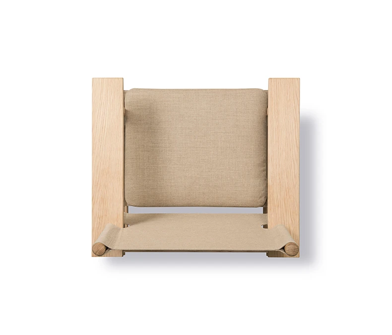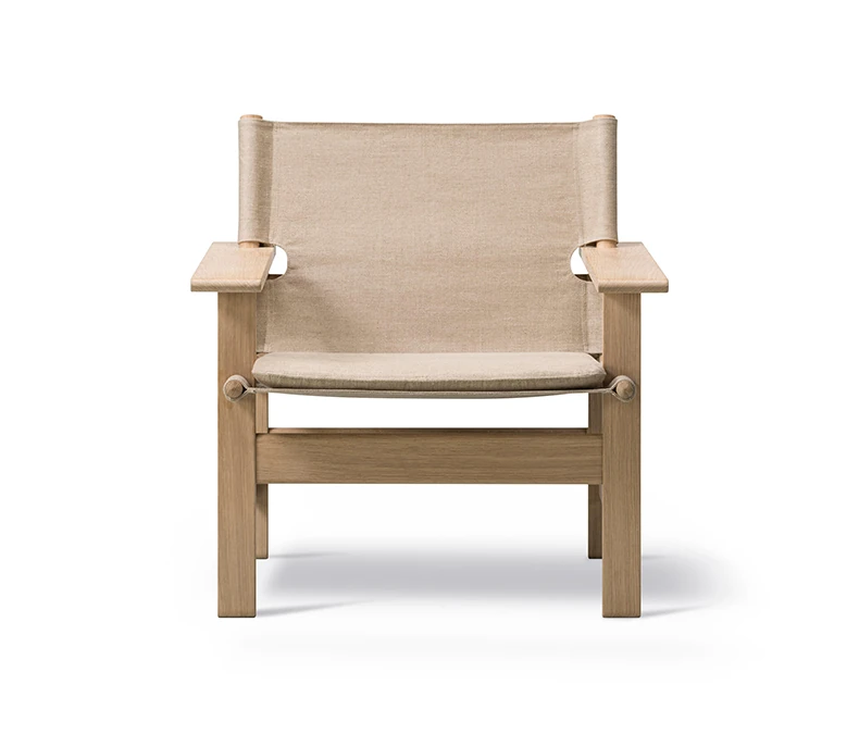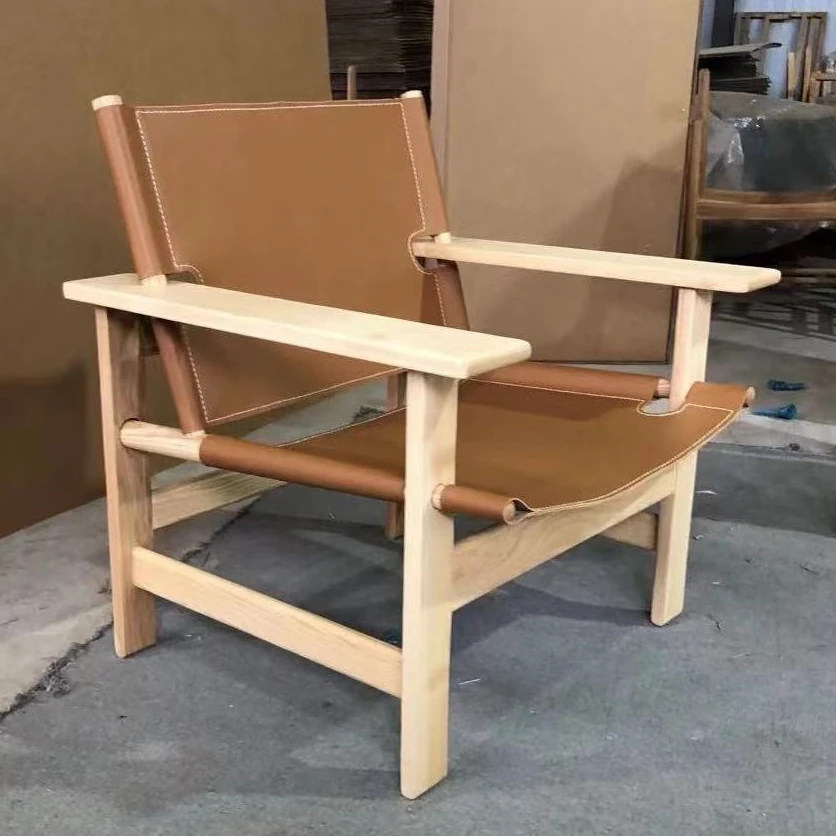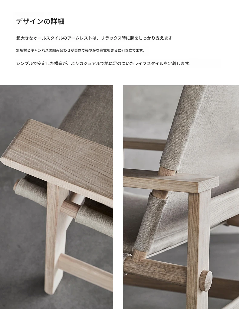 北欧スタイルの新作!大人向けの現代的な無垢オークとホワイトアッシュのキャンバス生地&本革のリラックスチェア。おしゃれで快適、あなたのリビングにぴったりの一品です!