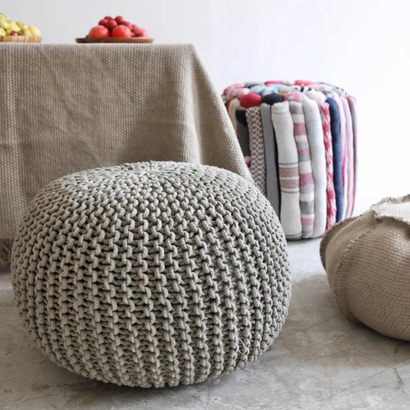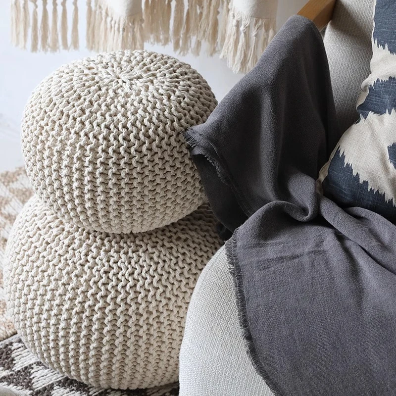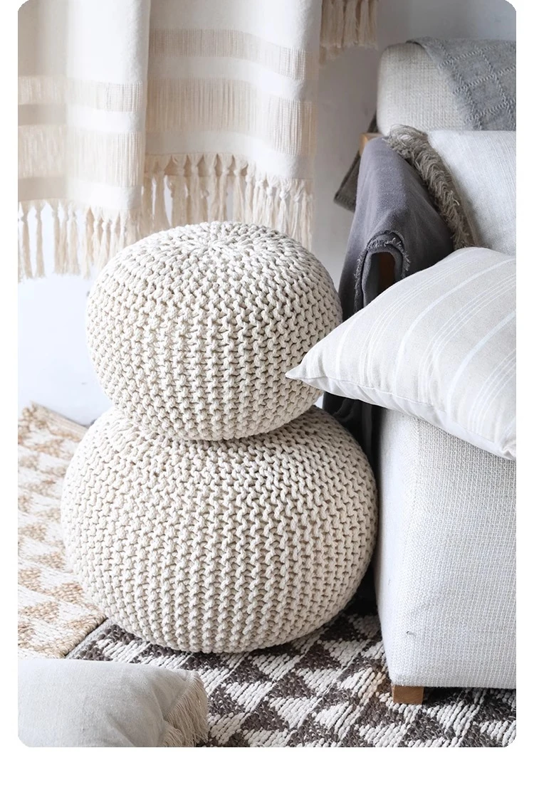 北欧スタイルのリビング用手作り円形座布団 - シンプルで高級感あふれる畳スタイルのクッション、足置きや靴を履く際に最適!おしゃれで快適な空間を演出します。