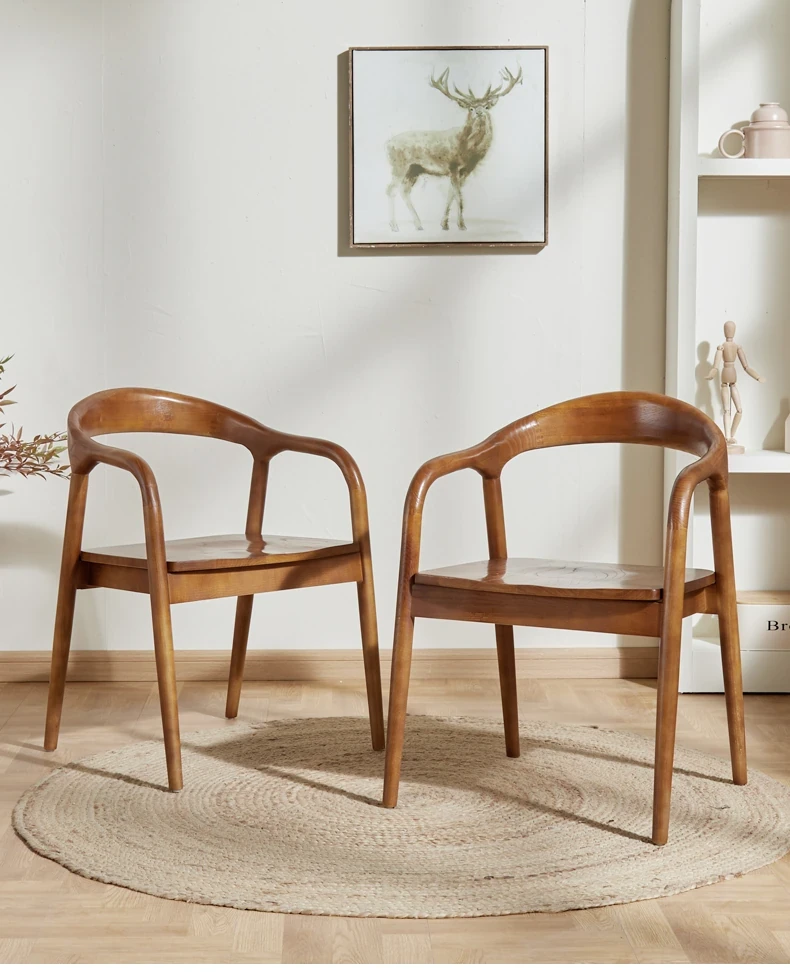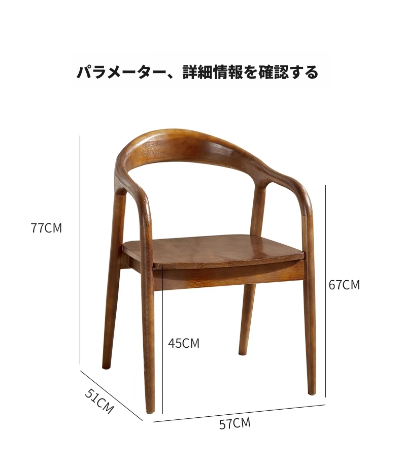 アメリカンカントリースタイルのフルウッドレトロダイニングチェア、ラウンドバックデザインでおしゃれに!家庭用・カフェ用に最適なリラックスチェア。温かみのある木の質感で、心地よい食卓を演出します。