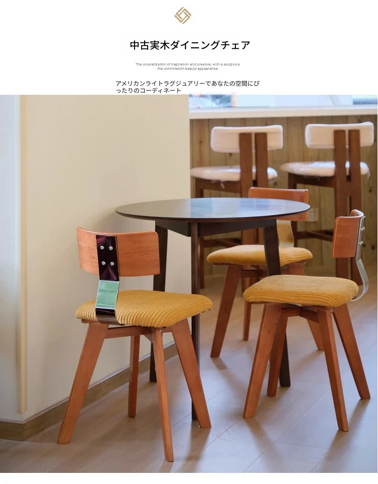 北欧スタイルの中古ダイニングチェア|高級感溢れる実木製|侘寂風デザイン|フレンチビンテージの背もたれ付き椅子|お洒落な空間を演出する一品!