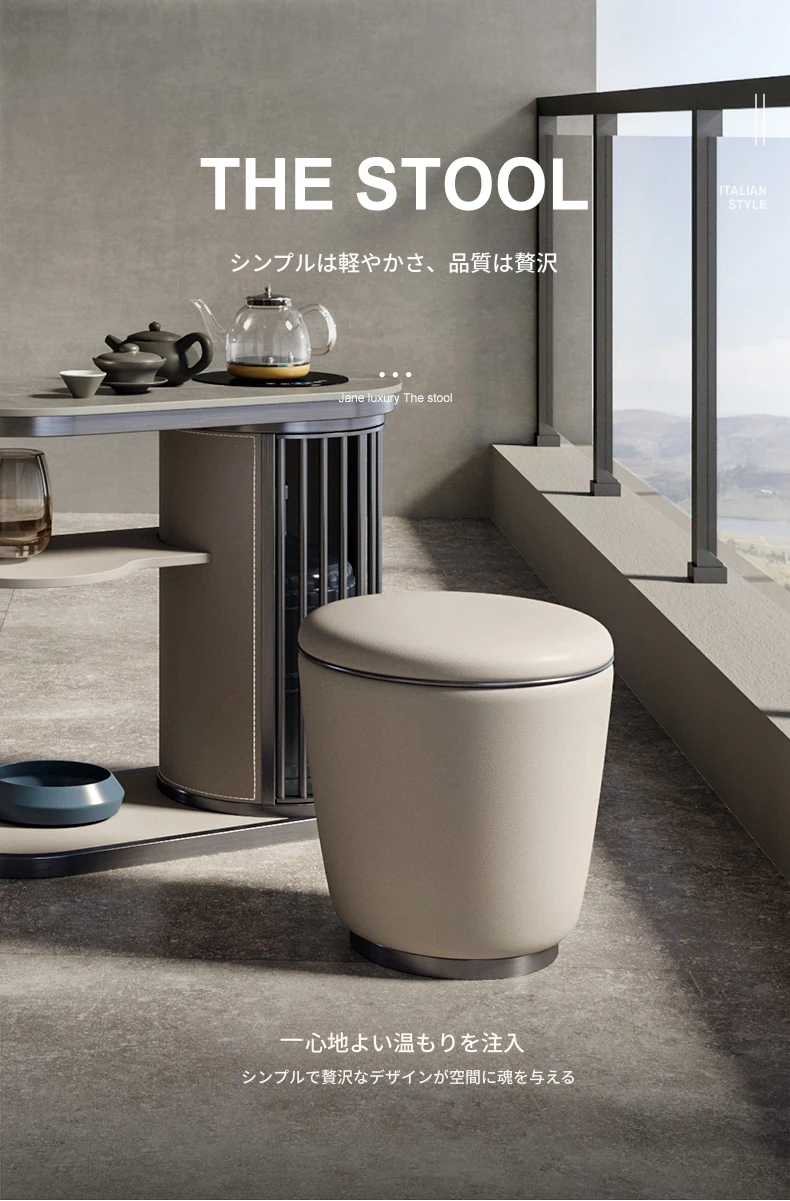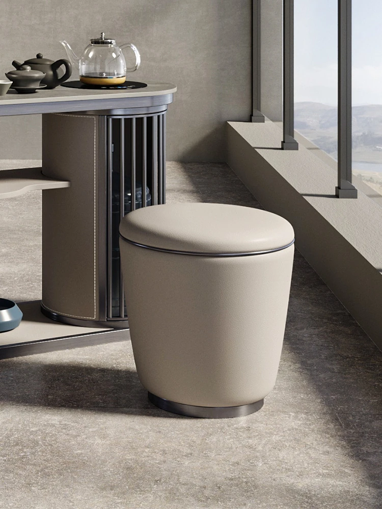 北欧風 Zenスタイルのレザー茶凳 - シンプルでスタイリッシュなデザイン、茶室やリビングに最適!心地よい座り心地で、功夫茶を楽しむための理想的な家具です。