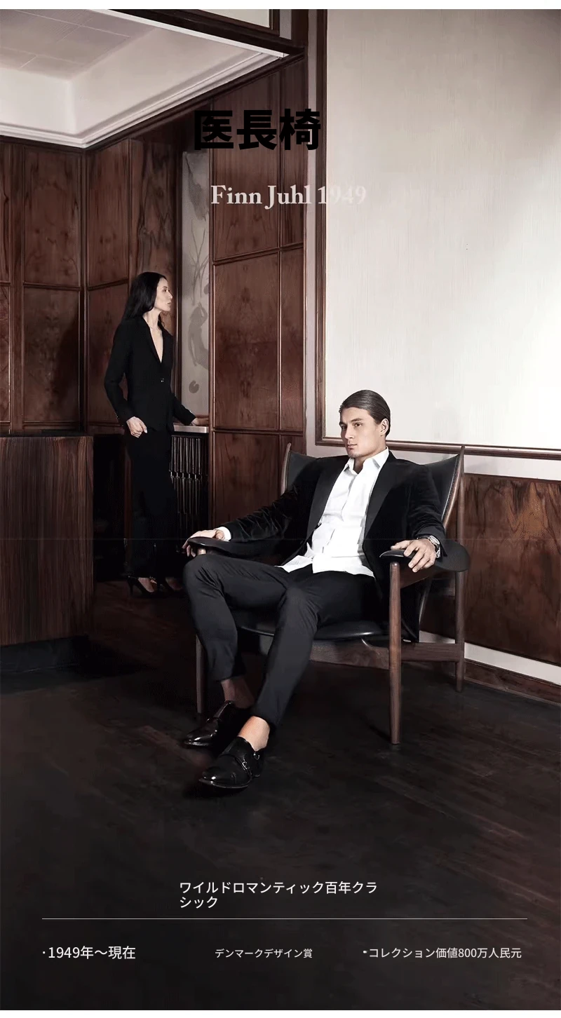 北米産ブラックウォールナット使用!周杰倫モデルの高品質トップグレインレザー製エルクチェア。無垢材オイルワックス仕上げのラグジュアリーなリラックスチェア!おしゃれなインテリアに最適!