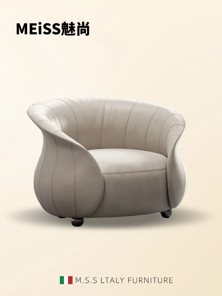 1人用ソファ(イタリア製フルグレインレザー-クリームホワイト)