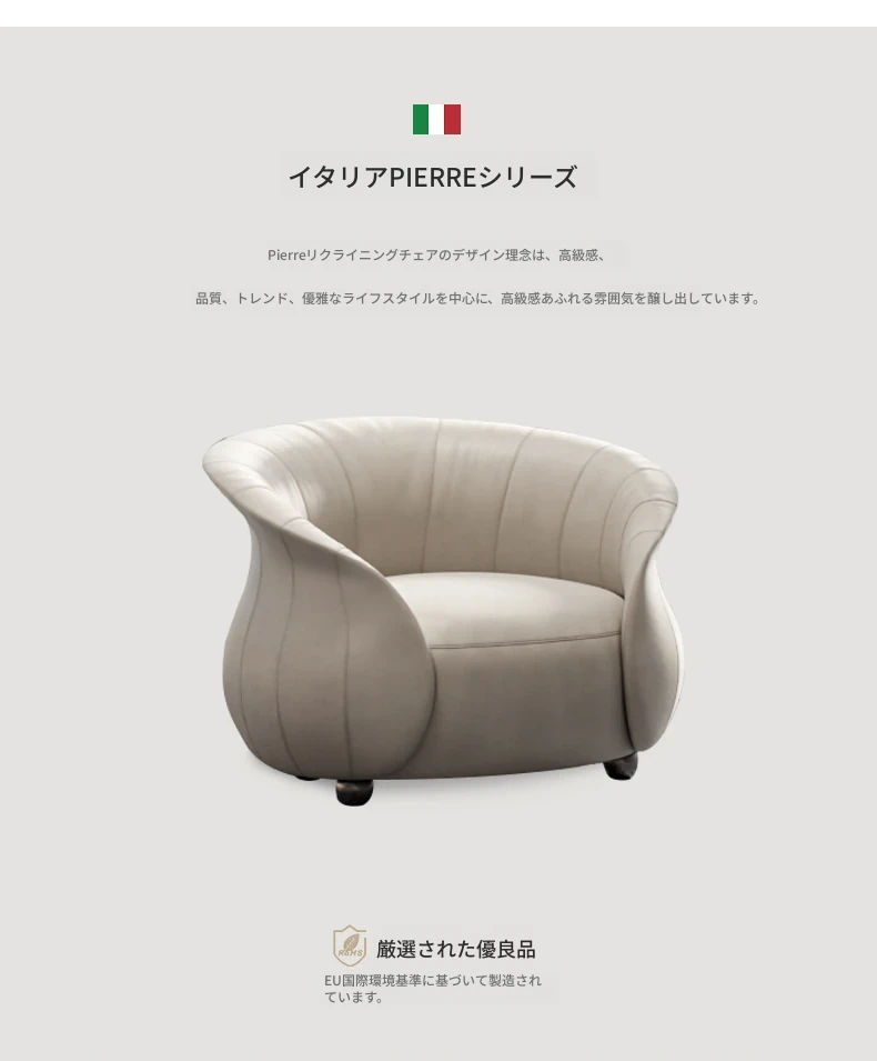 魅力的Plerreオリジナル、ミニマルでモダンなラグジュアリー。広々としたリビングにぴったりの一人掛けソファ、寝室にも最適なスタイリッシュなソファチェア。おしゃれな空間を演出します!