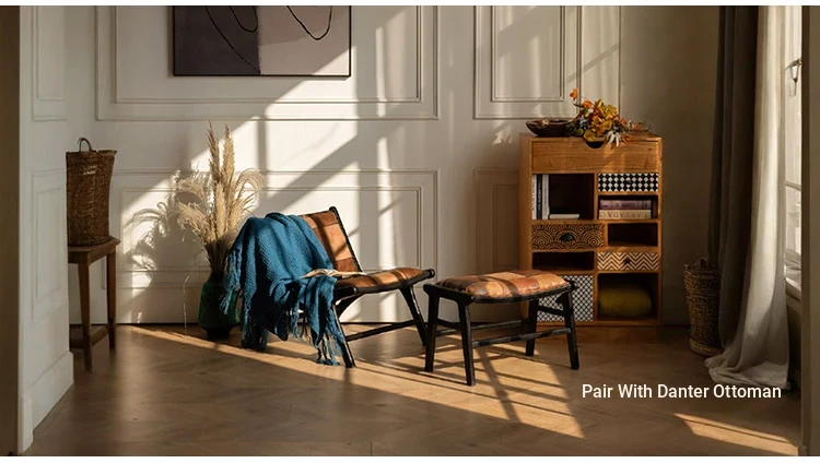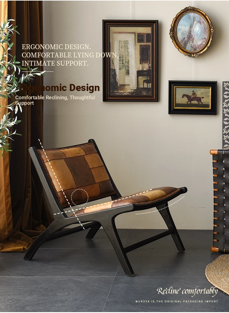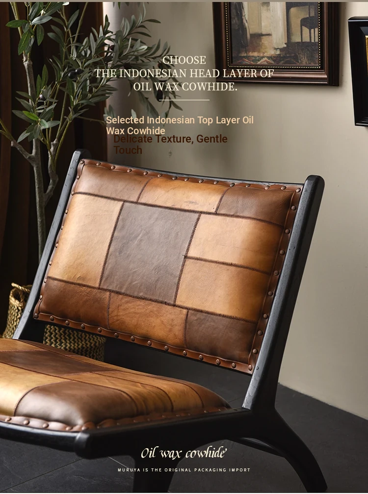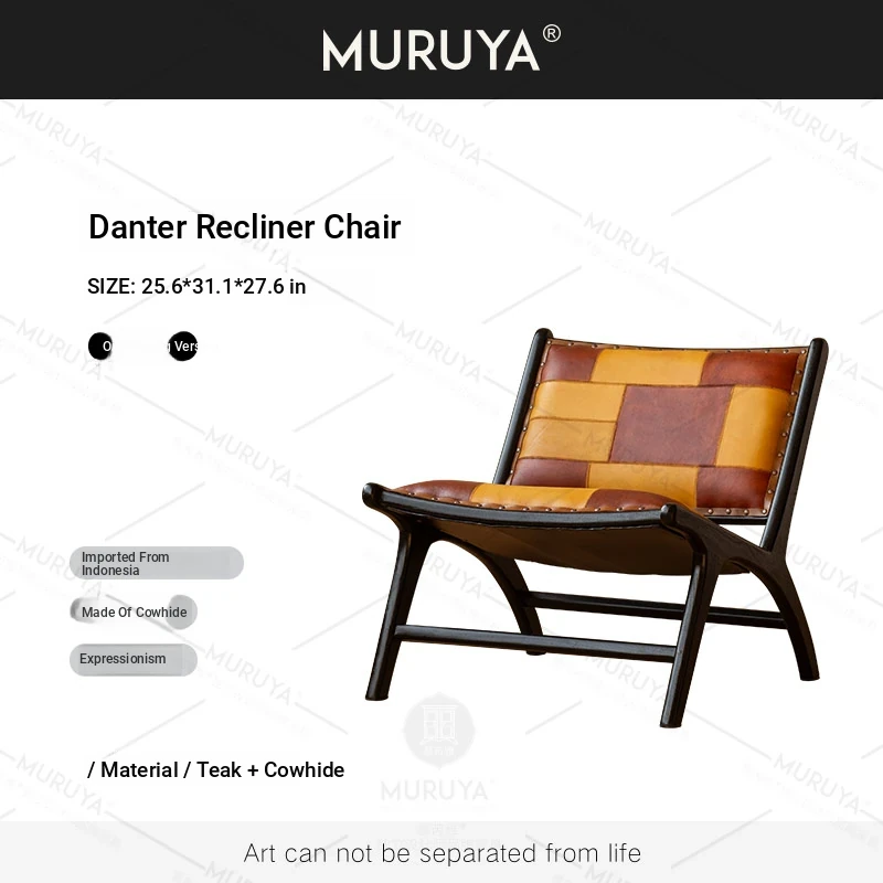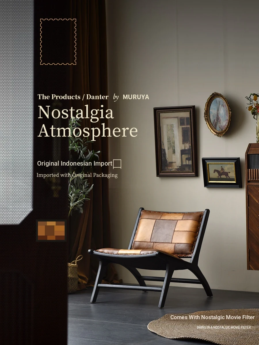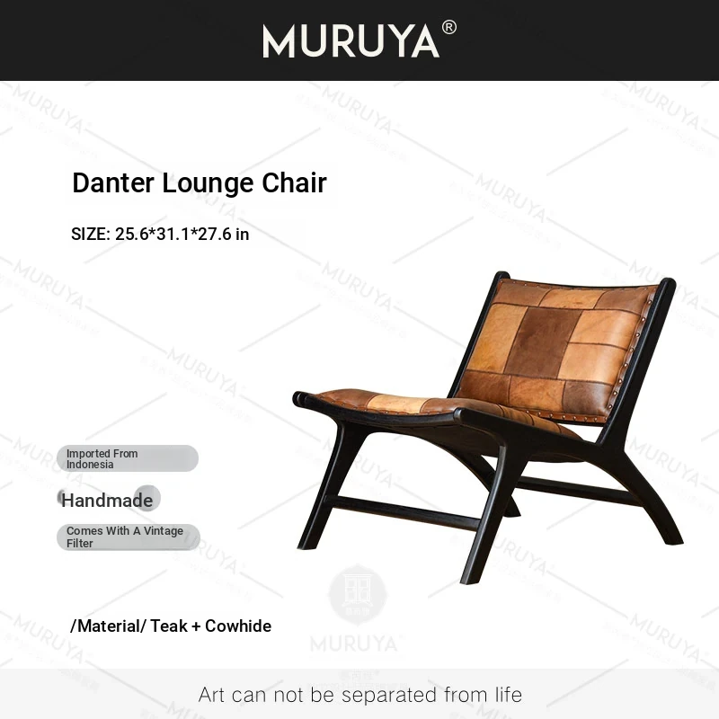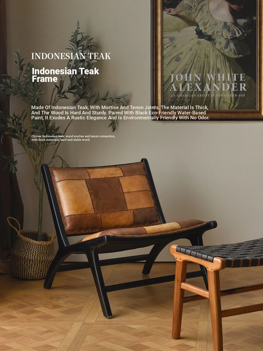 Premium Imported Solid Wood Sofa Chair - Genuine Leather Vintage Lounge Chair for Balcony - Teak Designer Home Chair