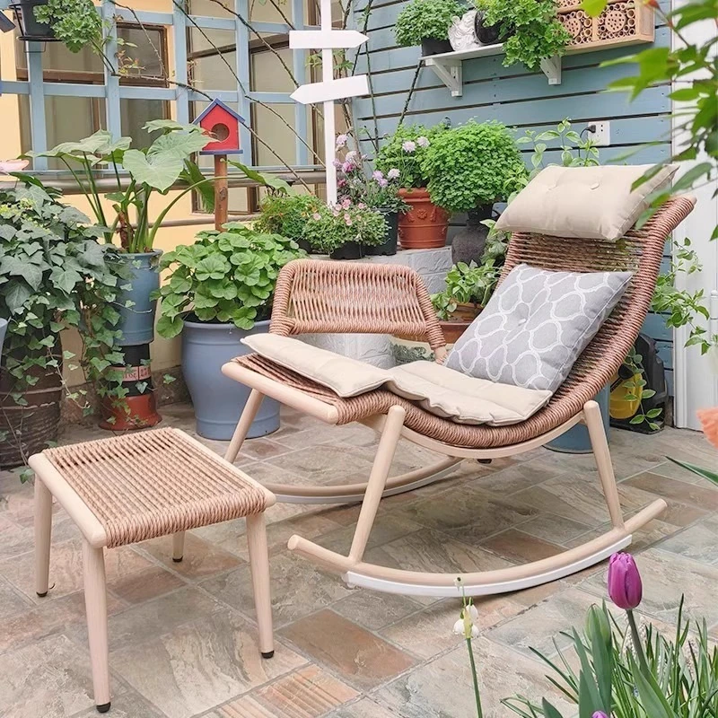 新品特惠【1人用ロッキングチェア-アイボリー】(1クッション+1ヘッドレスト+1クッション付き)