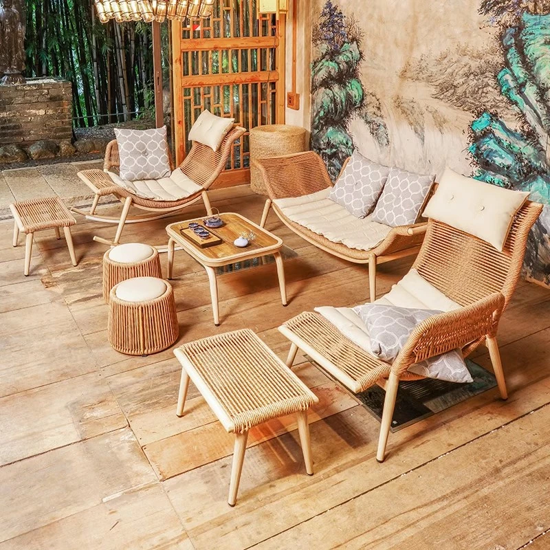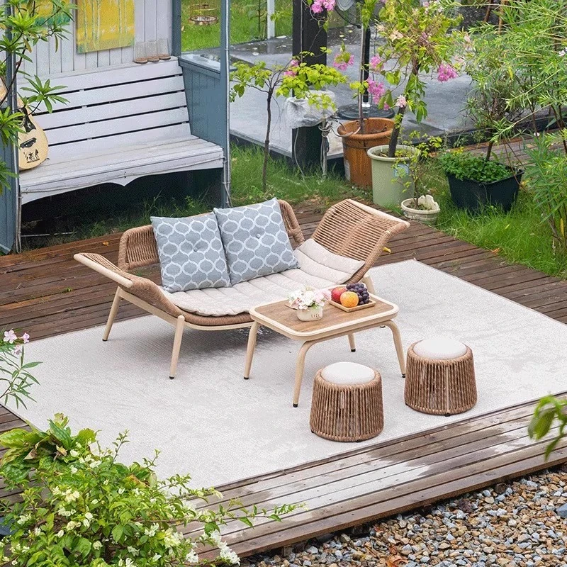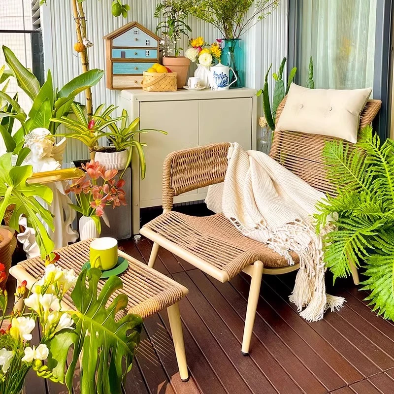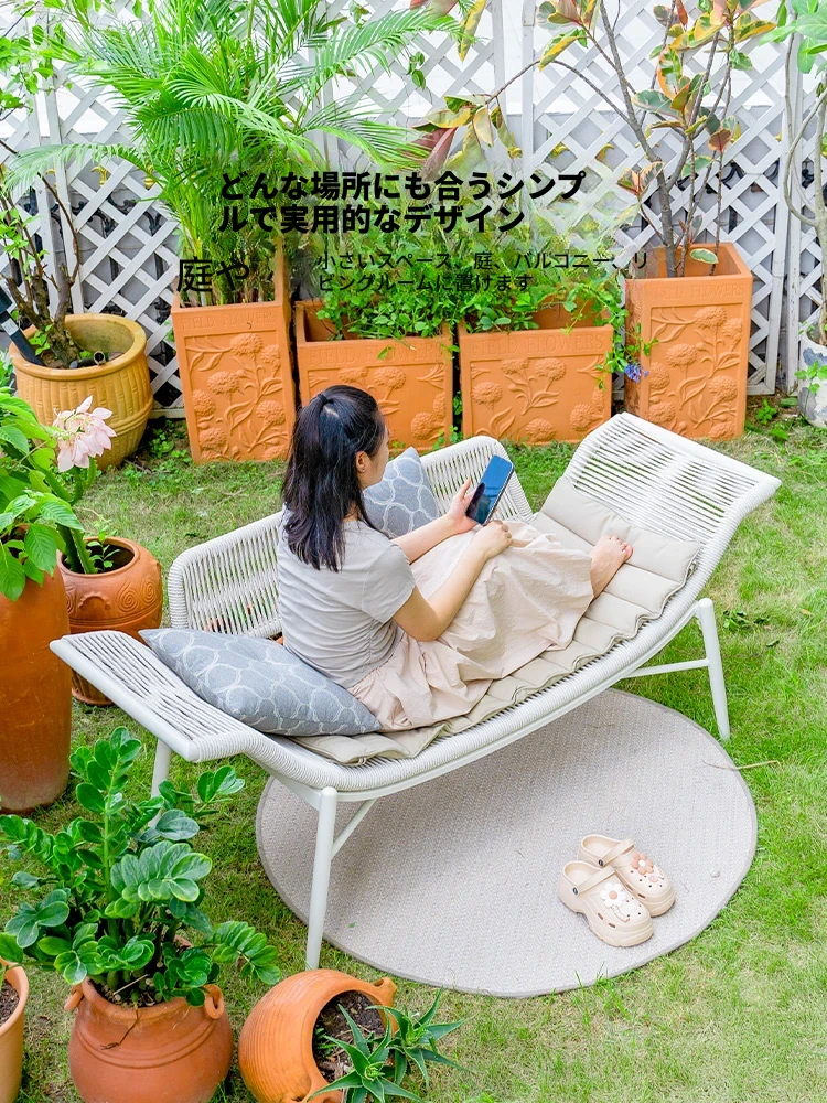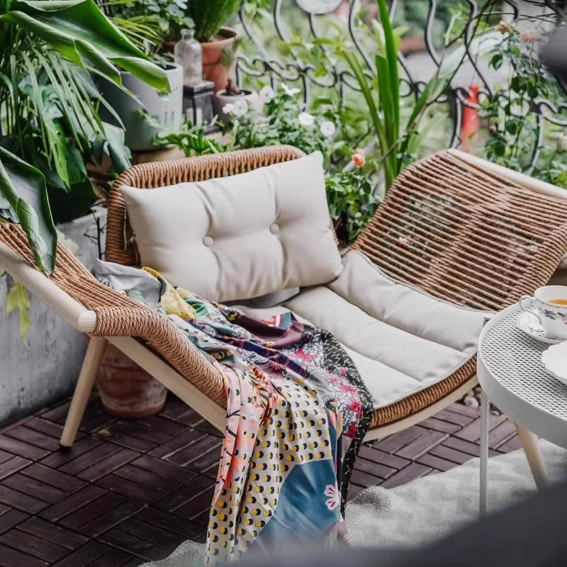 【バルコニーセット】デイベッド-ライトカラー + テーブル-ライトブラウン【クッションヘッドレスト付き】