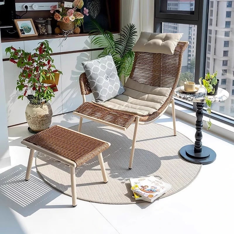 新品特惠【1人用ソファ-ライトカラー】+【フットレスト】亜鉛メッキスチール-(クッションヘッドレスト付き)