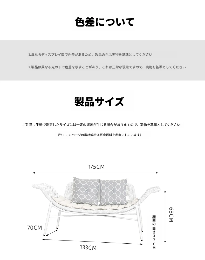 【イユーンサンシェード-アイボリー】2人用(1クッション+2クッション付き) その他の色はカスタマーサービスにお問い合わせください-
