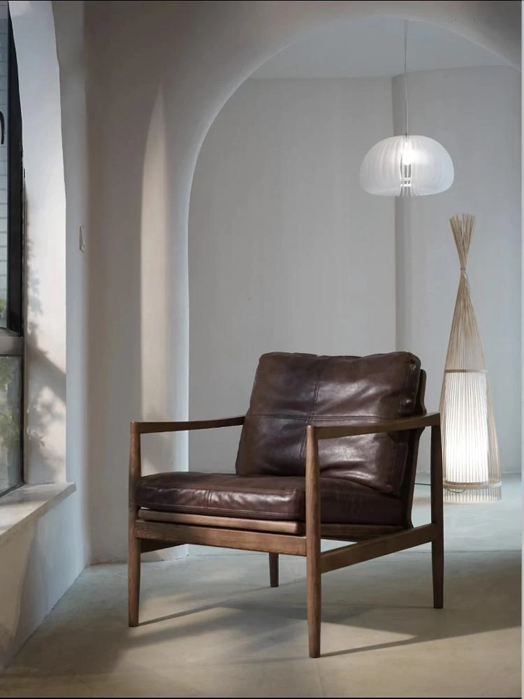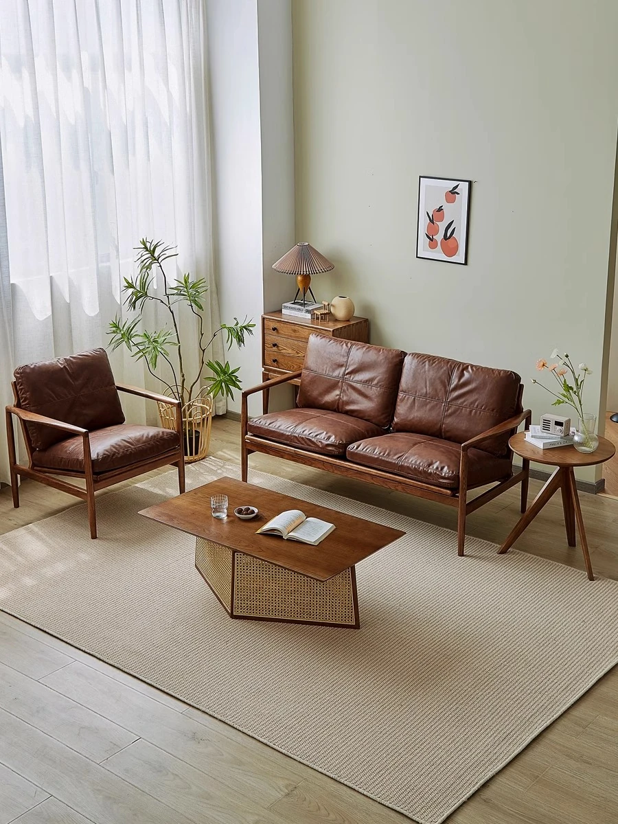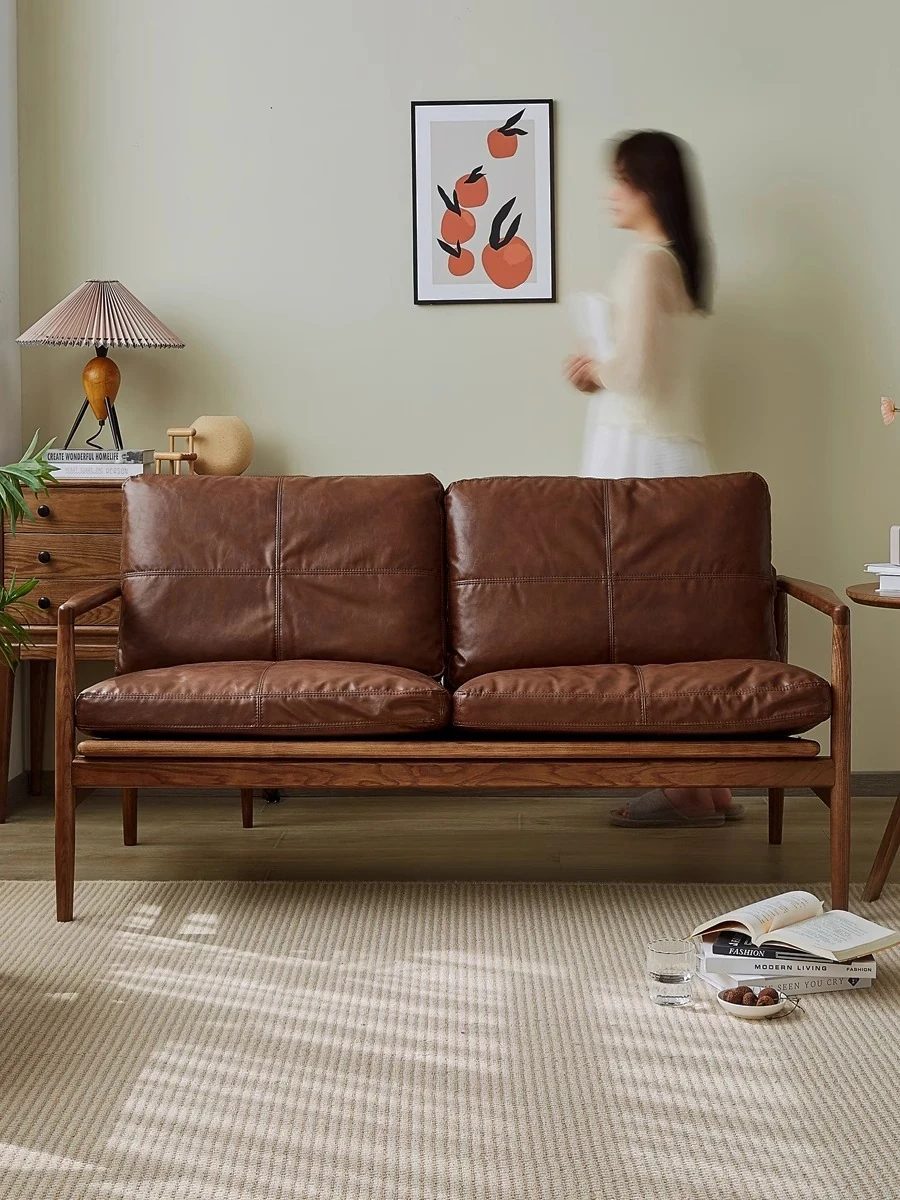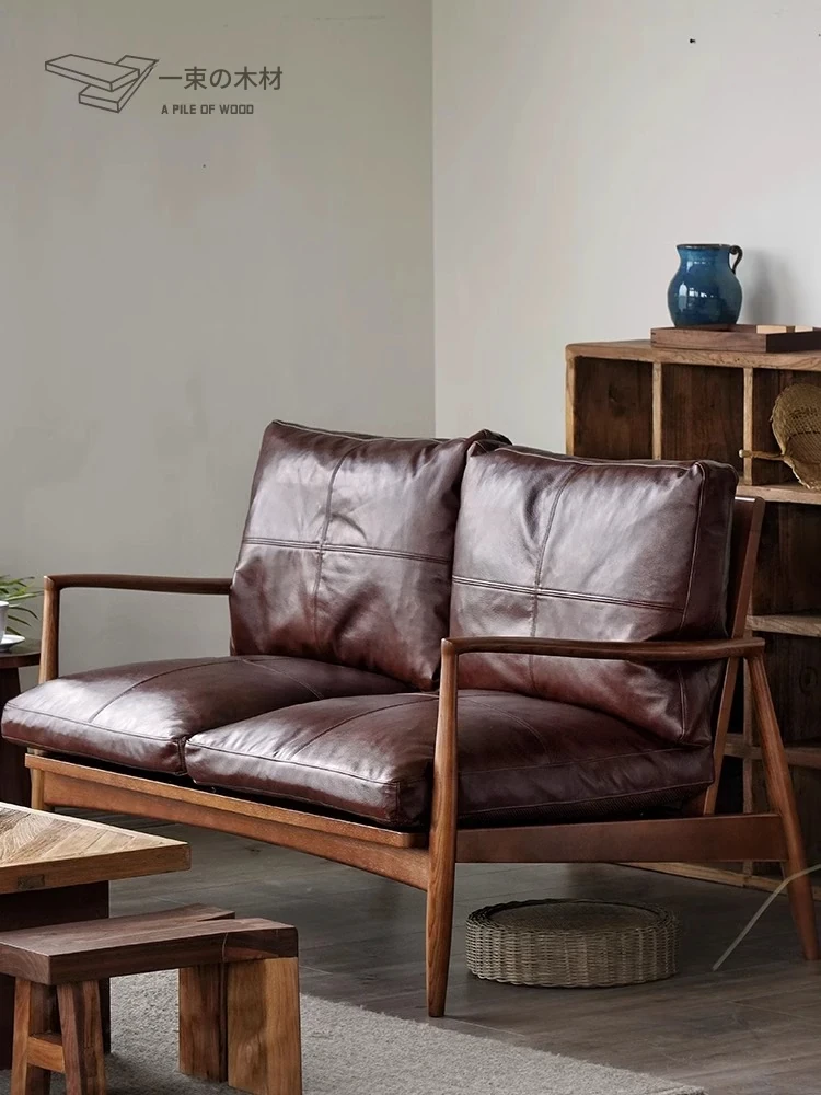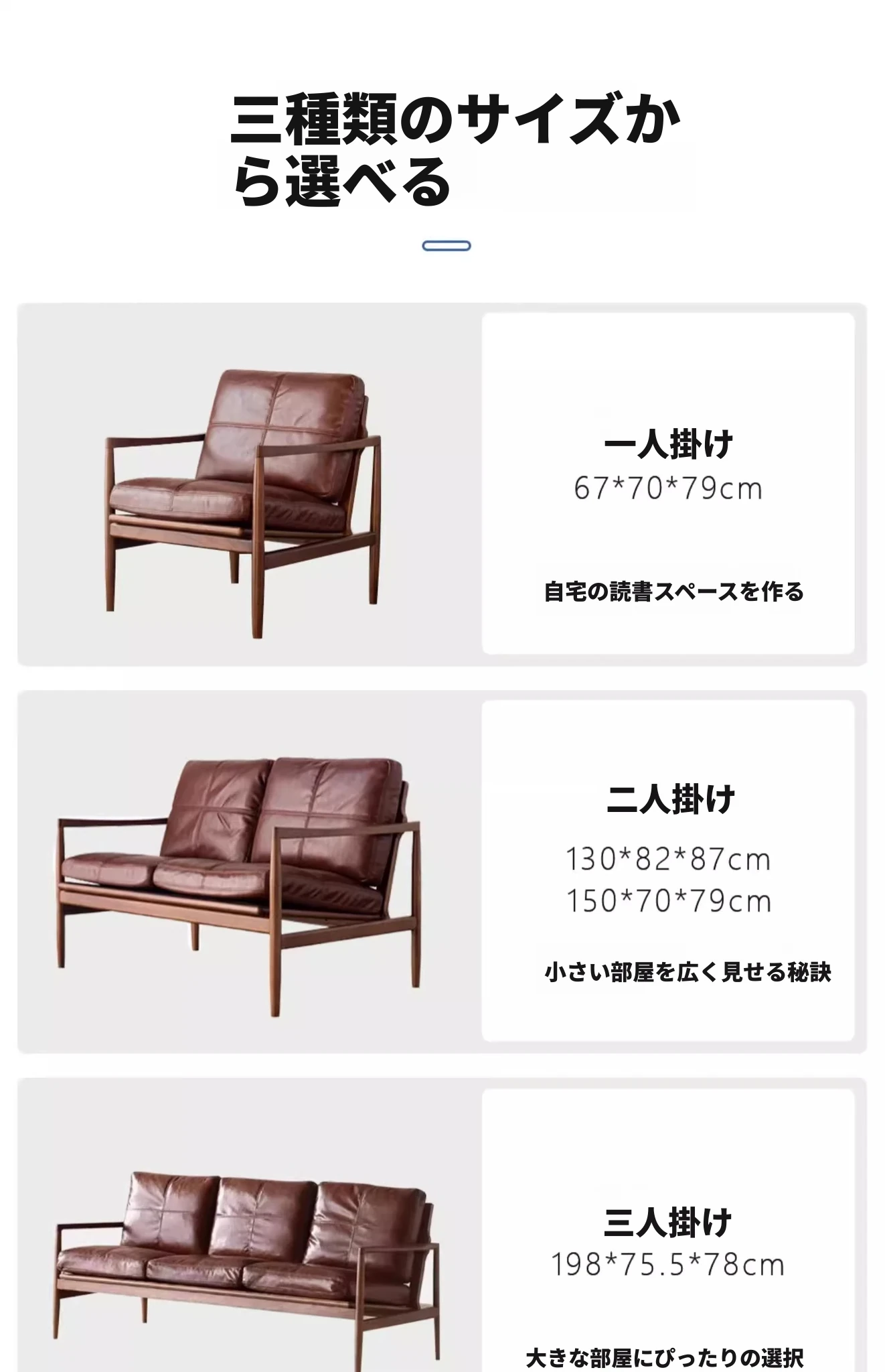 レトロデザインのダブルパーソナルソファ|北欧スタイルの実木製|小さなリビングにぴったりな本革ソファ|1人掛けと2人掛けのコンビネーションで、スタイリッシュな空間を演出!