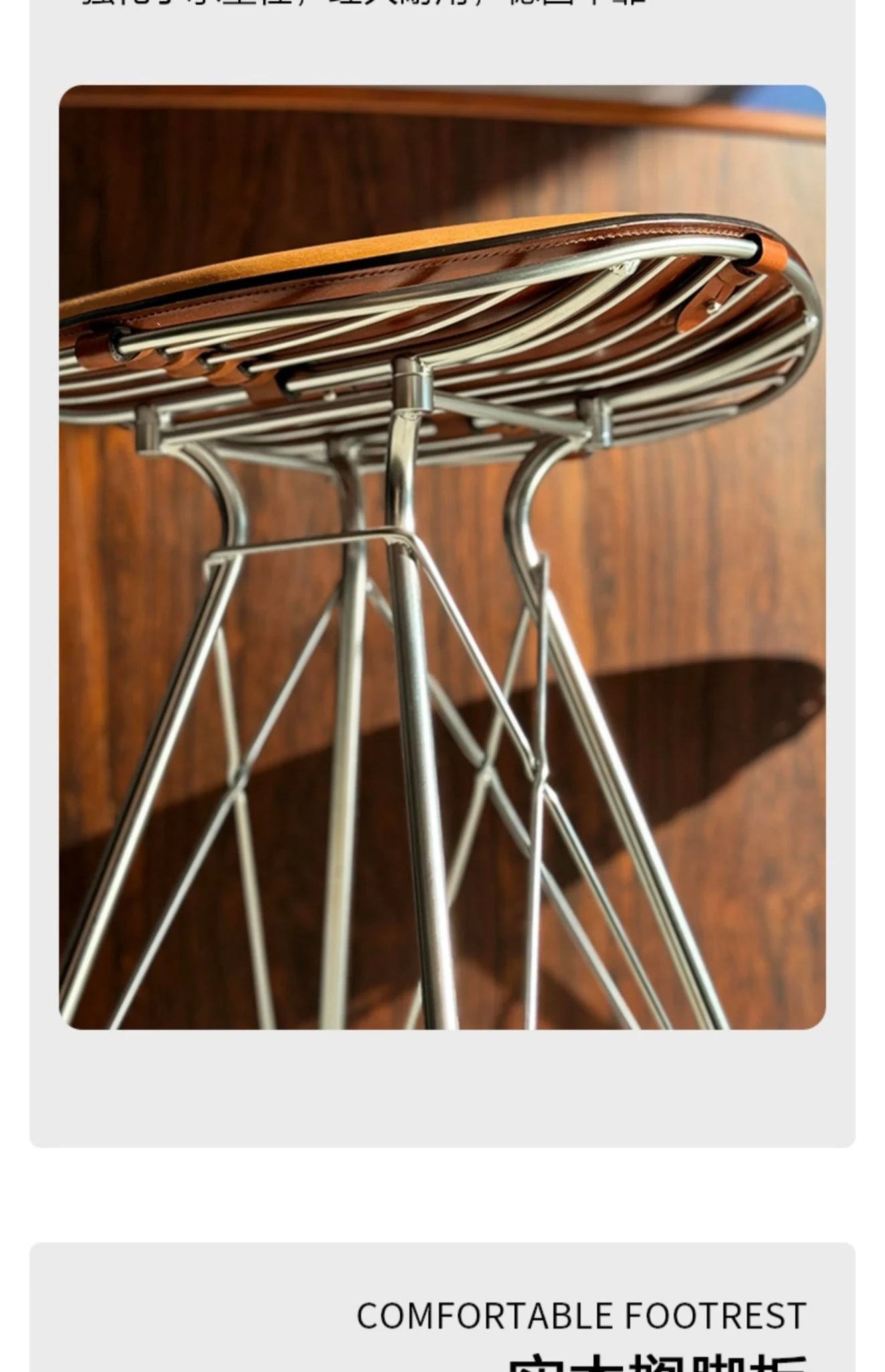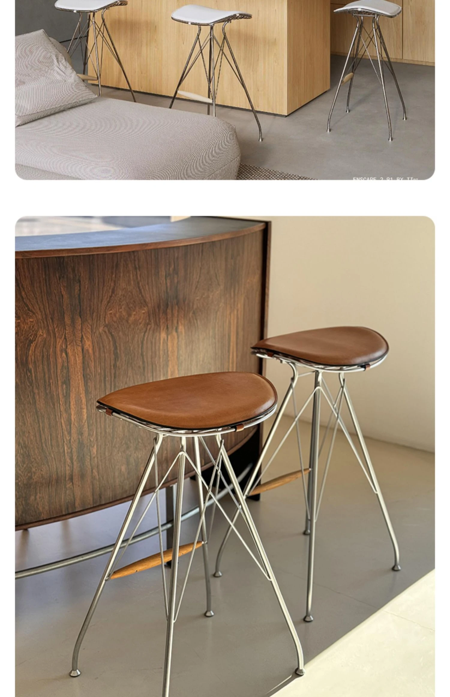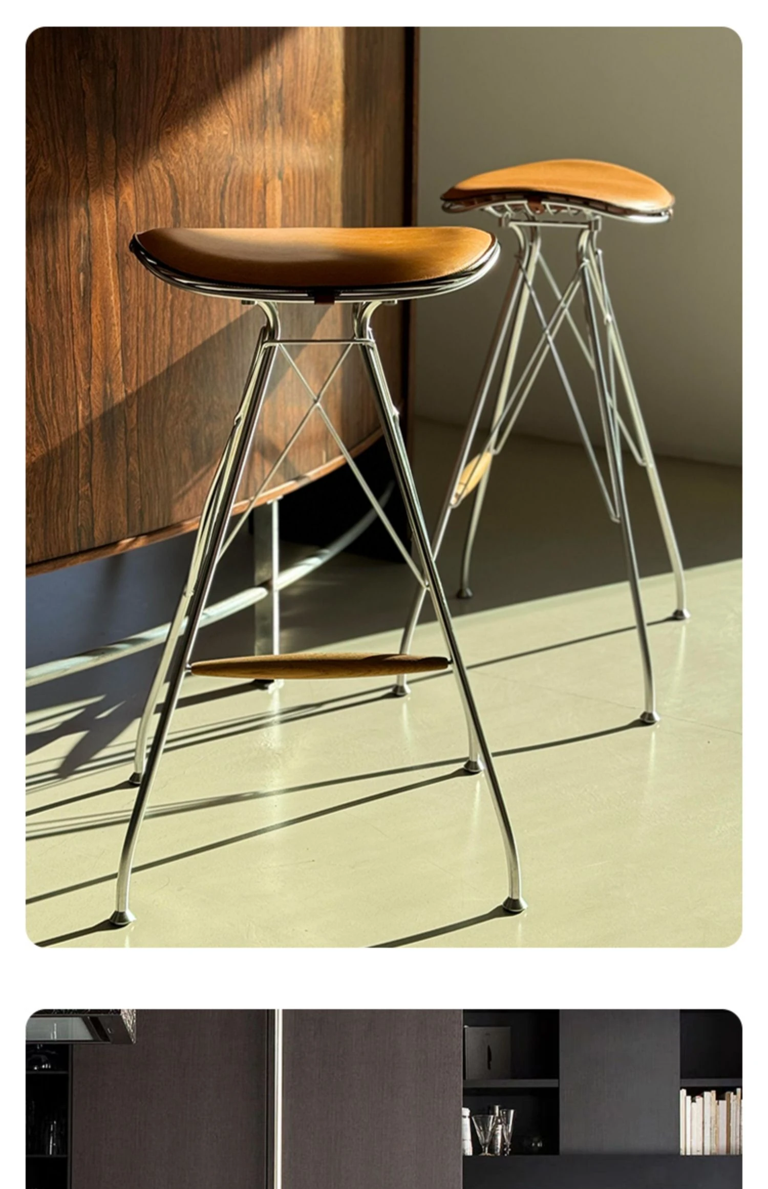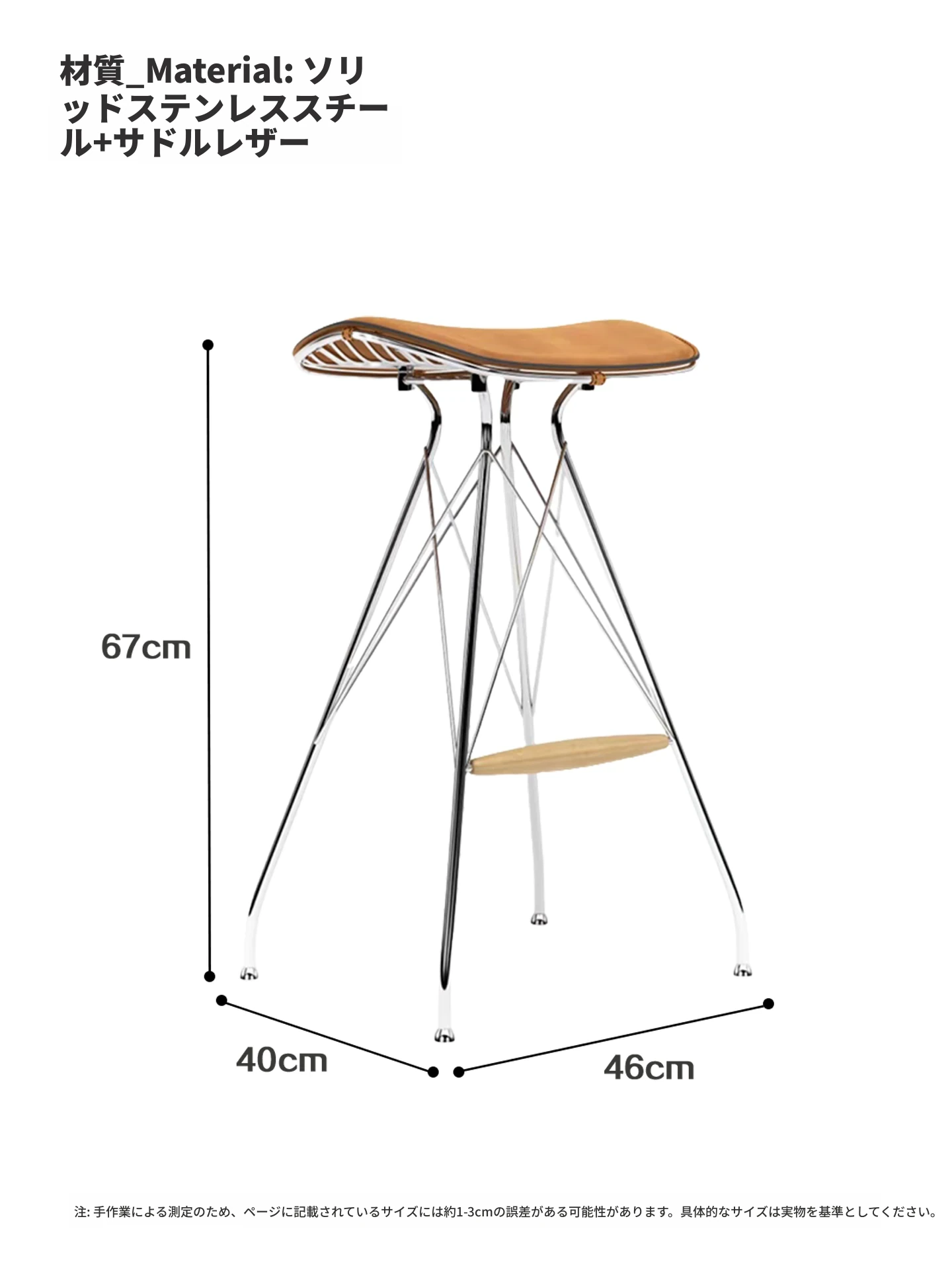 スツール-茶色のサドルレザー+ステンレススチールの素地の脚
