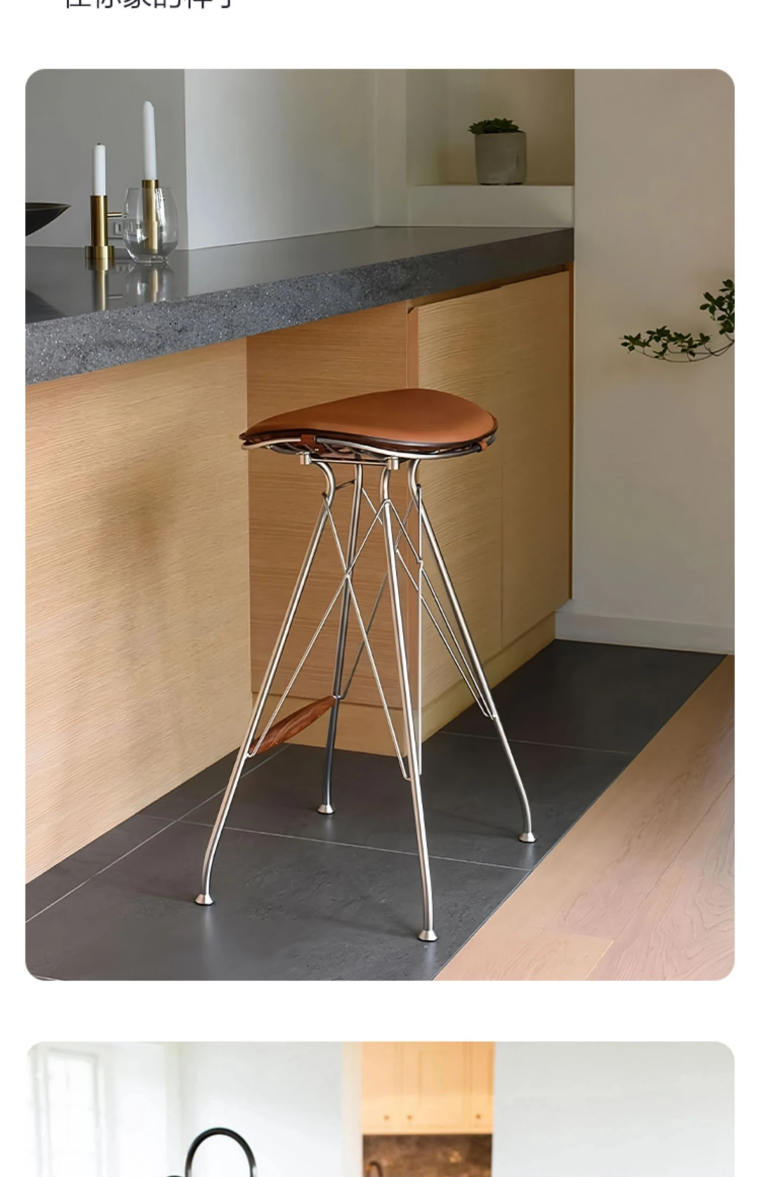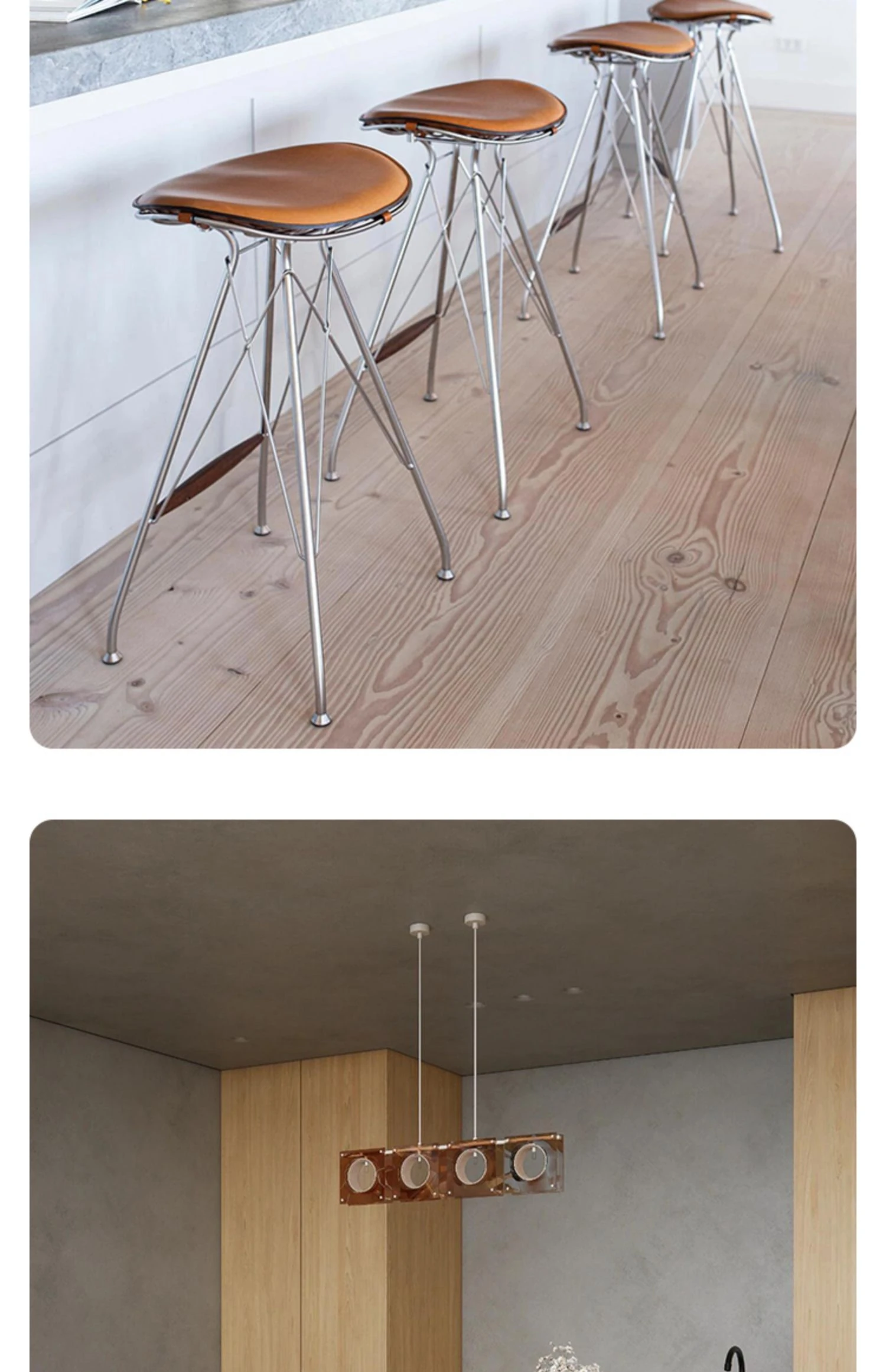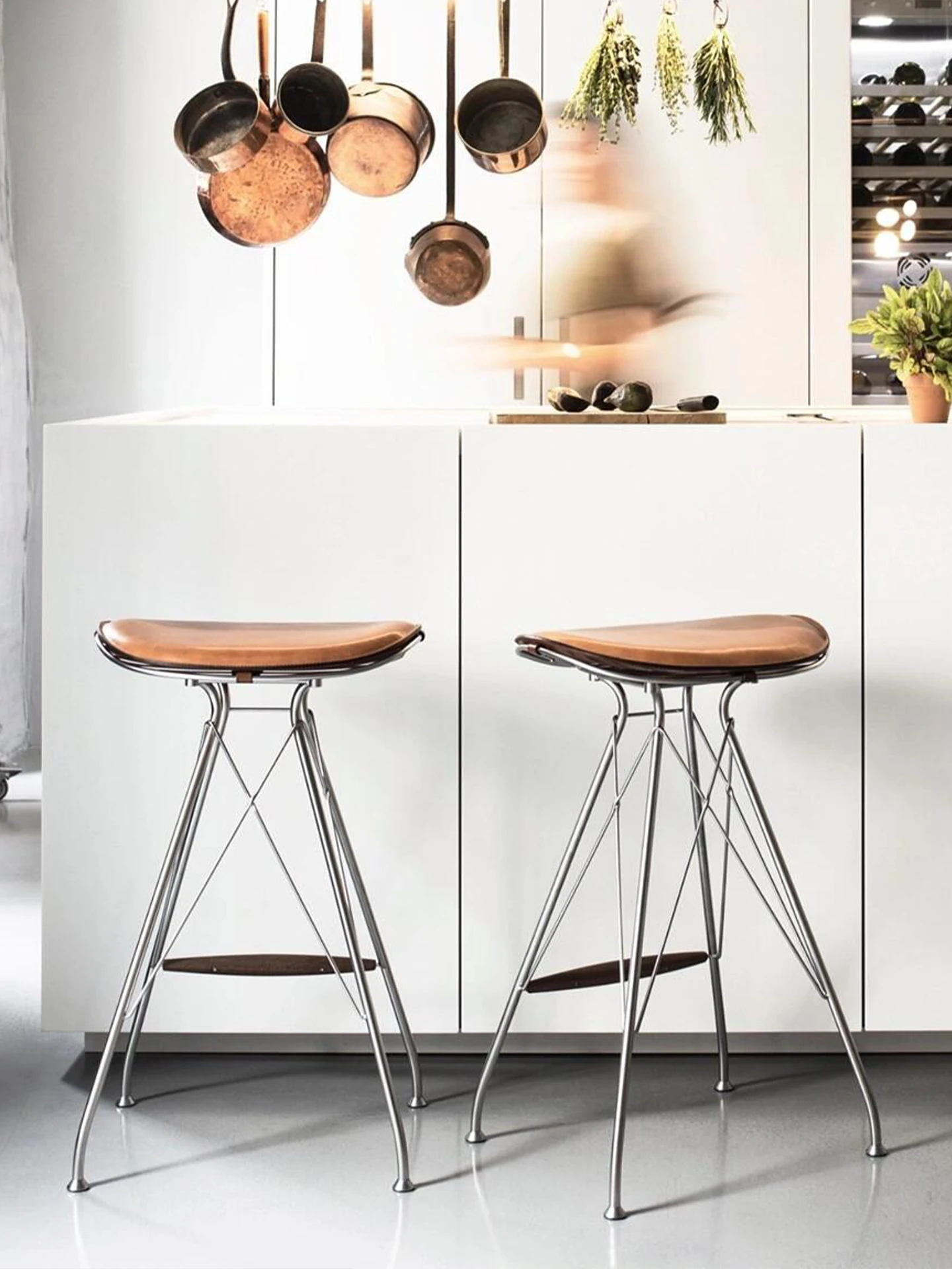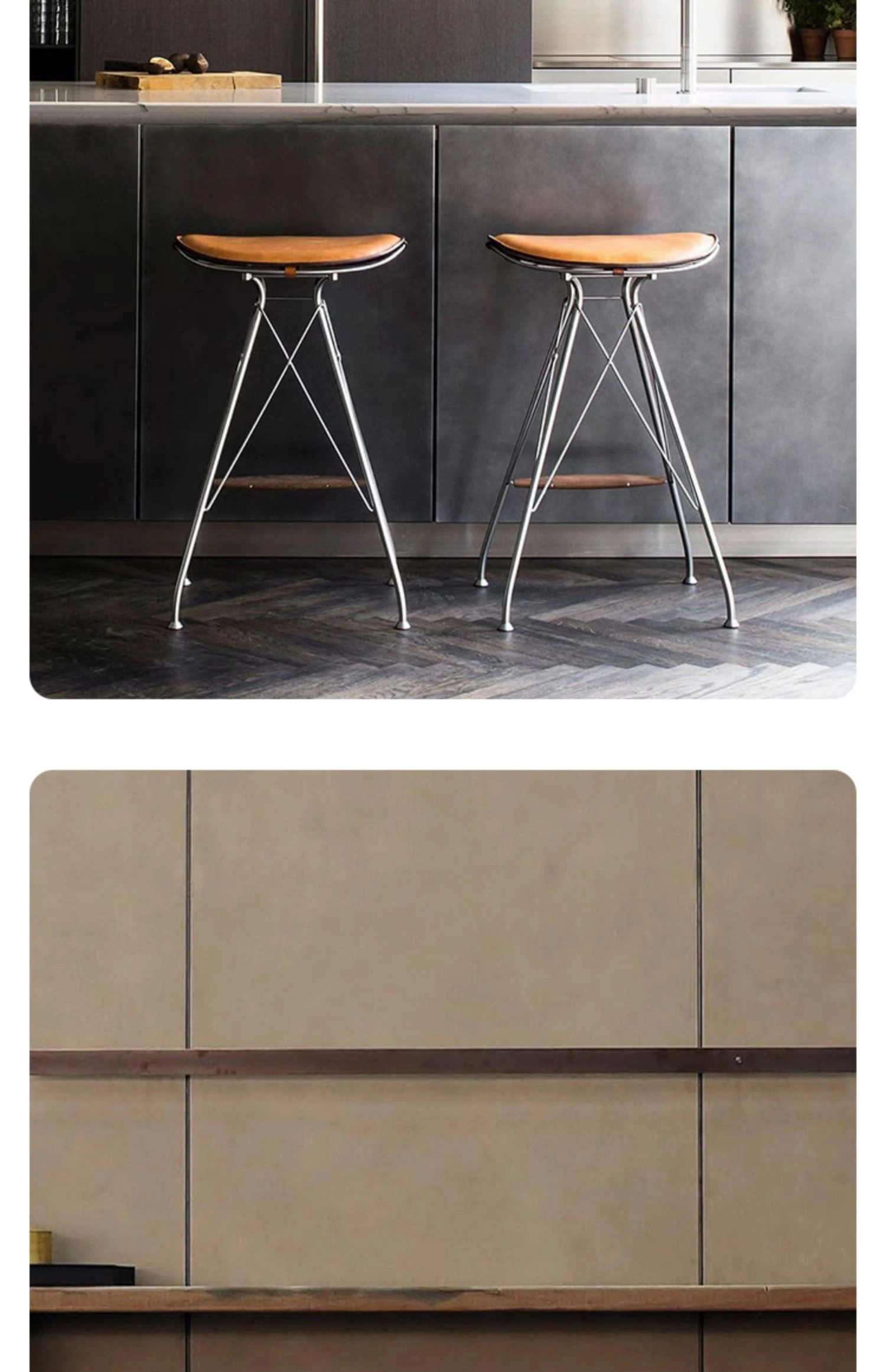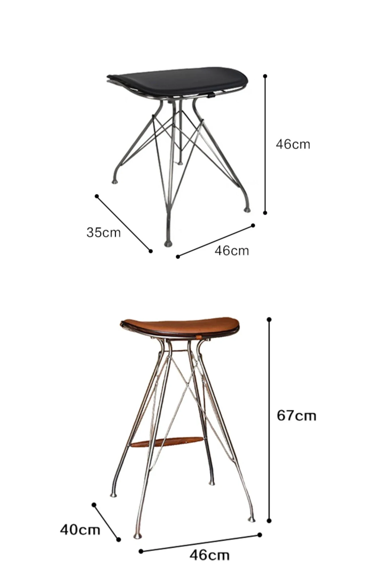 スツール-茶色のサドルレザー+ステンレススチールの素地の脚