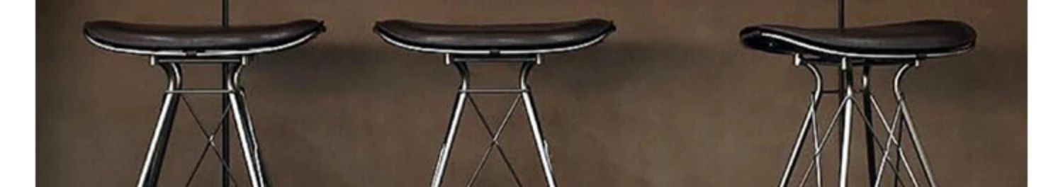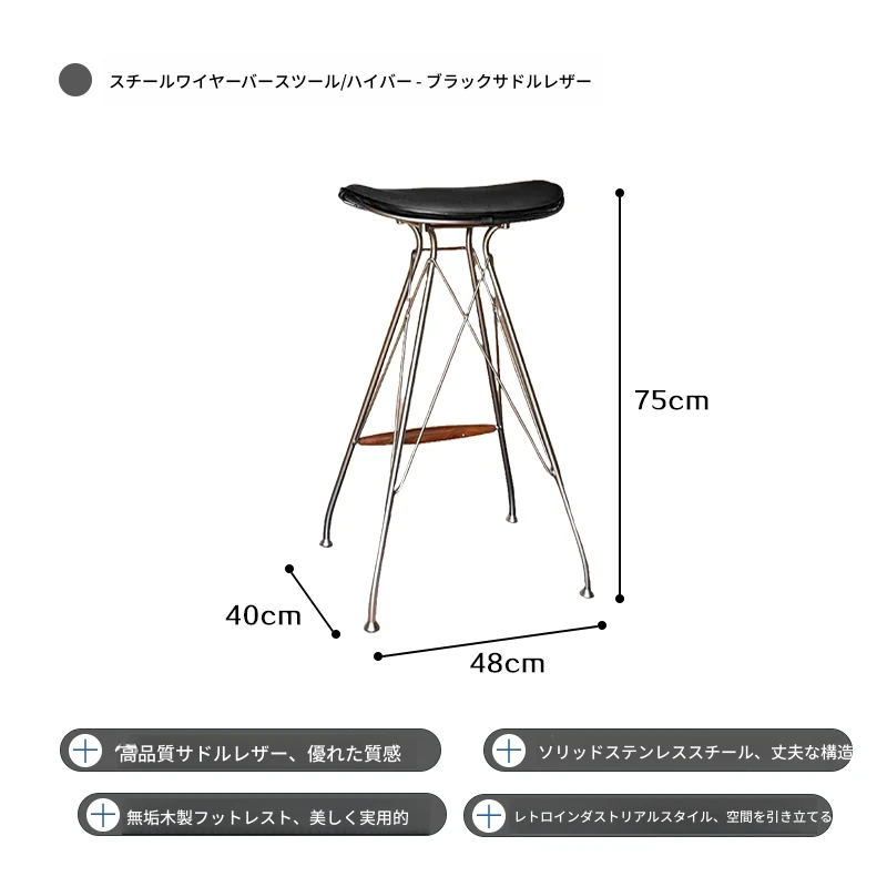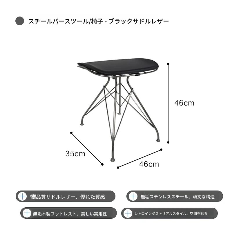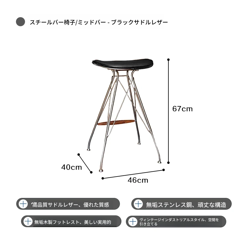 ハイバースツール-黒のサドルレザー+ステンレススチールの素地の脚