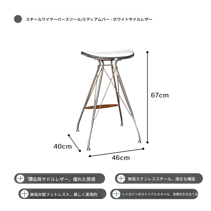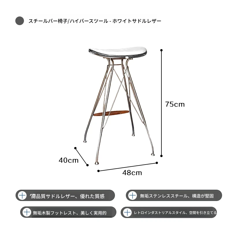 ハイバースツール-白のサドルレザー+ステンレススチールの素地の脚