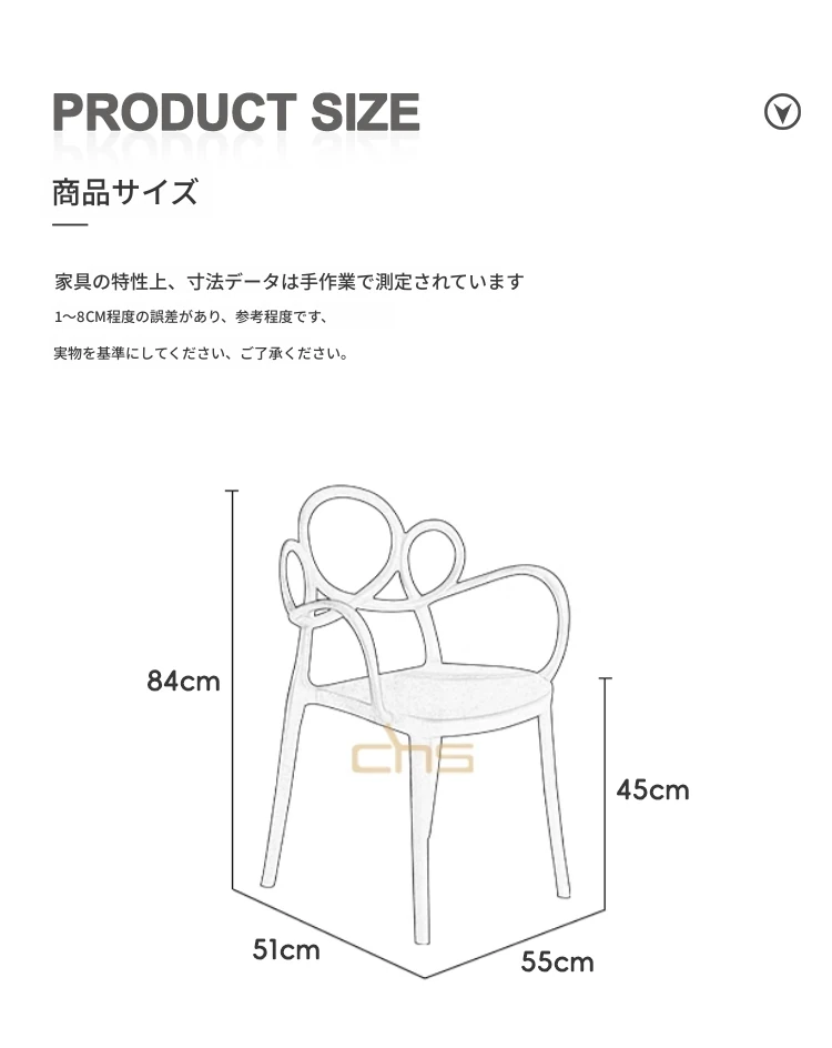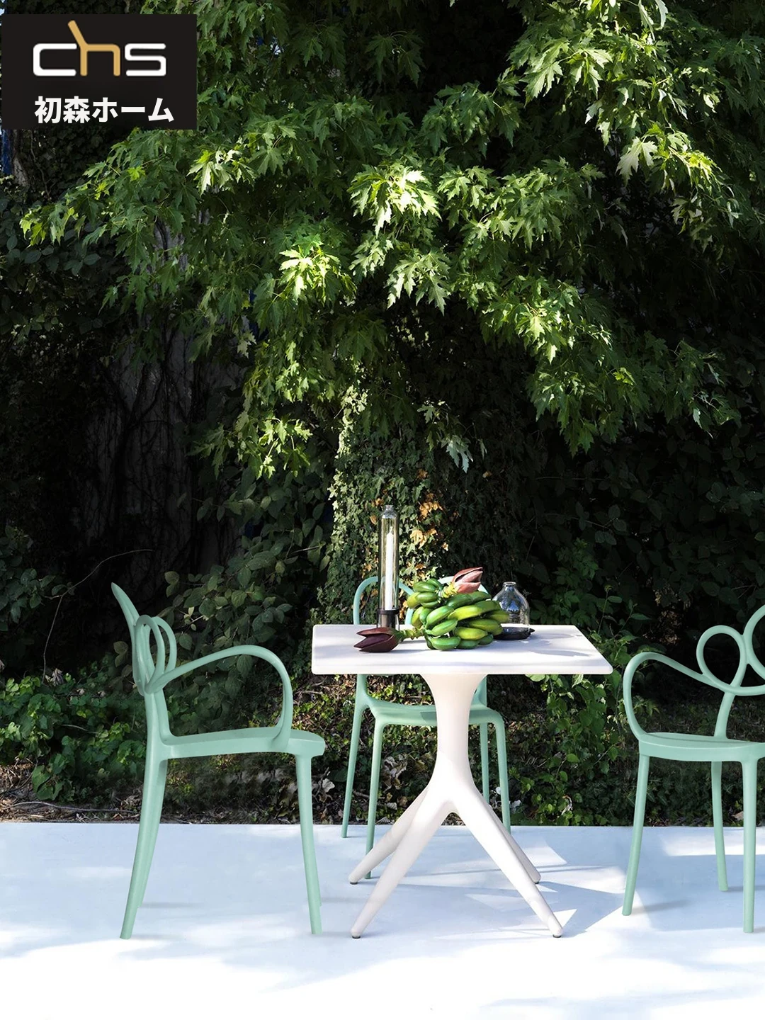 初森Sissiアームチェア|デザイナーのシンプルなプラスチック製カラフルダイニングチェア|おしゃれな商談チェアに最適!快適さとスタイルを両立した一品です。