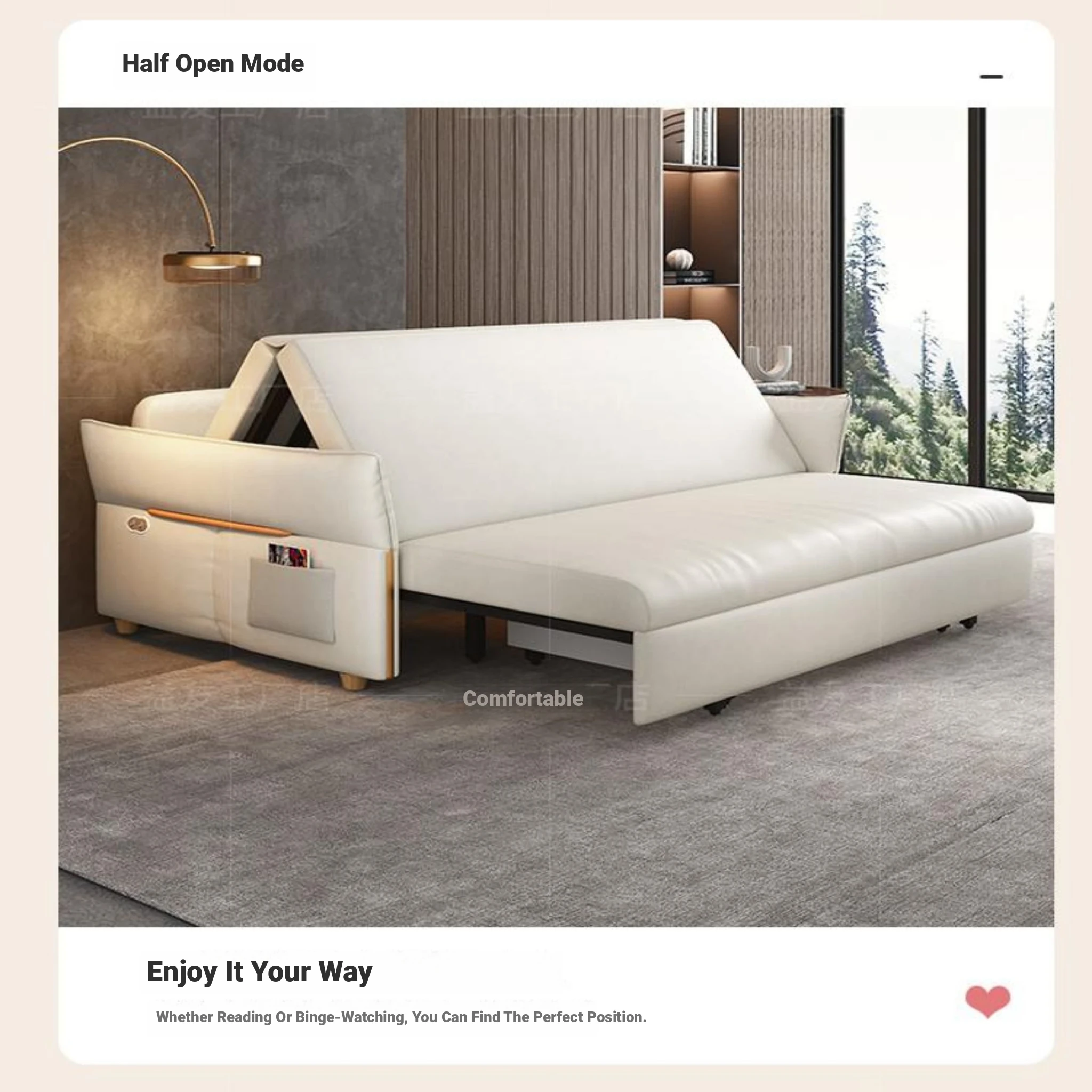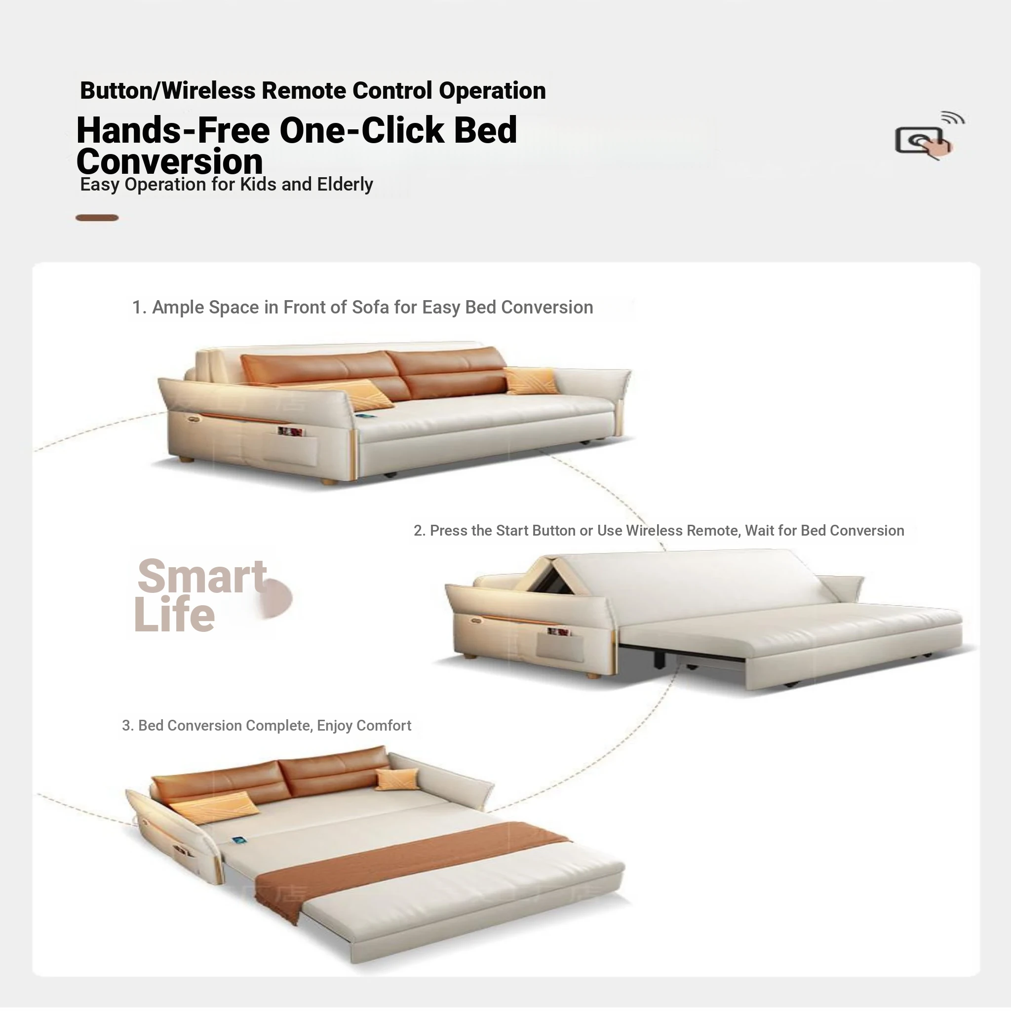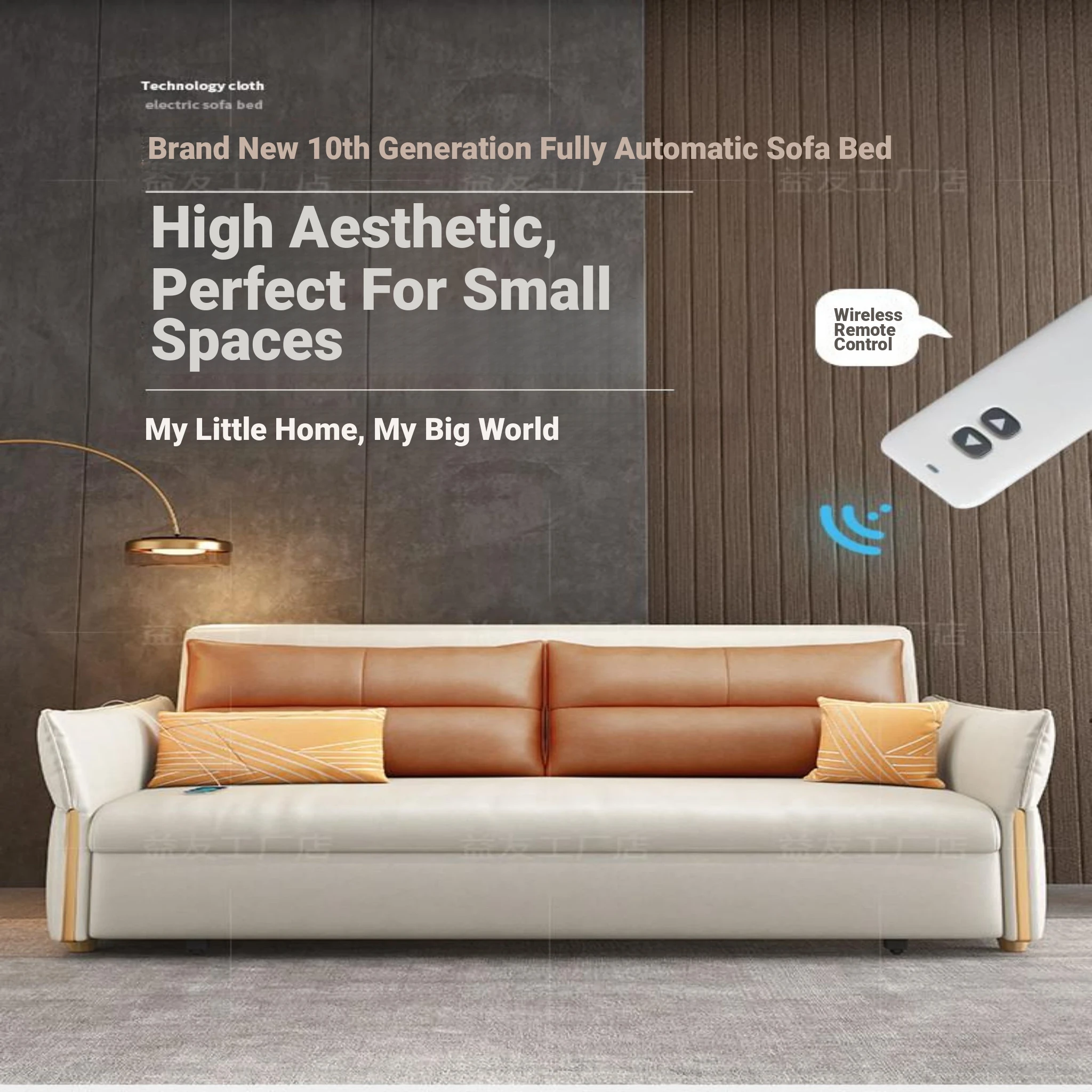 Smart Electric Wooden Sofa Bed - Multifunctional, Remote-Controlled, Foldable, Ideal for Small Living Rooms, Fully Automatic Design