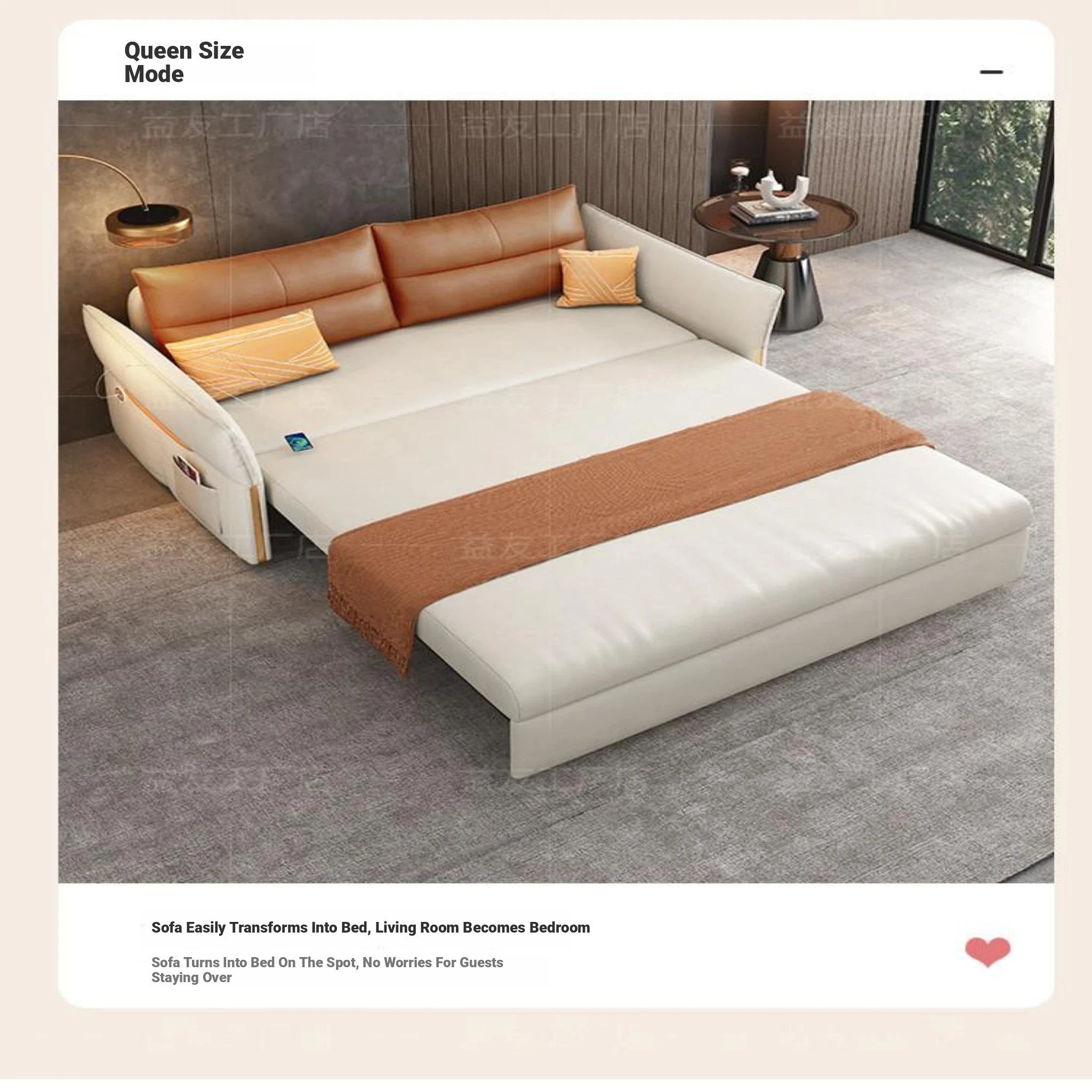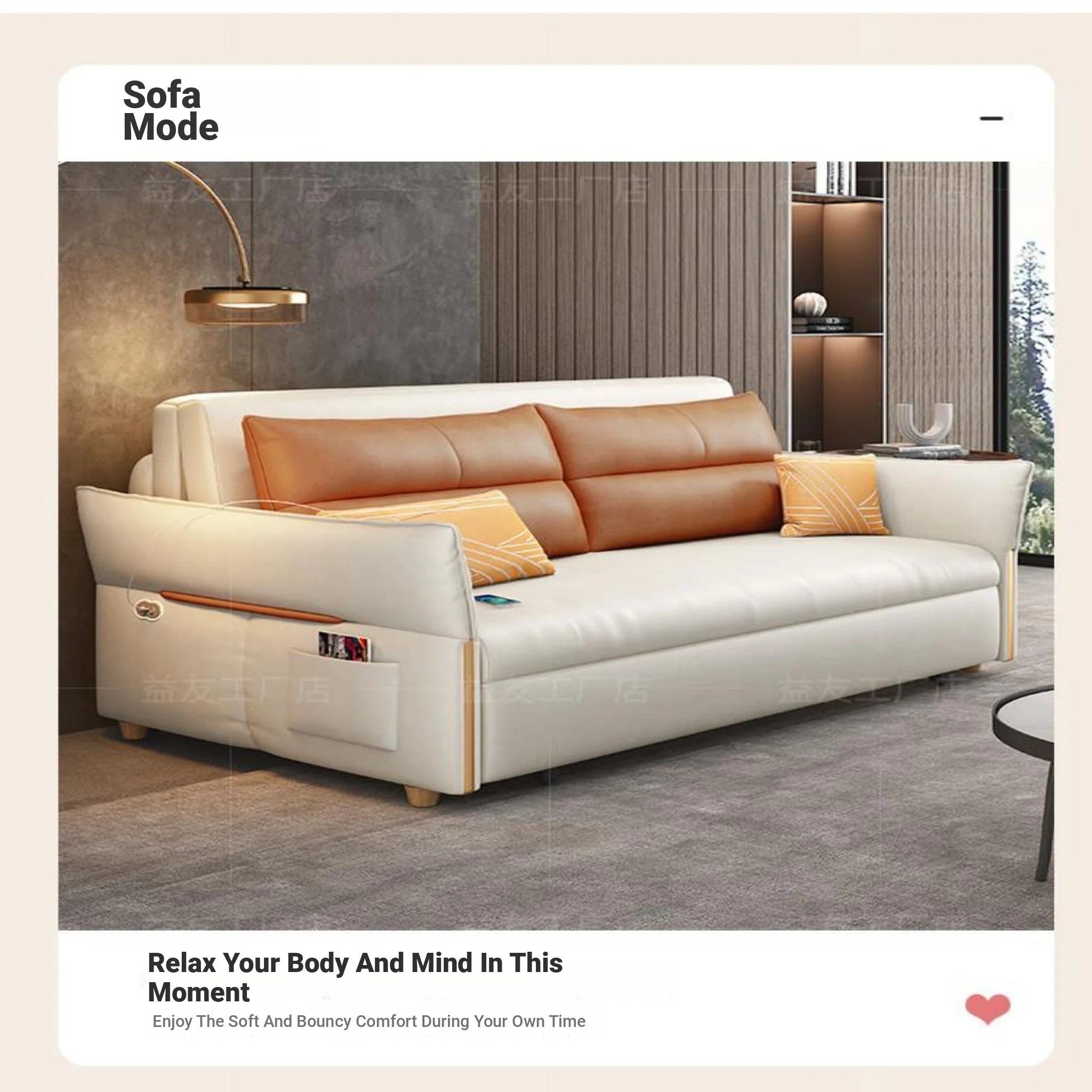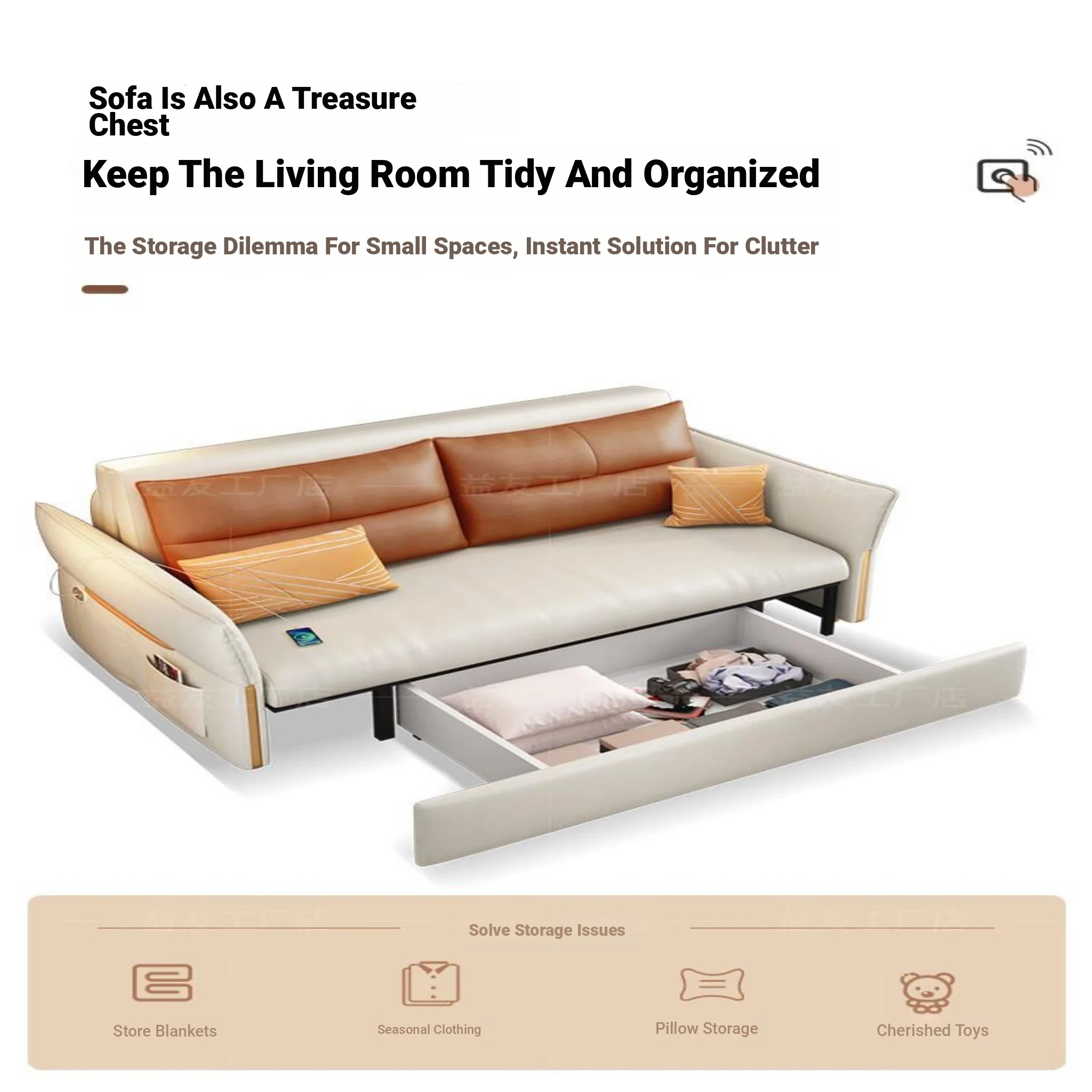 Smart Electric Wooden Sofa Bed - Multifunctional, Remote-Controlled, Foldable, Ideal for Small Living Rooms, Fully Automatic Design